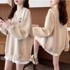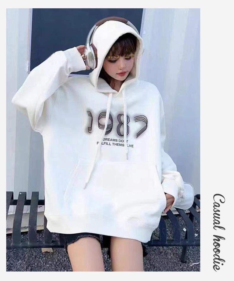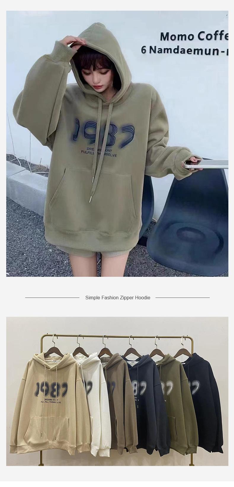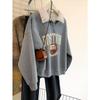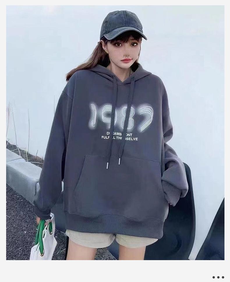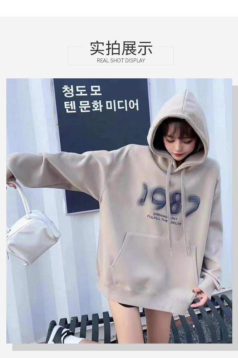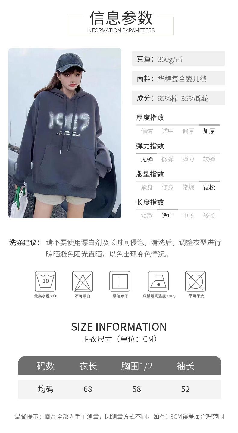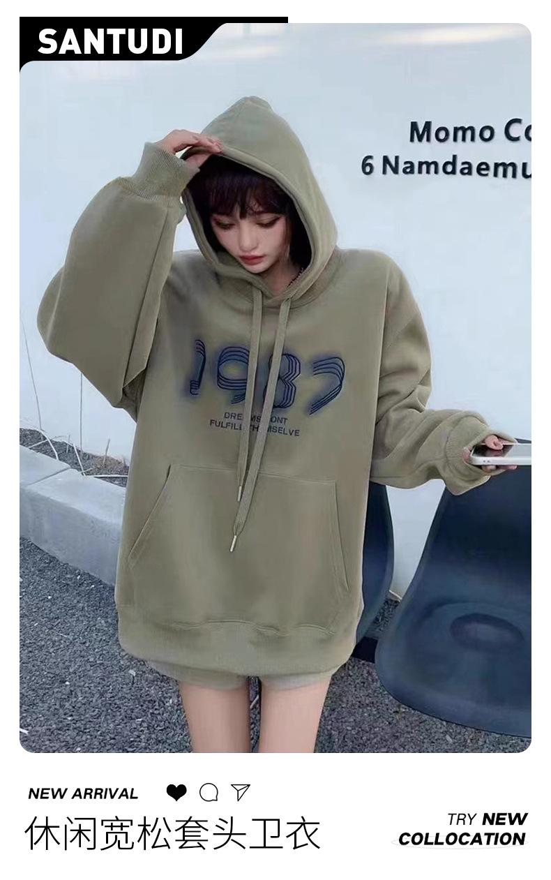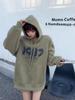 Suéter grueso con forro polar para otoño, nuevo, estilo coreano, con estampado de letras de celebridades de Internet, suéter holgado e informal con capucha para mujer