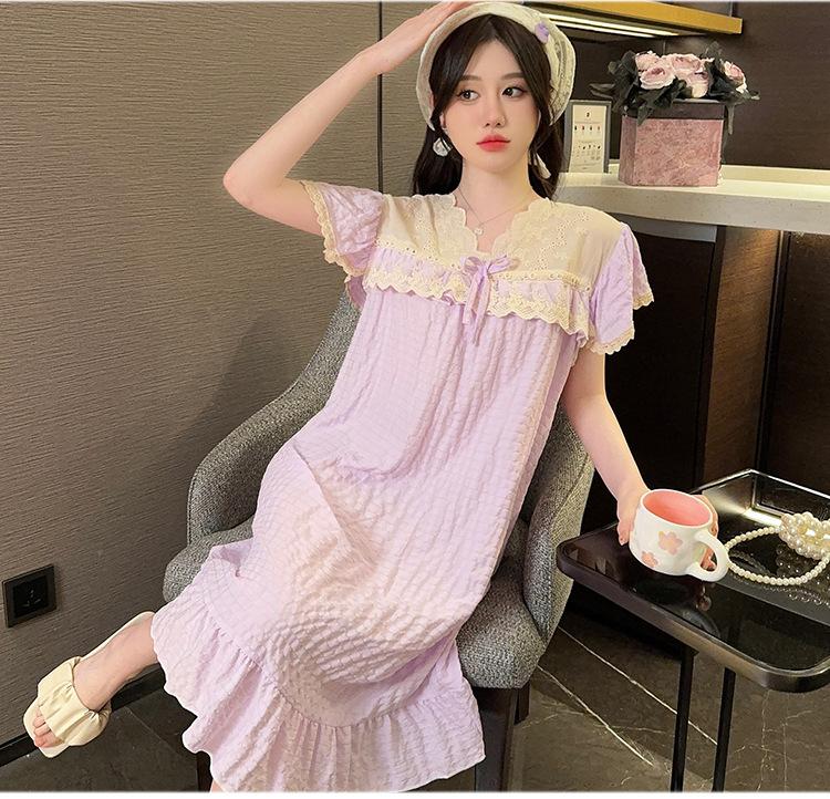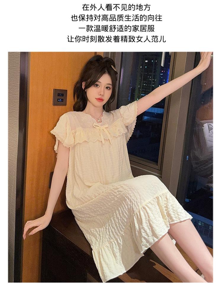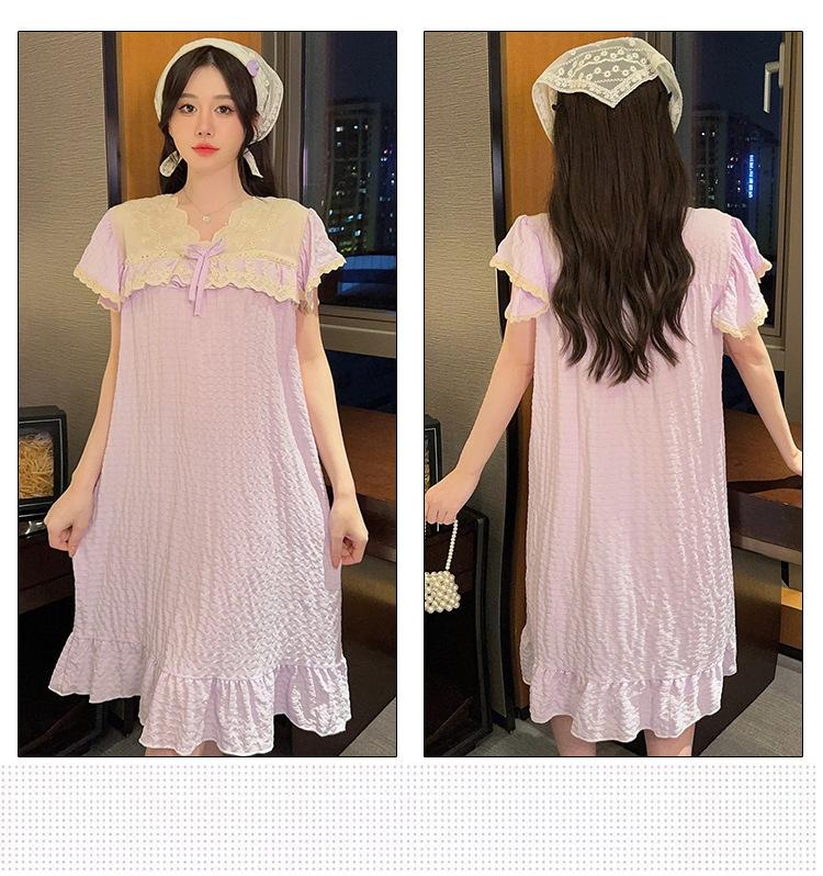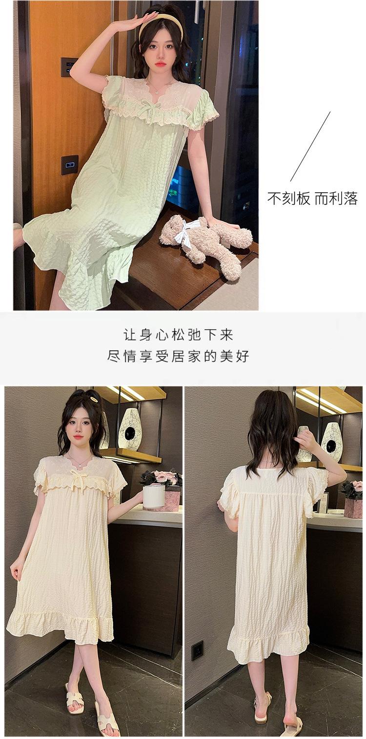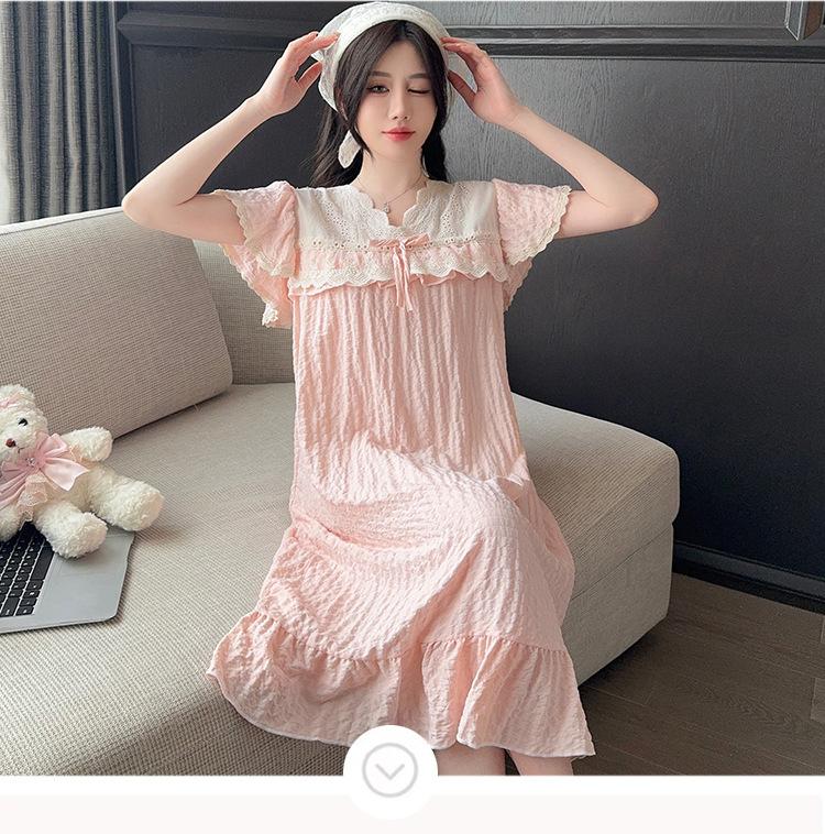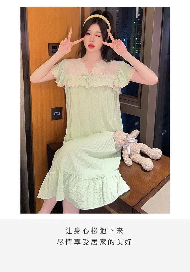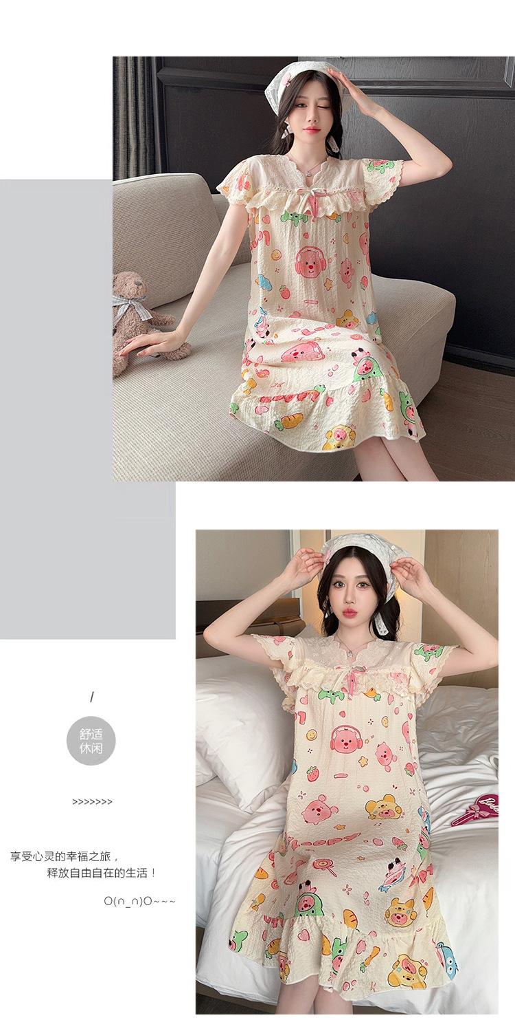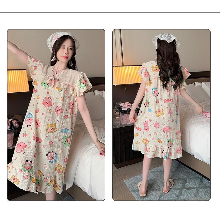 Camisón de algodón con burbujas para mujer, de verano, de manga corta, largo medio, holgado, estilo hada de dibujos animados, talla grande 220, ropa para el hogar Jin