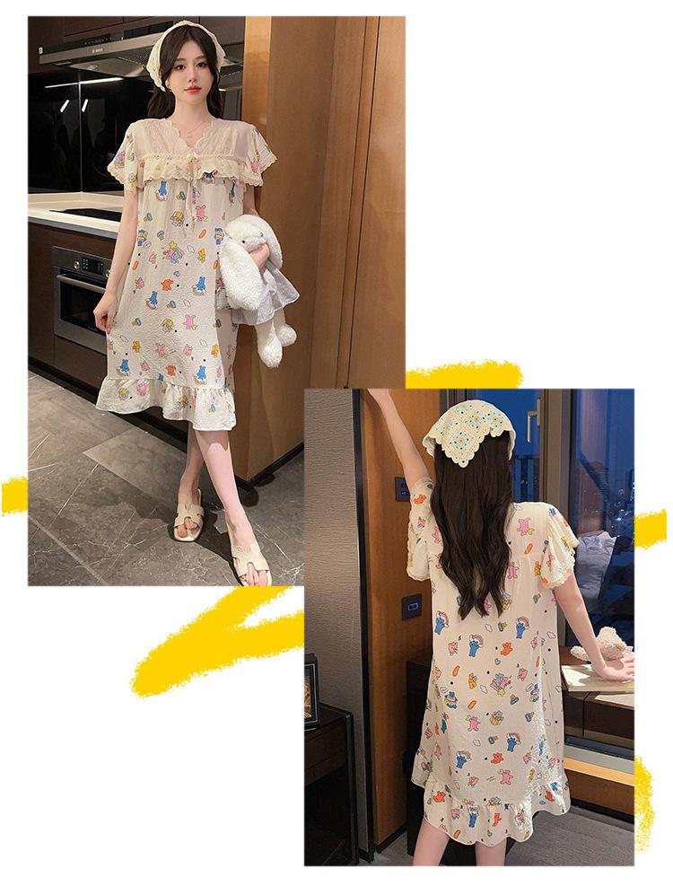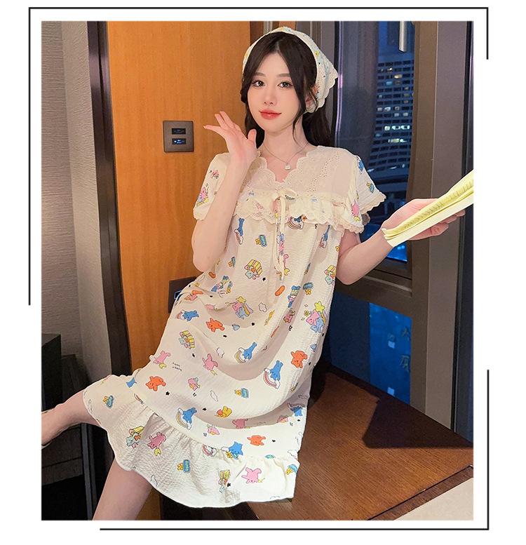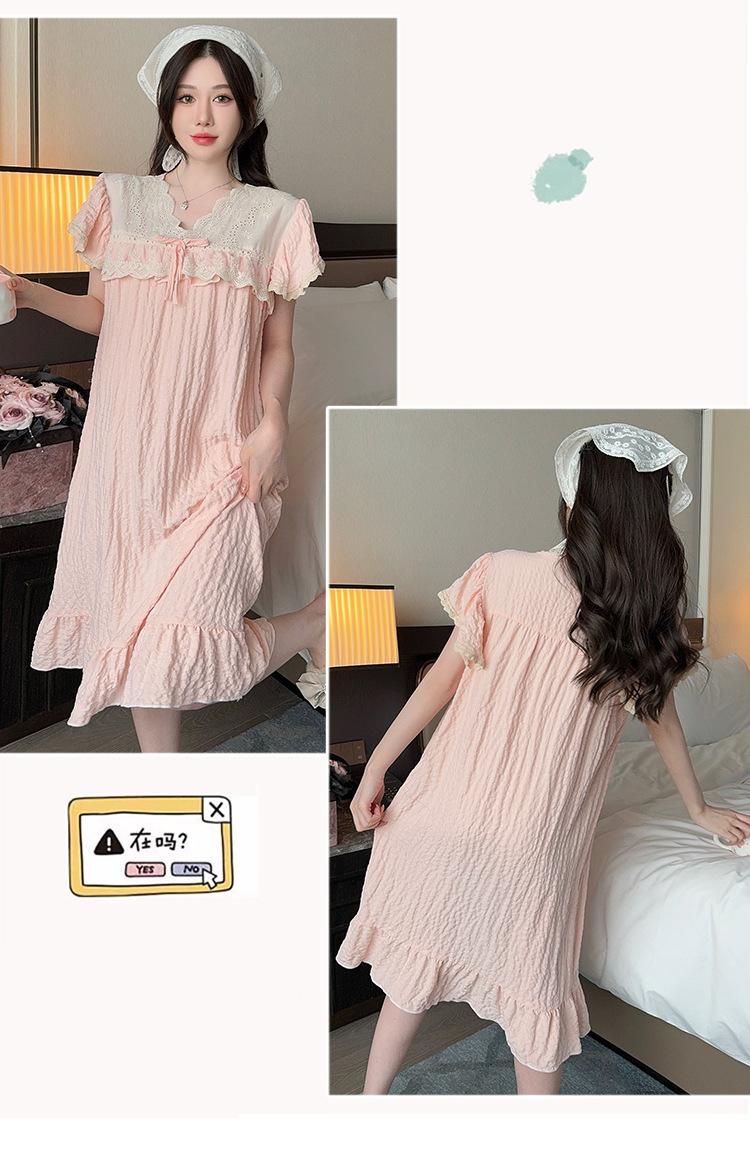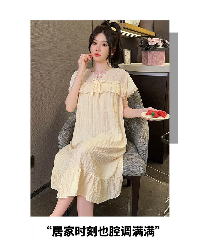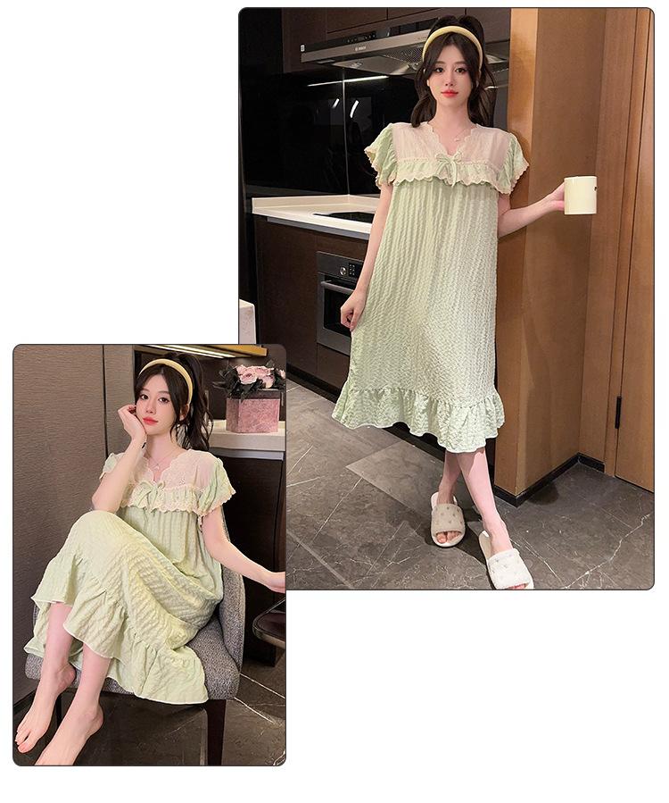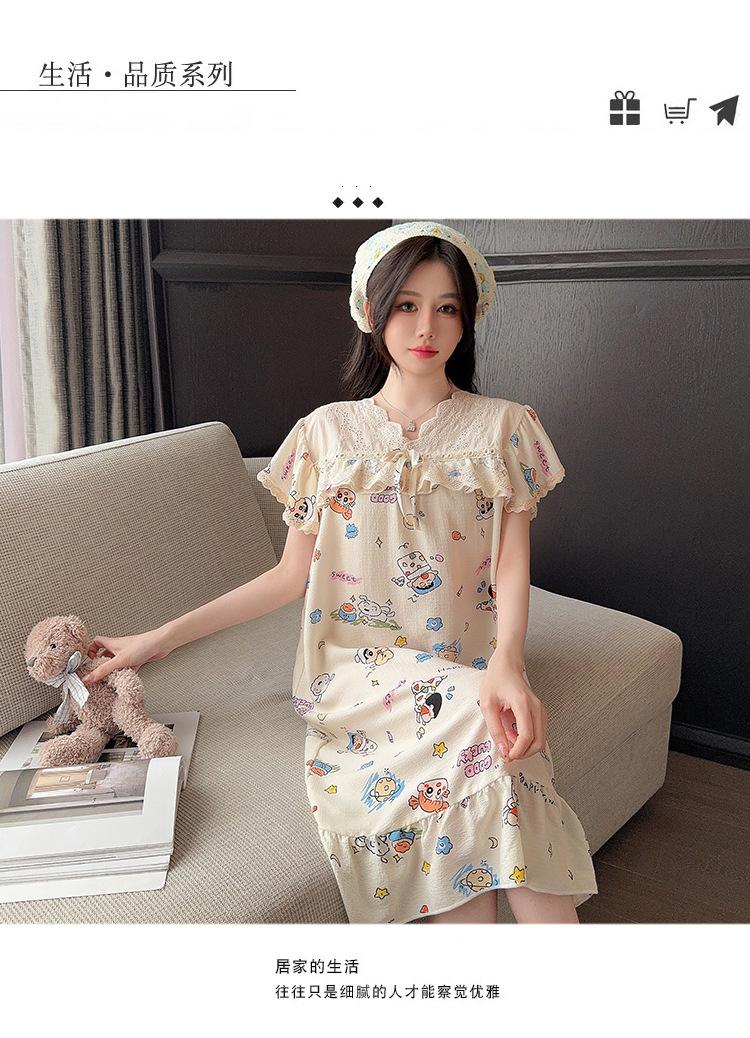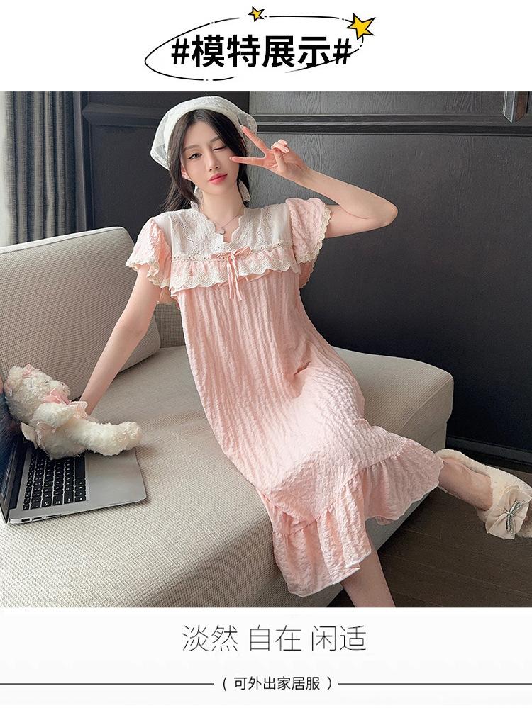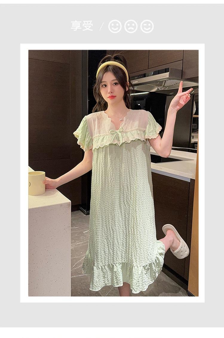 Camisón de algodón con burbujas para mujer, de verano, de manga corta, largo medio, holgado, estilo hada de dibujos animados, talla grande 220, ropa para el hogar Jin