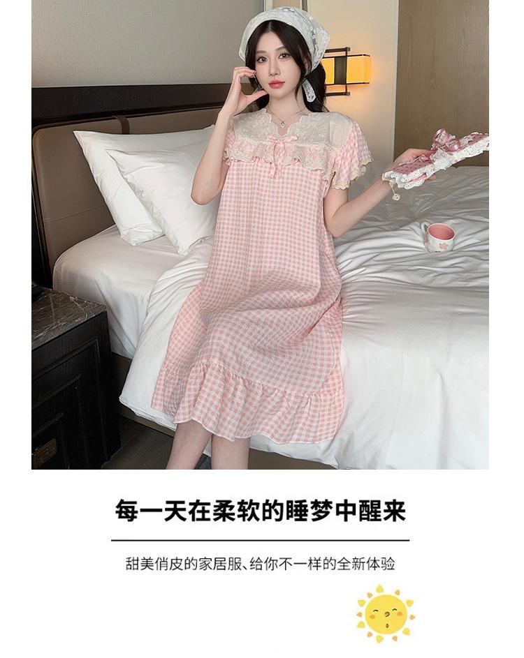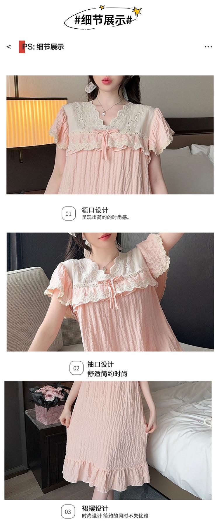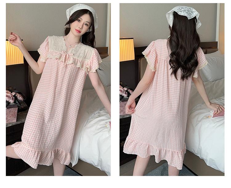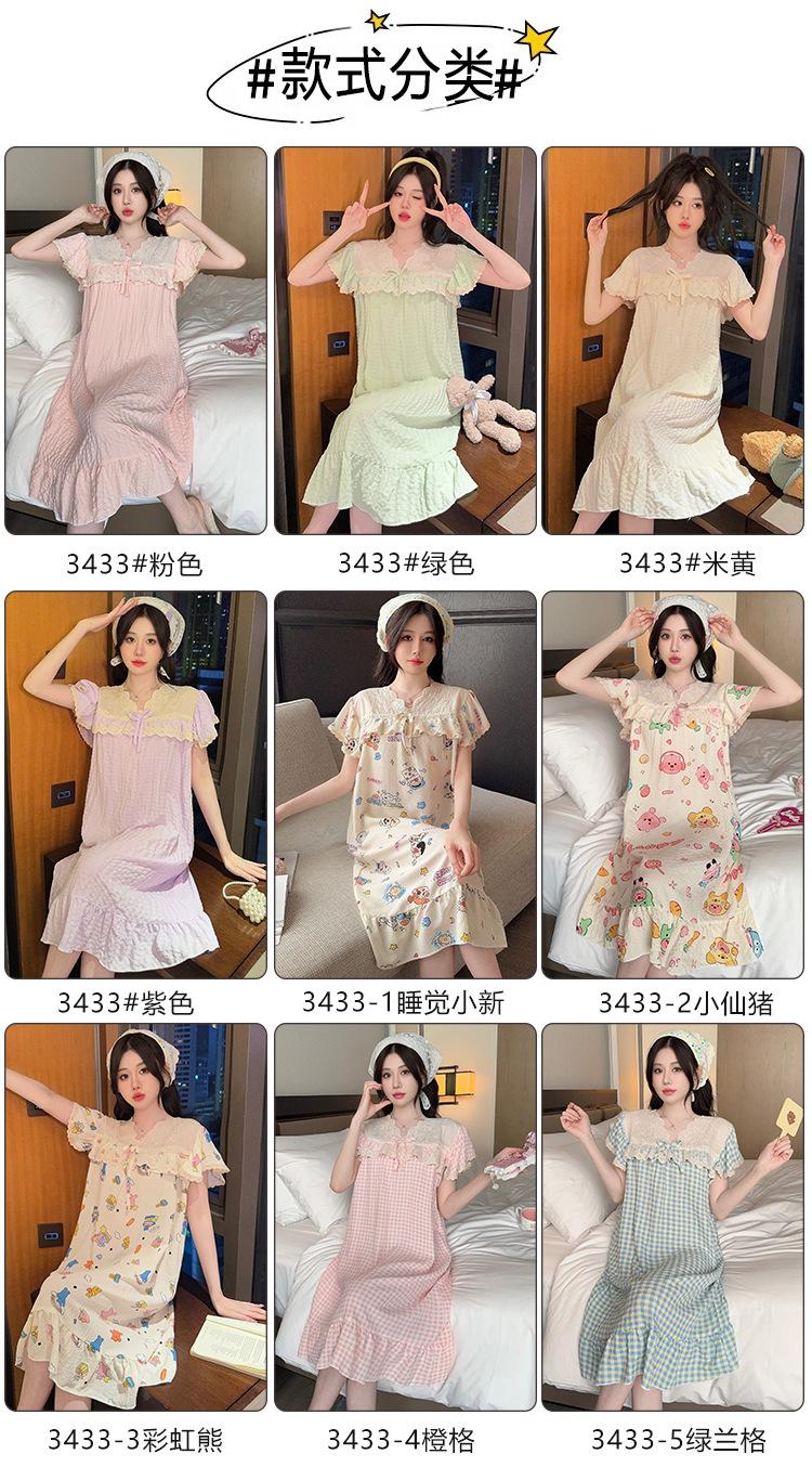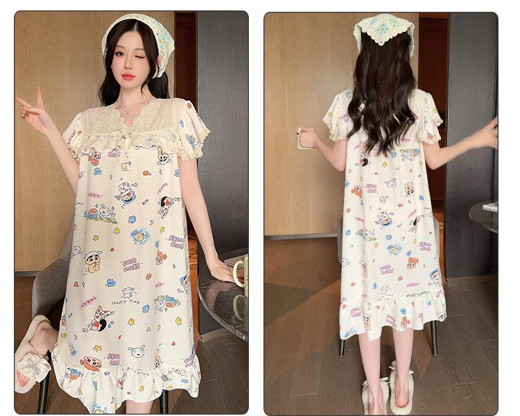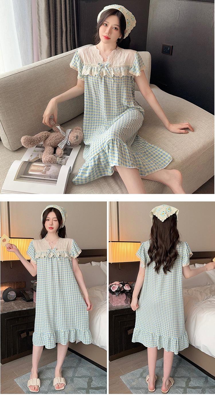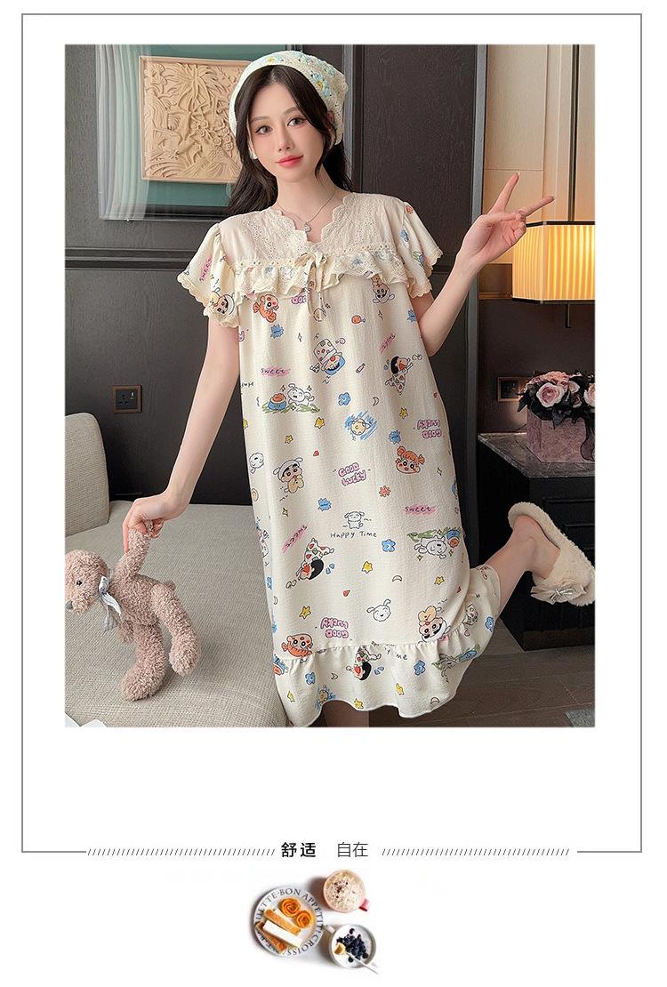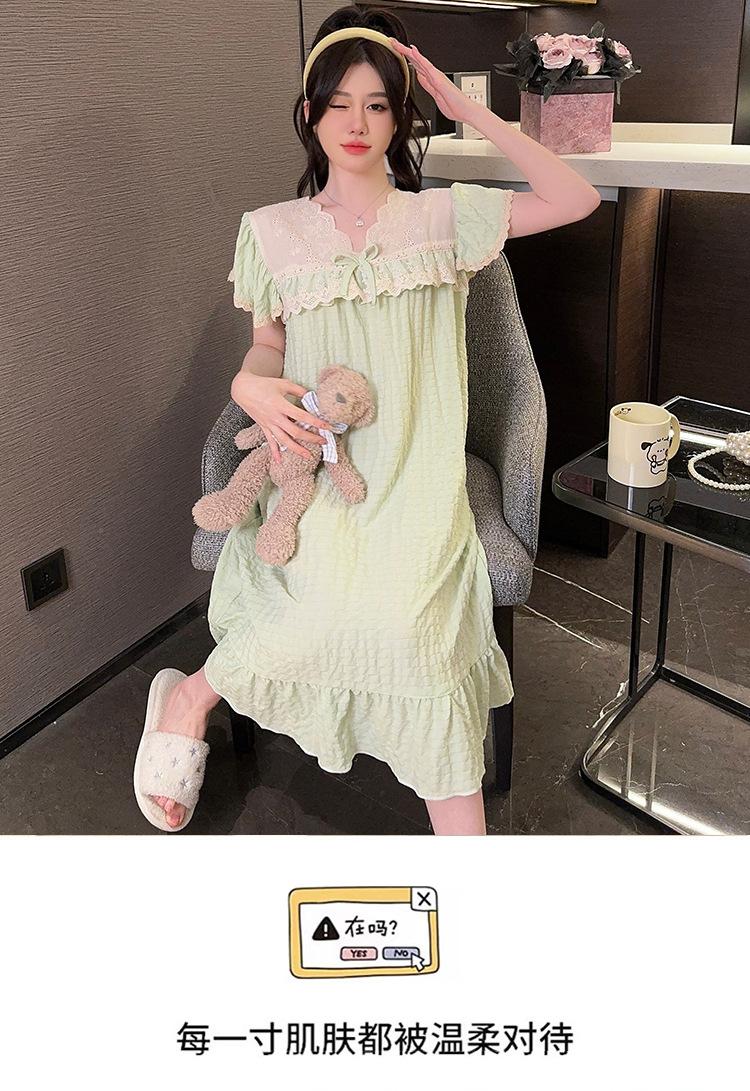 Camisón de algodón con burbujas para mujer, de verano, de manga corta, largo medio, holgado, estilo hada de dibujos animados, talla grande 220, ropa para el hogar Jin