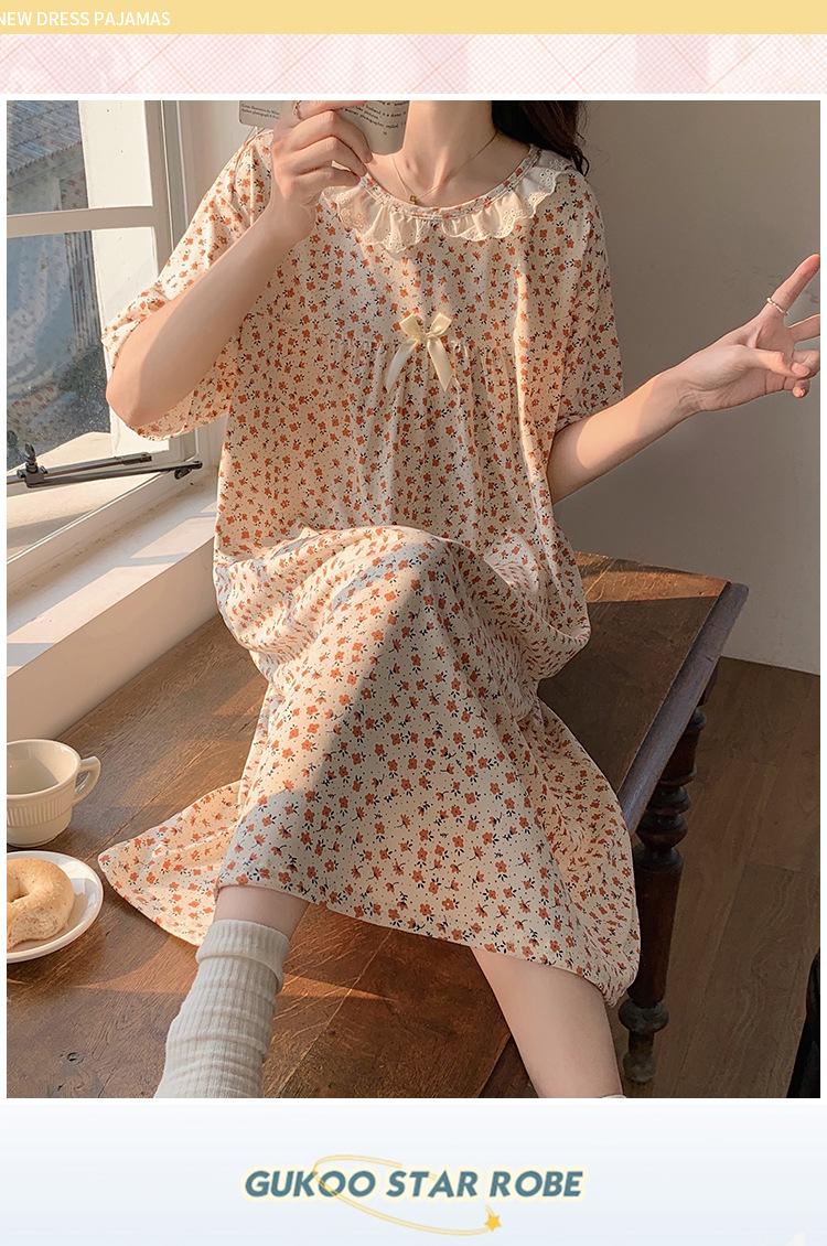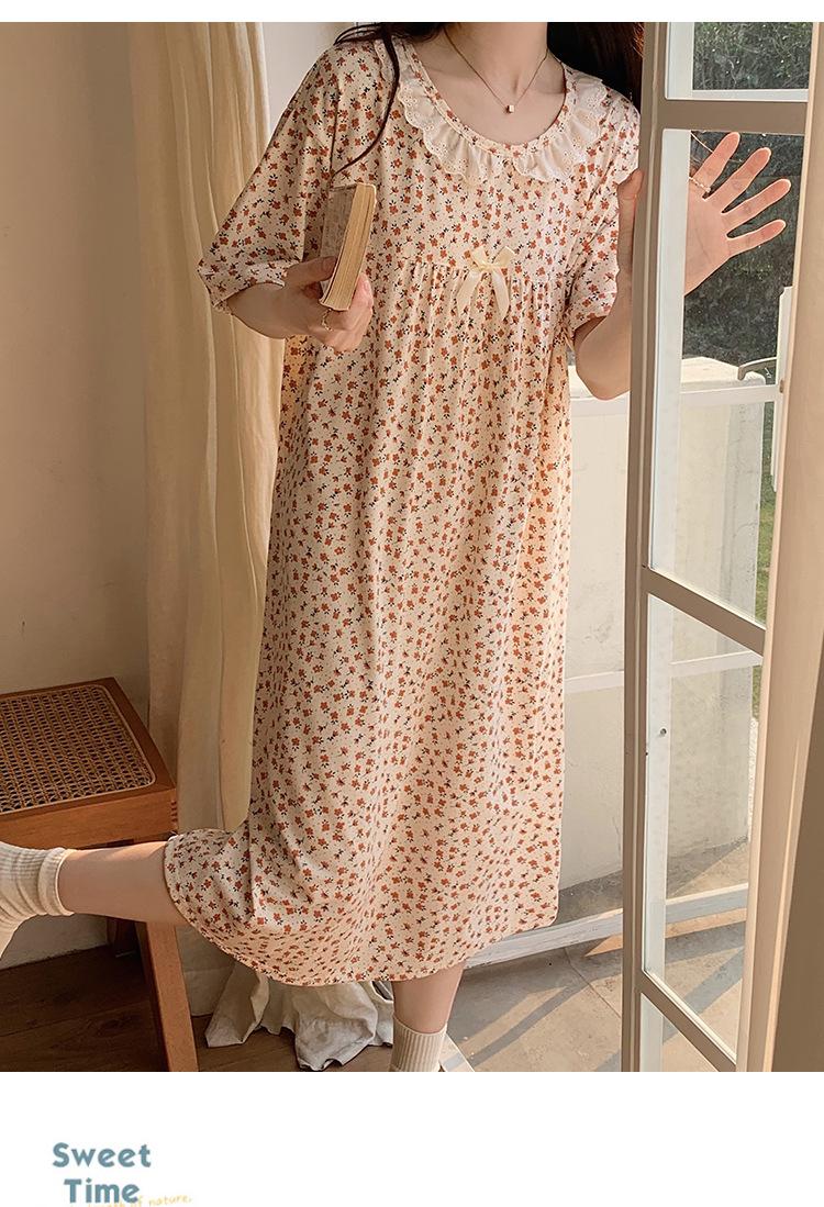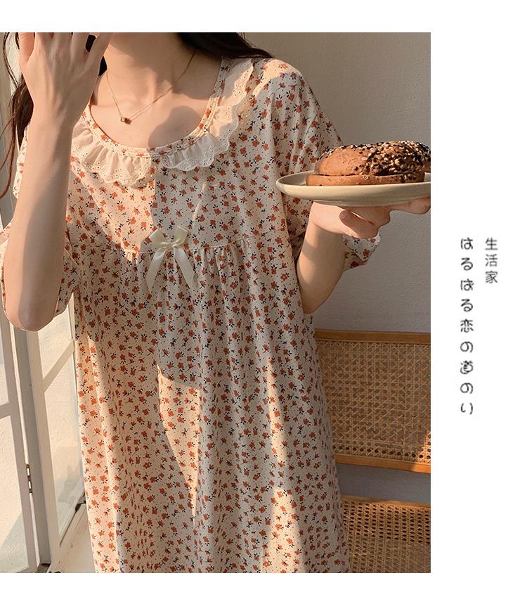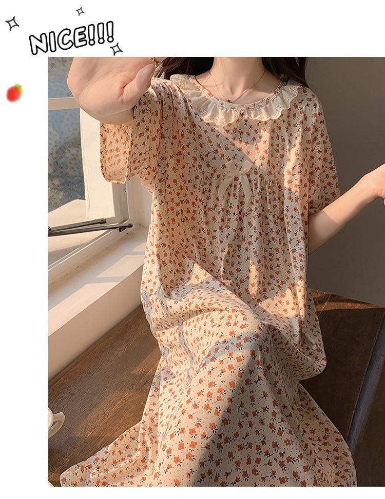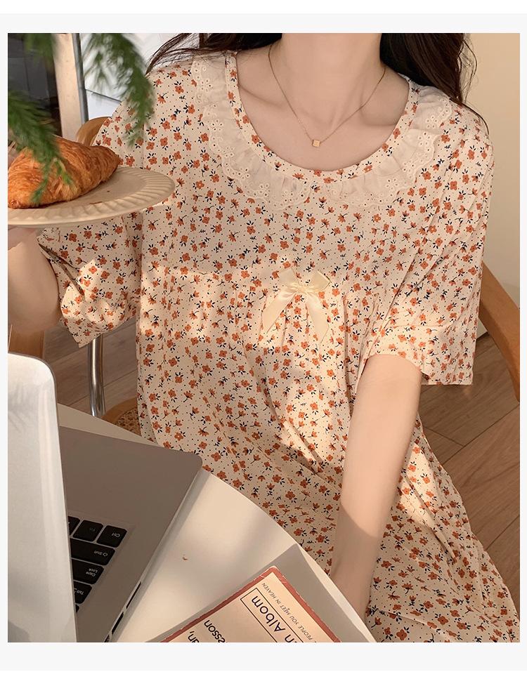 Pijamas de verano 2023, ropa de casa, estilo pastoral coreano, con estampado floral pequeño y talla grande, camisón de comercio exterior para embarazadas.