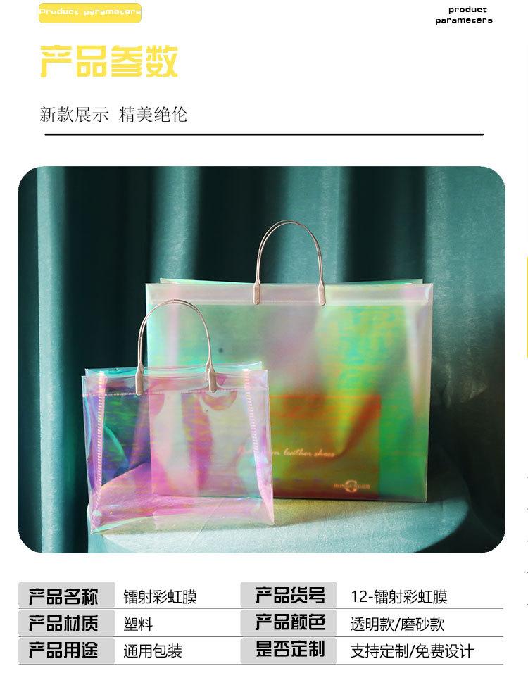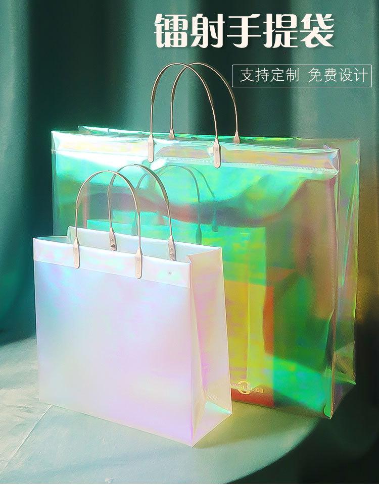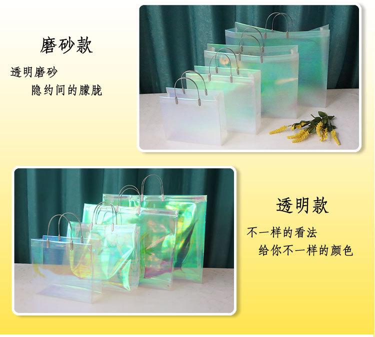 Bolso de Mano de Plástico Transparente Escarchado, Bolsa de Compras Láser Colorida, Bolsa para Empaque de Regalo, Bolsa de Gelatina, Stock Listo Universal