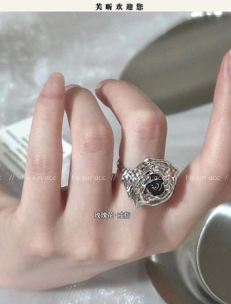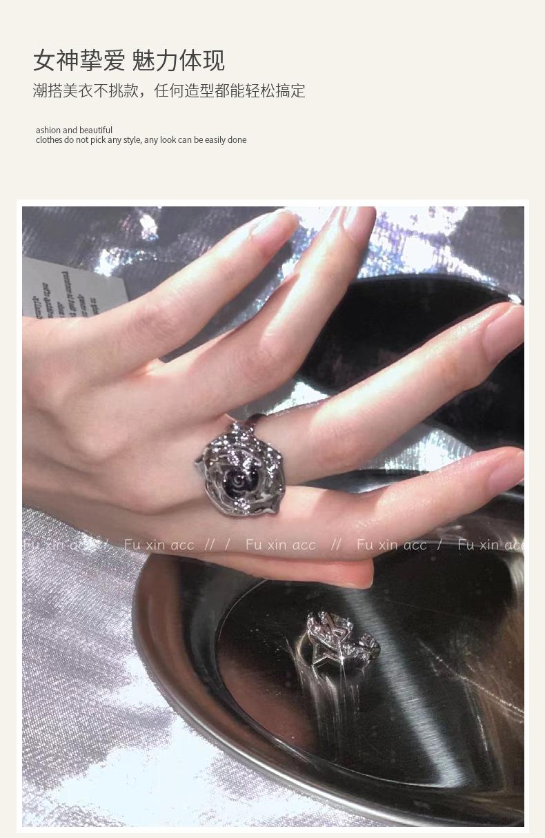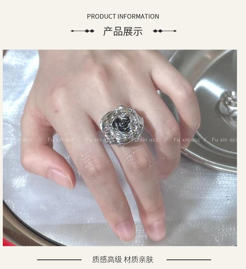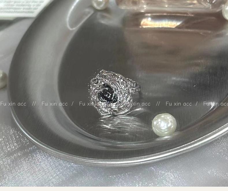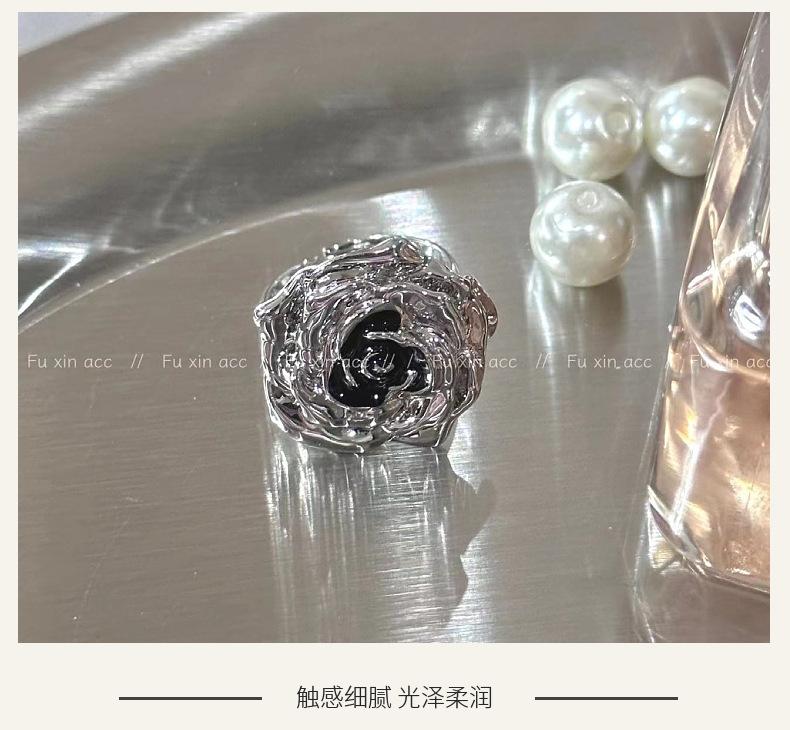 Anillo de Rosa Tridimensional Negro Retro Francés para Mujer, Diseño Nicho, Anillo Abierto Ajustable para el Dedo Índice, Anillo de Flor de Rosa