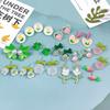 Pendientes pequeños con lazo de flores verdes frescas, elegantes, exquisitos y bonitos, de aleación, de alta gama para mujer.