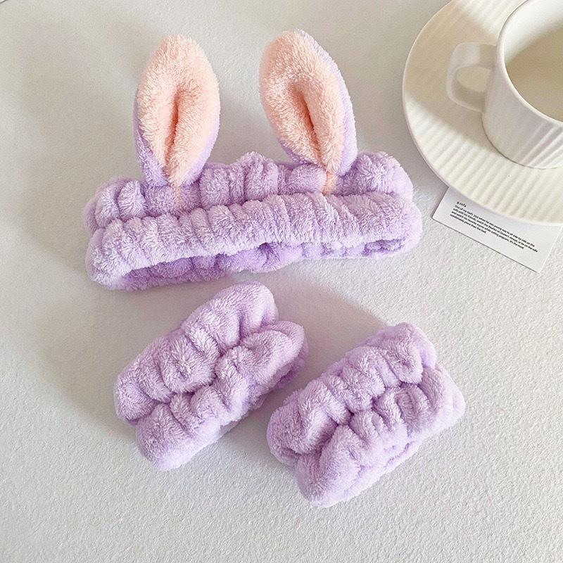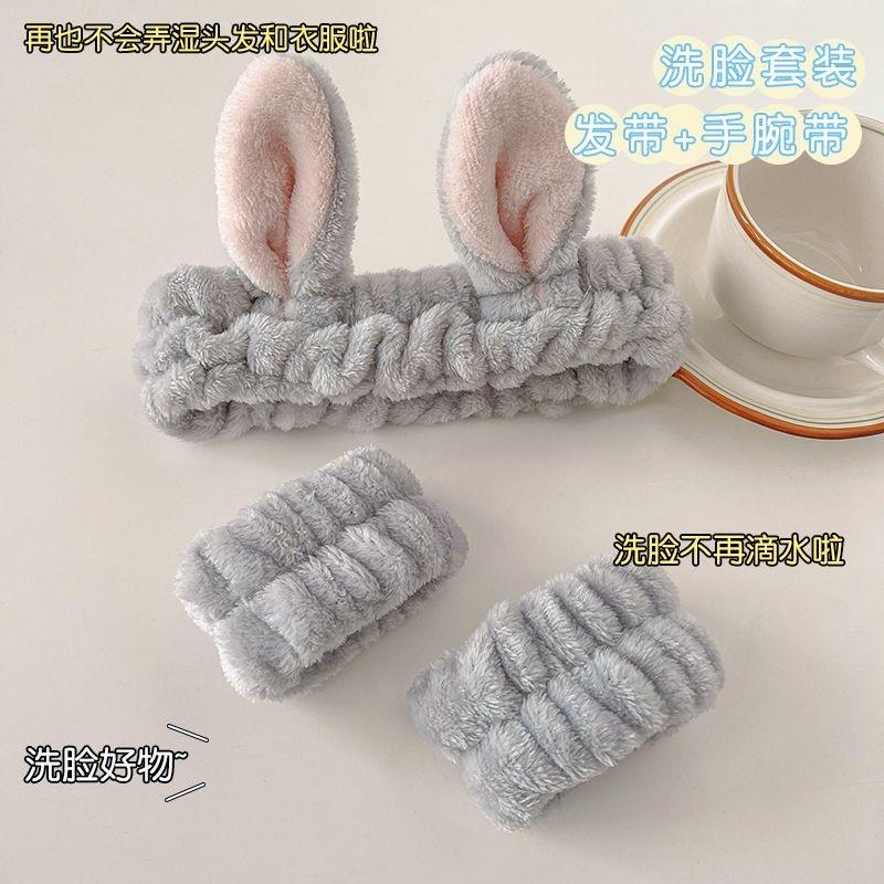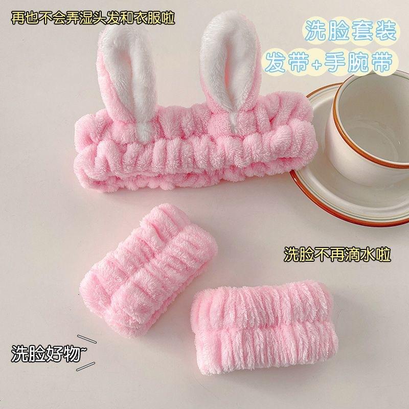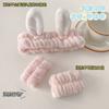 Bonita banda para el cabello con orejas de conejo para lavar la cara, correa para la muñeca antigoteo, traje de felpa, diadema absorbente para el cabello