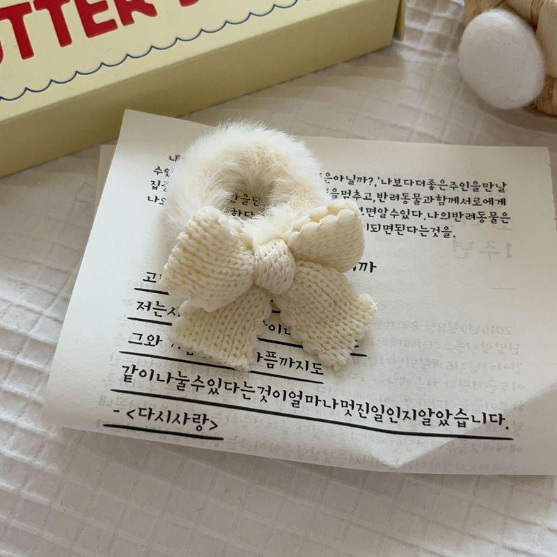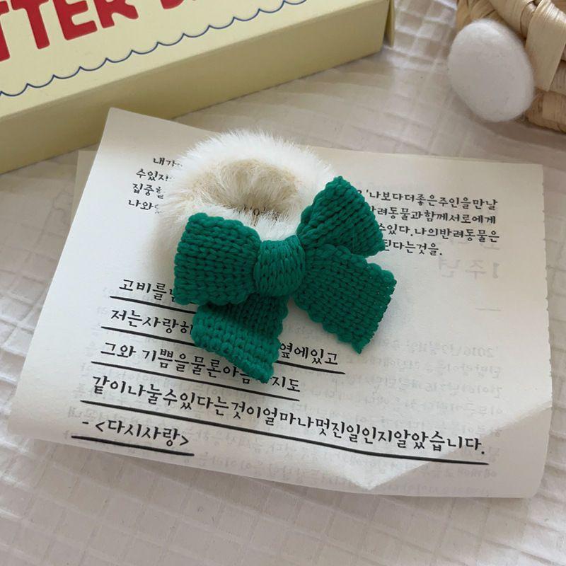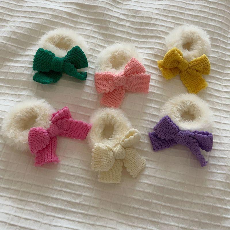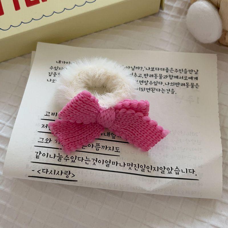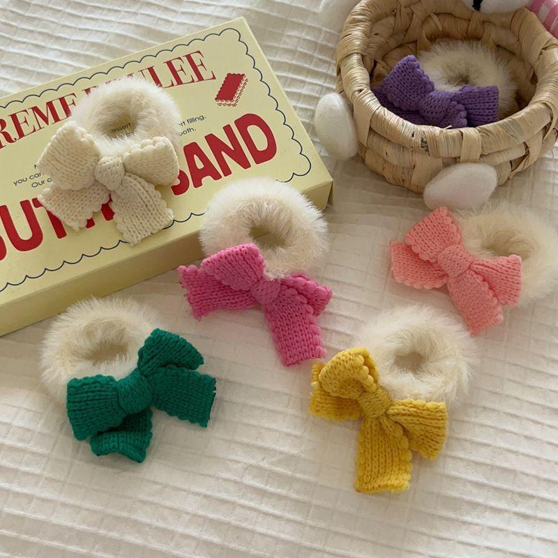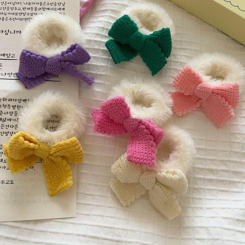 Banda para el cabello de lana tejida con lazo colorido para niña, banda de goma para el cabello, coleta, cubierta de cuero, tocado, accesorios para el cabello