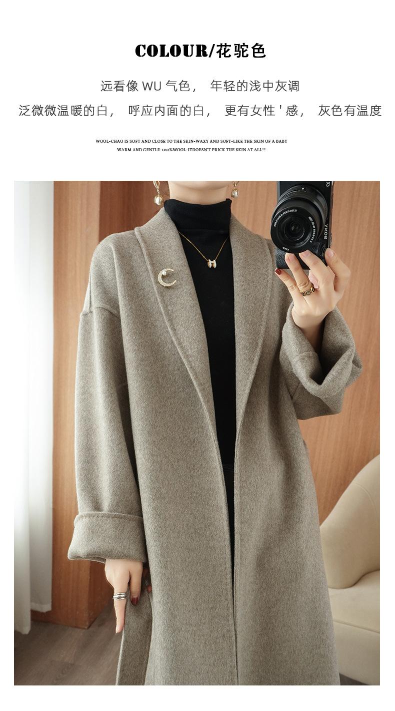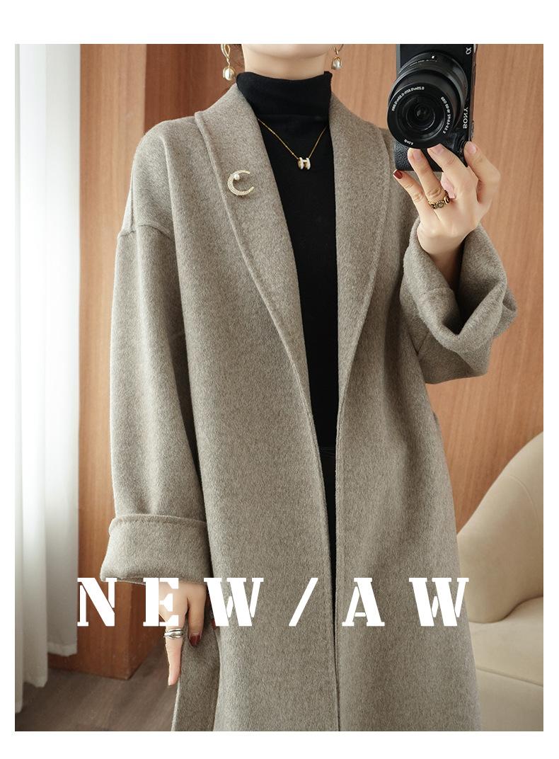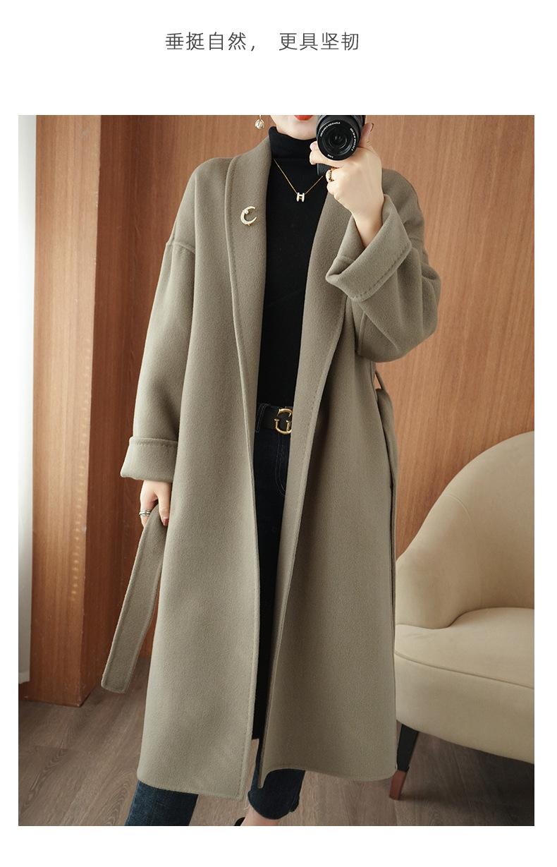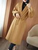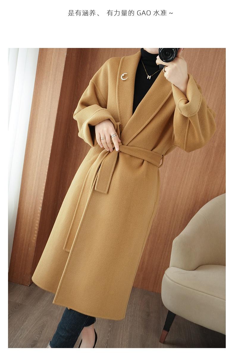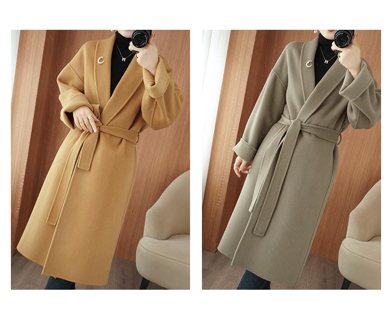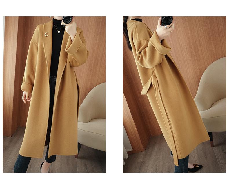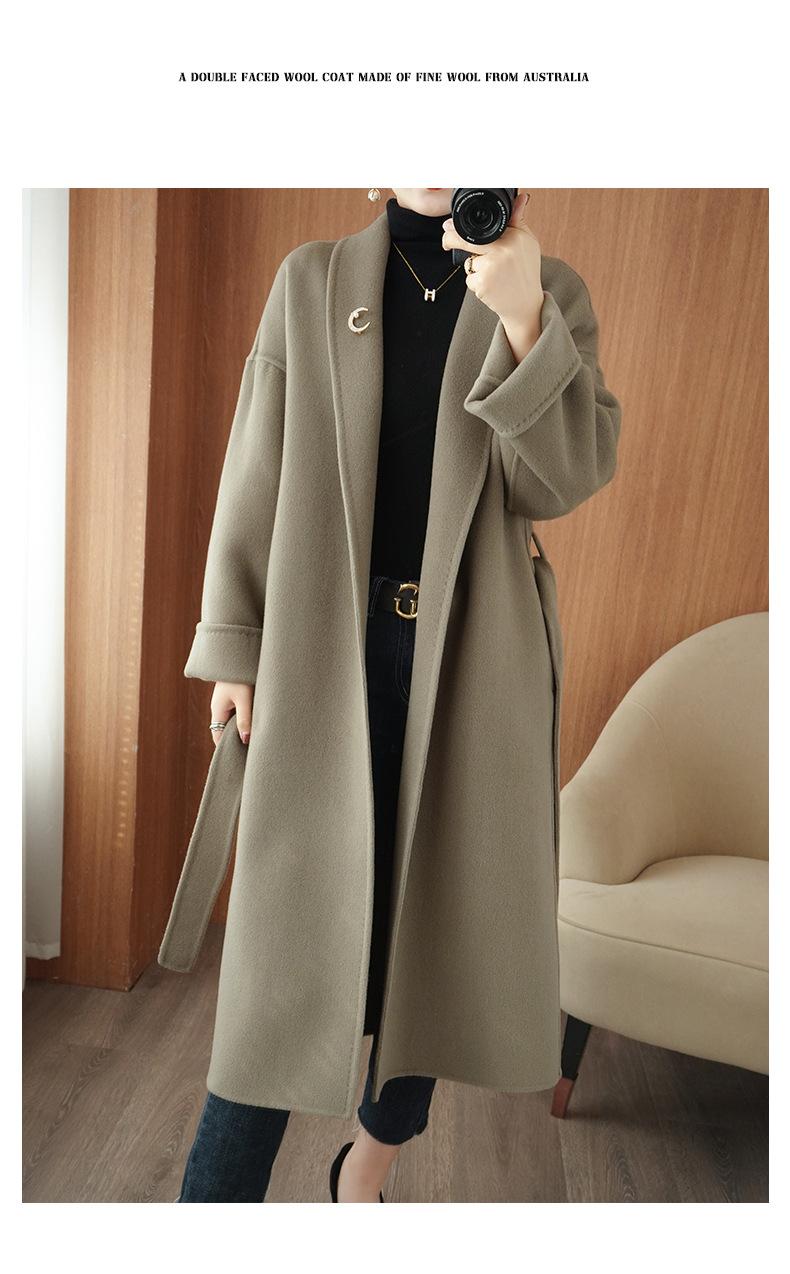 Abrigo de lana de otoño e invierno 2023 para mujer, largo medio, doble cara, elegante cinturón, estilo perezoso, abrigo de lana suelto estilo coreano
