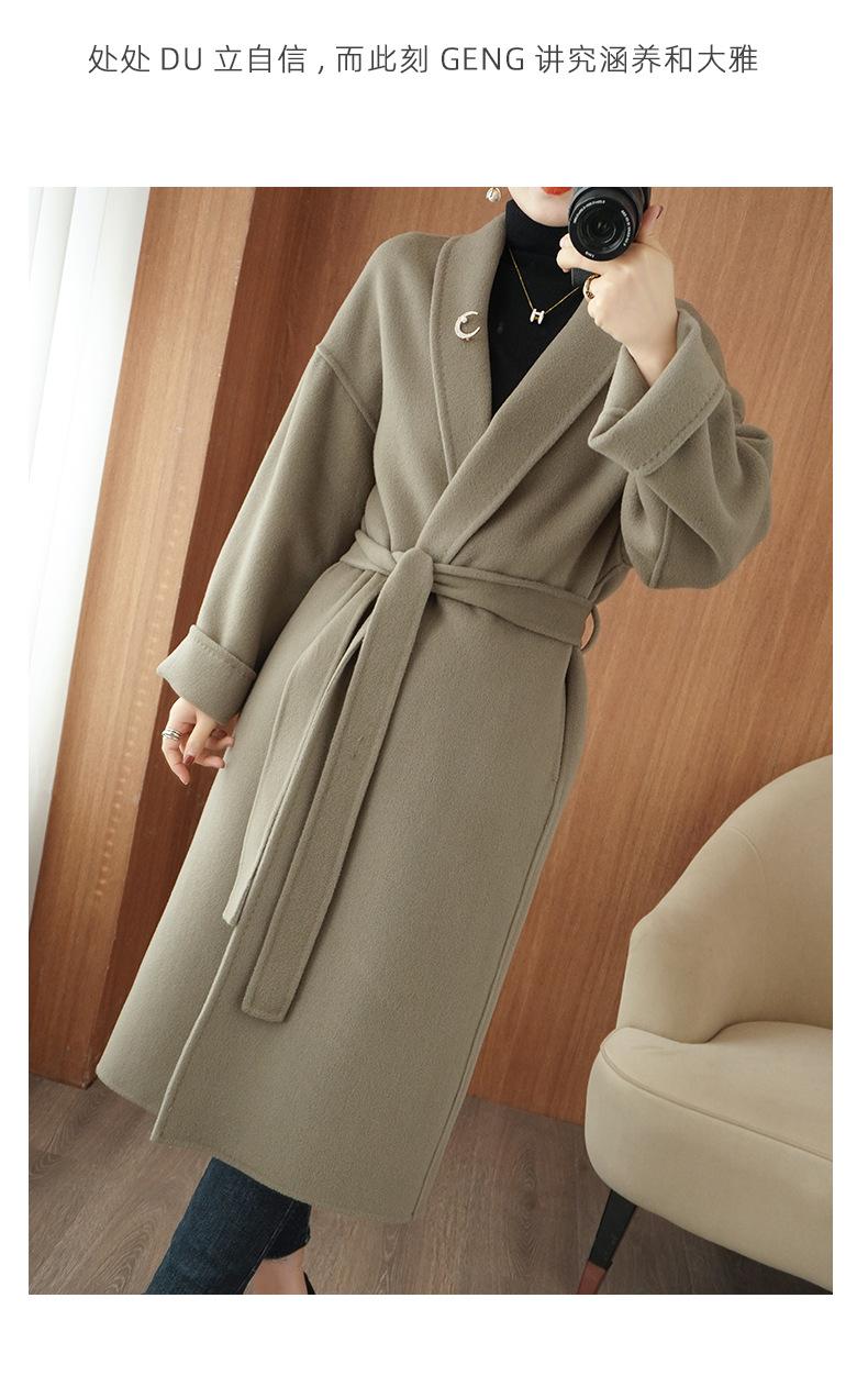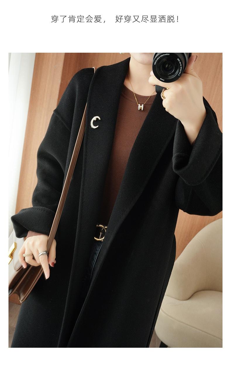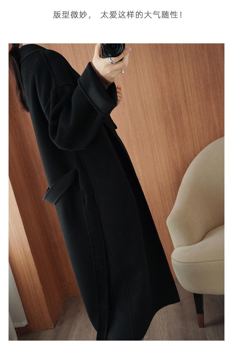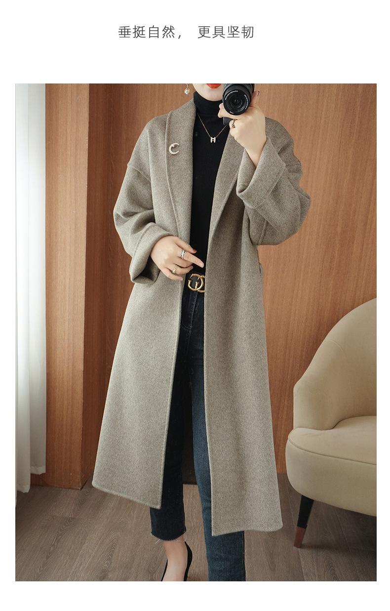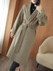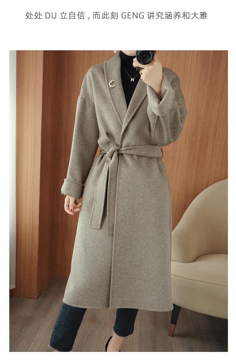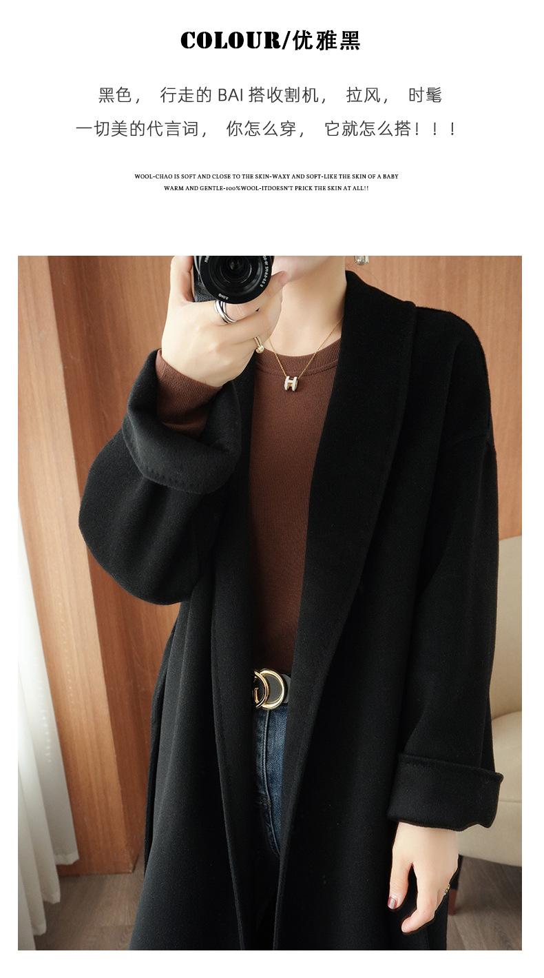 Abrigo de lana de otoño e invierno 2023 para mujer, largo medio, doble cara, elegante cinturón, estilo perezoso, abrigo de lana suelto estilo coreano