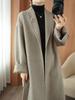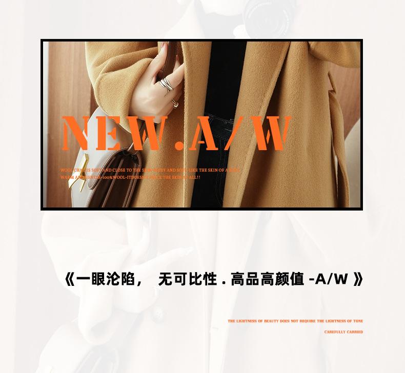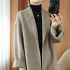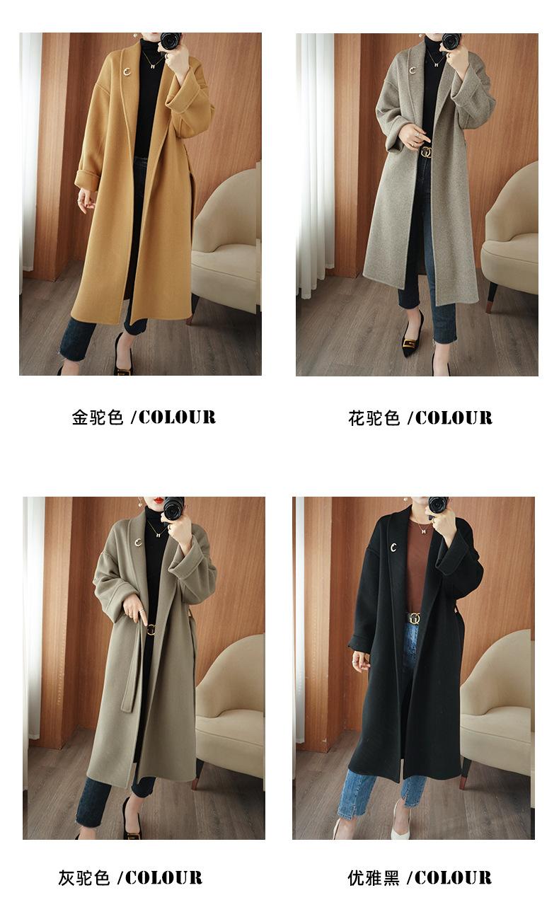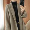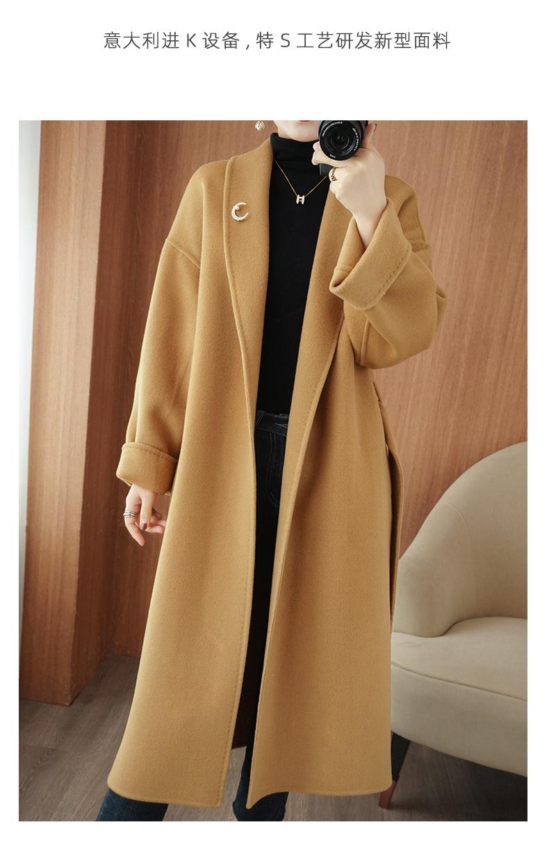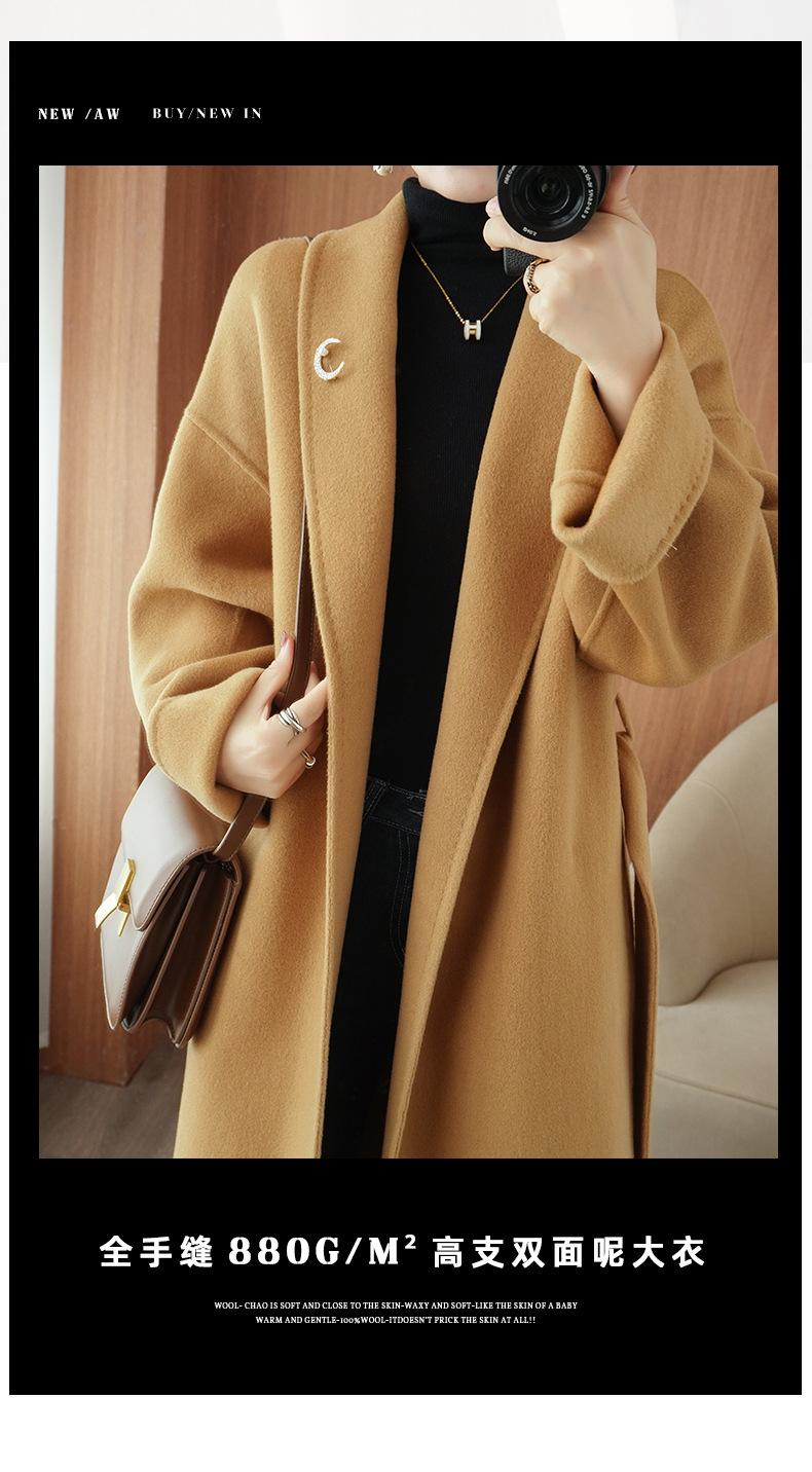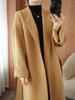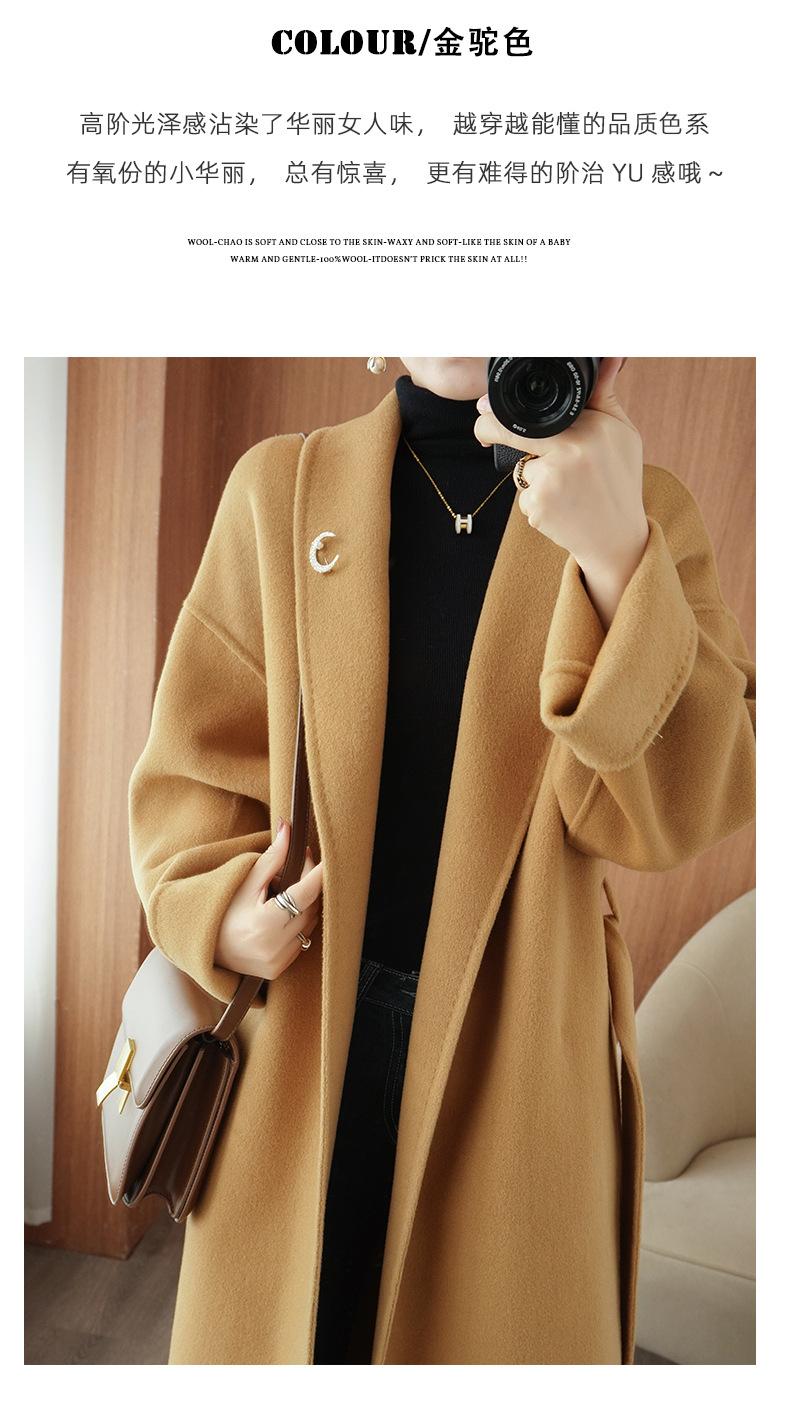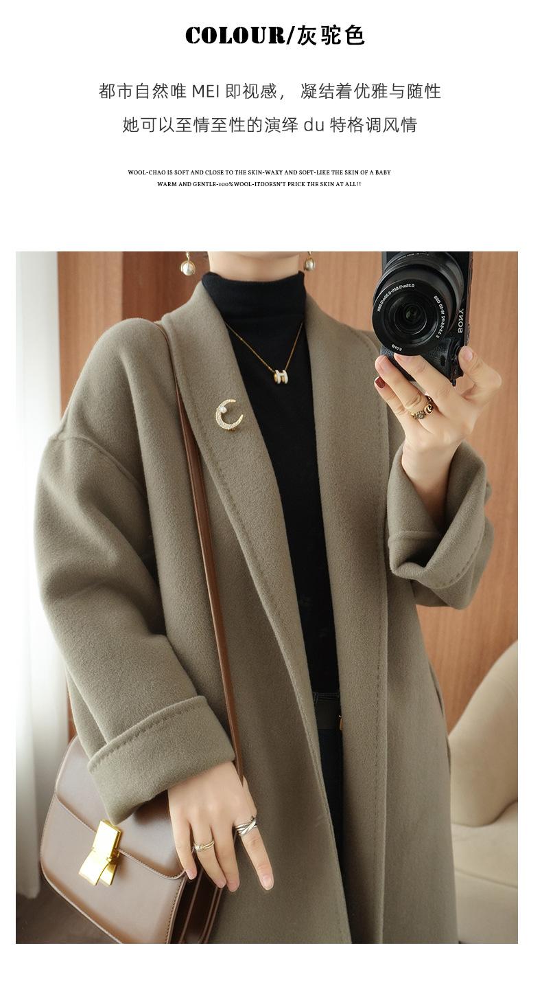 Abrigo de lana de otoño e invierno 2023 para mujer, largo medio, doble cara, elegante cinturón, estilo perezoso, abrigo de lana suelto estilo coreano