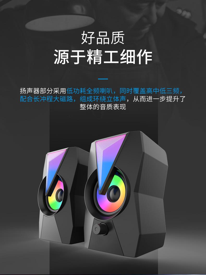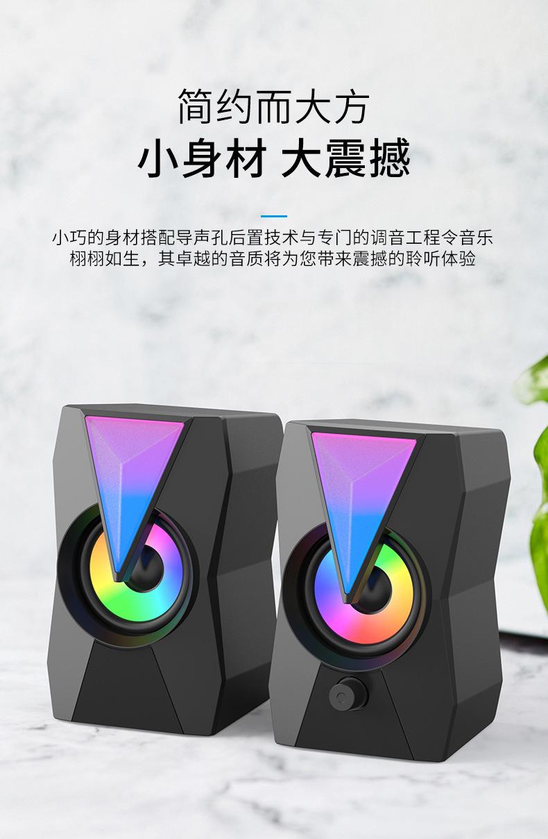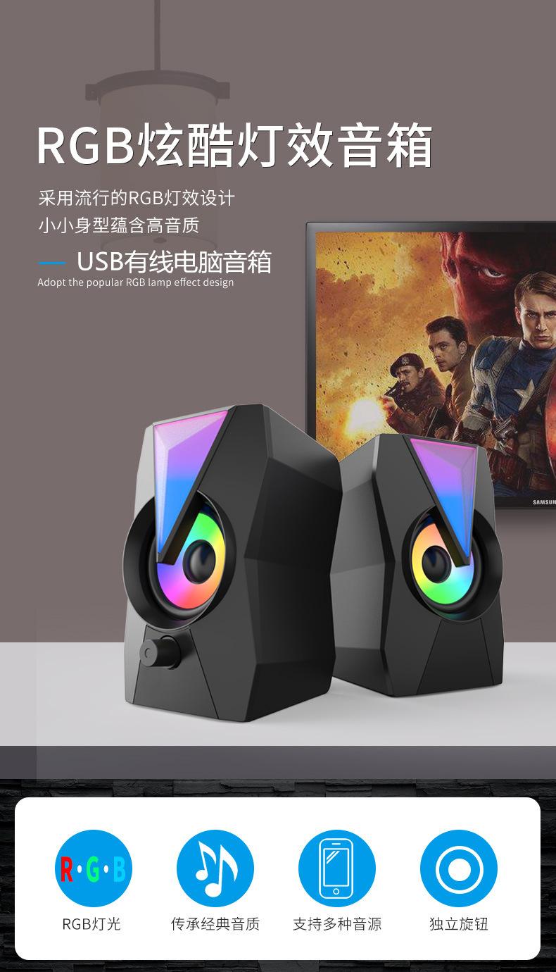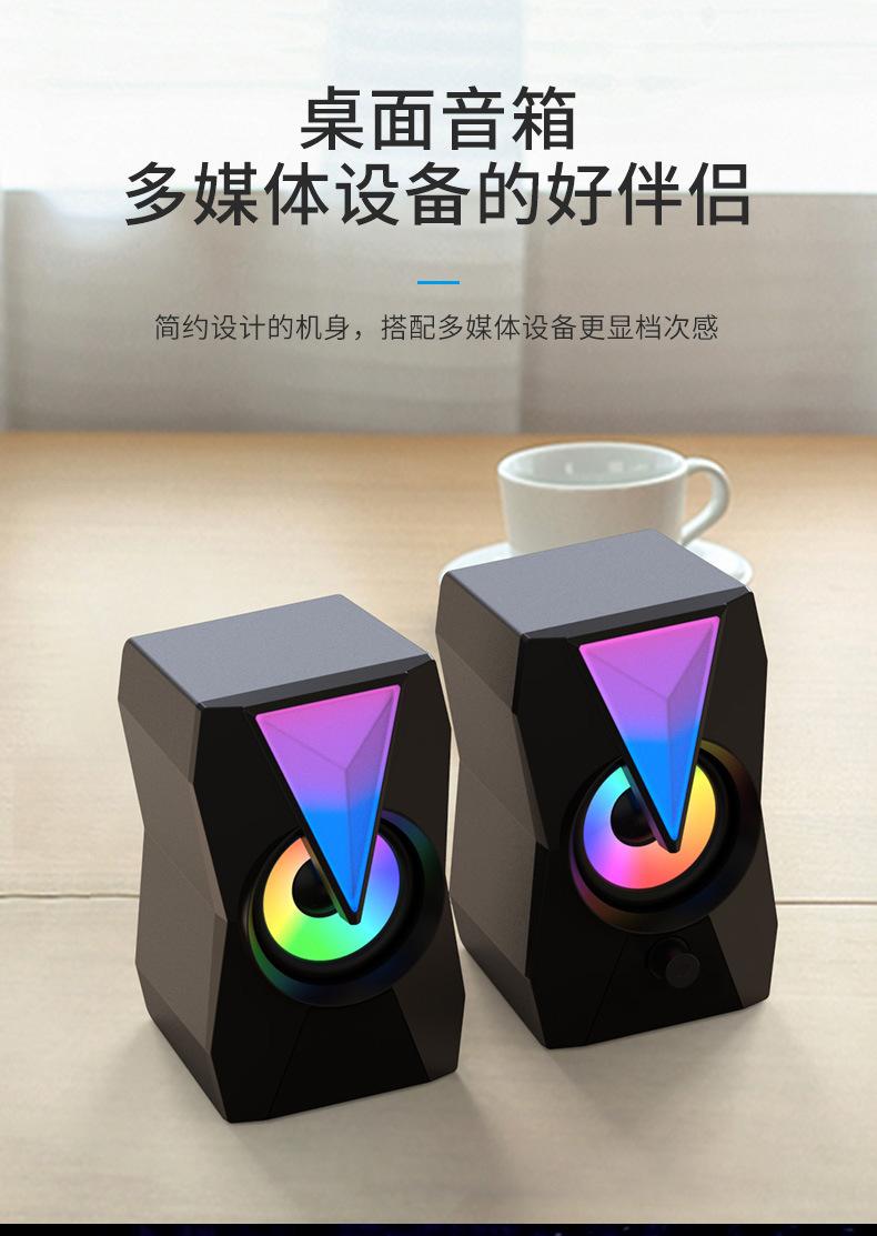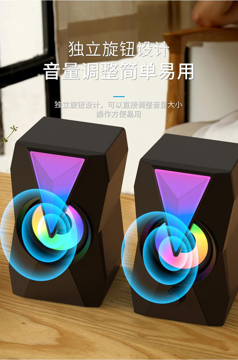 Altavoces para ordenador luminosos RGB con cable 2.0 multimedia con perilla, altavoces pequeños de escritorio, altavoces activos para ordenador portátil de escritorioTrompeta pequeña al por mayor, una pieza, envío directo