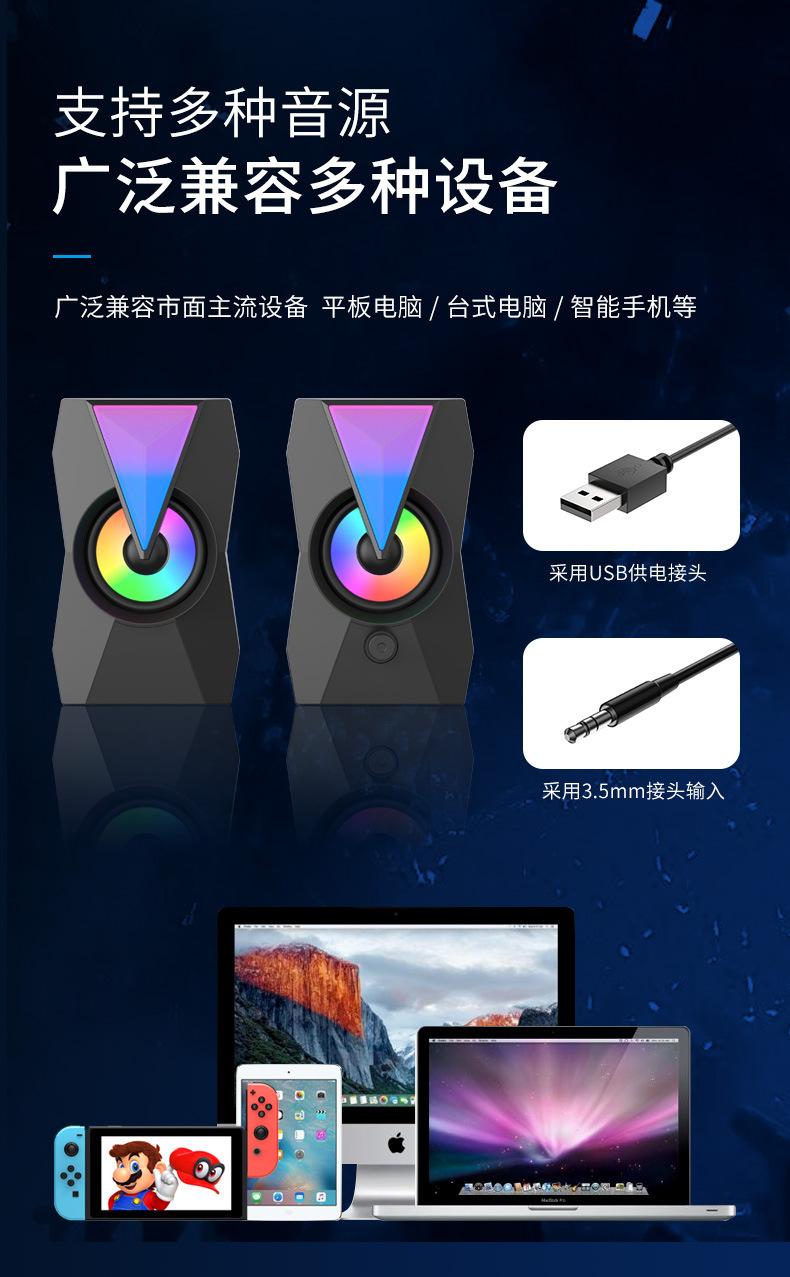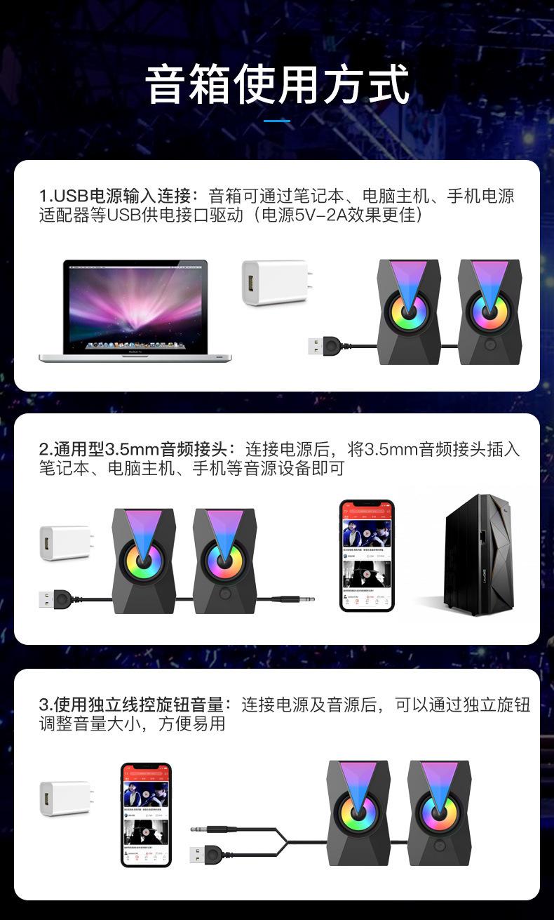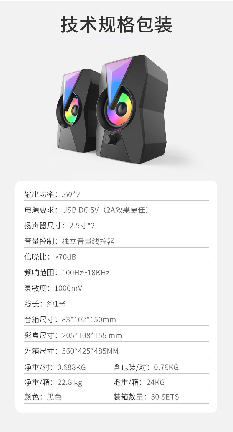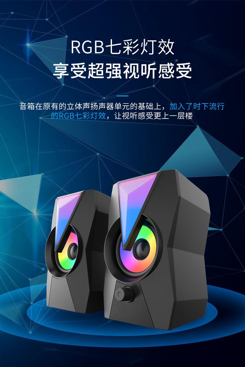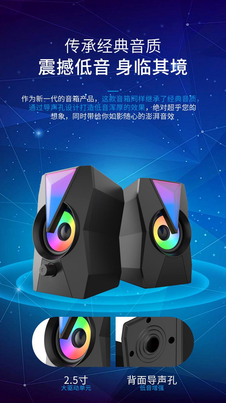 Altavoces para ordenador luminosos RGB con cable 2.0 multimedia con perilla, altavoces pequeños de escritorio, altavoces activos para ordenador portátil de escritorioTrompeta pequeña al por mayor, una pieza, envío directo