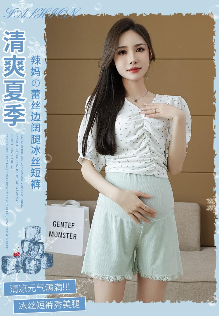 Pantalones cortos de verano para embarazadas, finos, de seda helada, de seguridad, holgados, de talla grande, informales, básicos, para verano