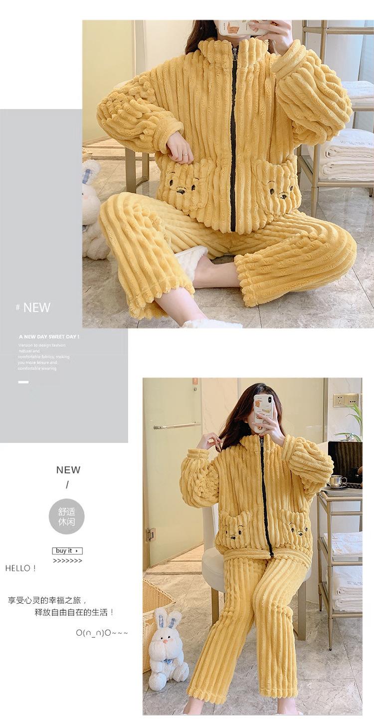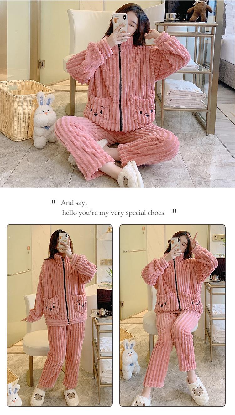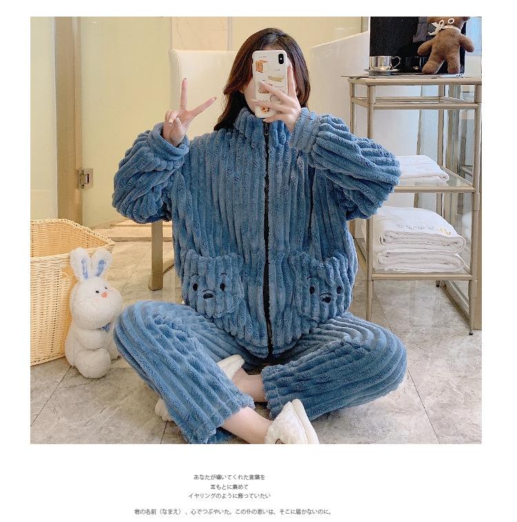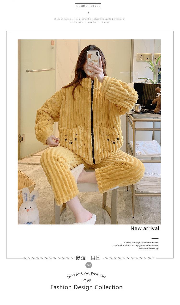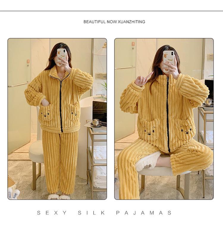 Pijama de terciopelo jacquard acolchado de otoño e invierno, talla MM200 kg, para mujer, de terciopelo coral, dulce y linda ropa para el hogar