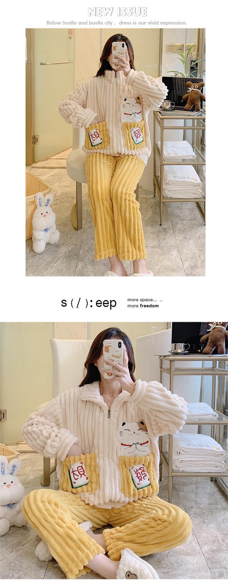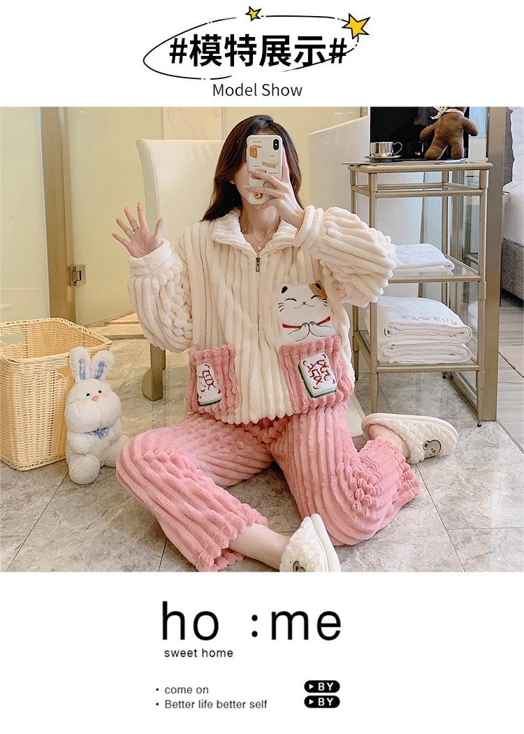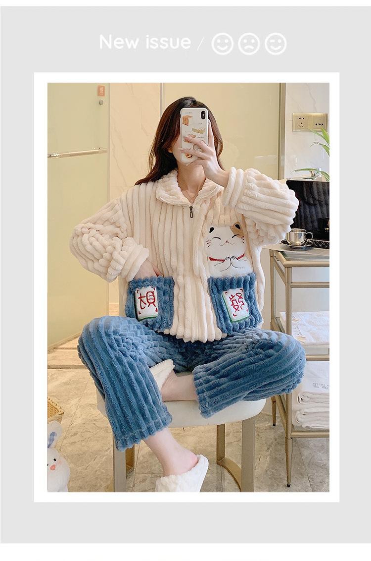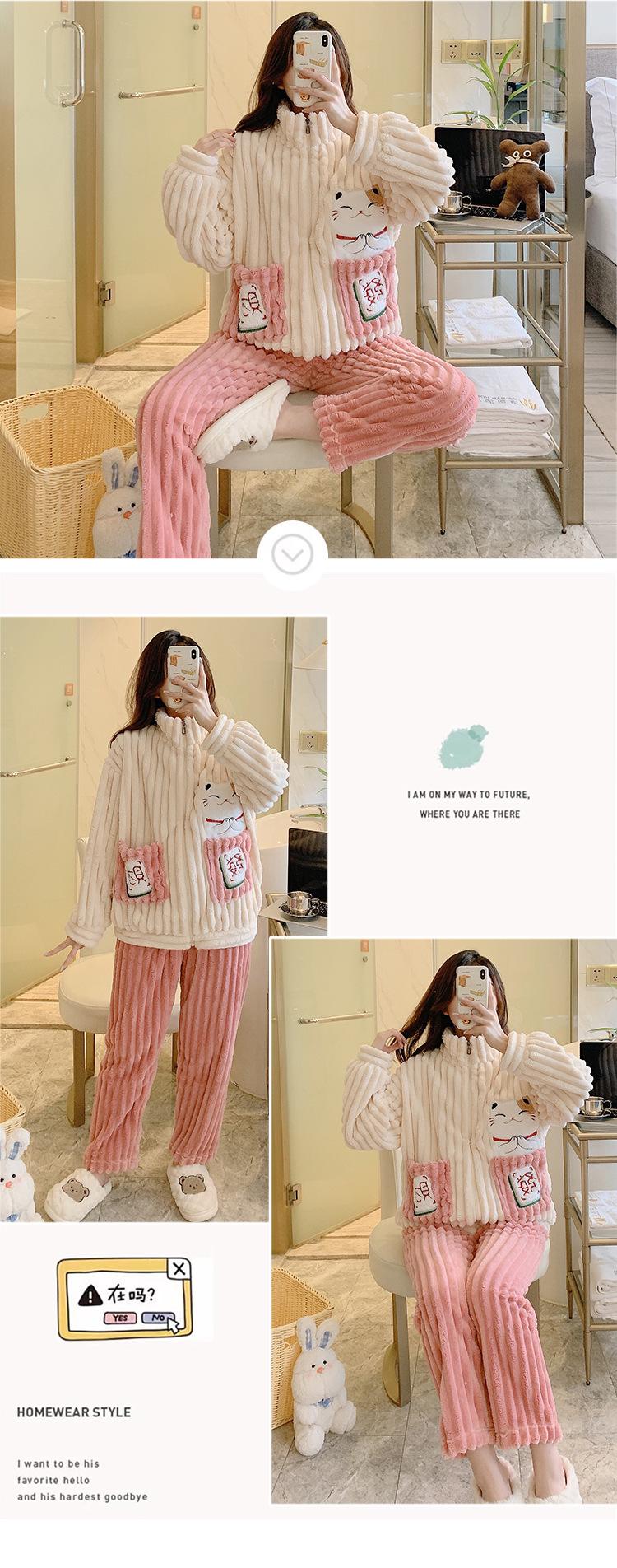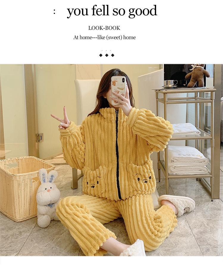 Pijama de terciopelo jacquard acolchado de otoño e invierno, talla MM200 kg, para mujer, de terciopelo coral, dulce y linda ropa para el hogar