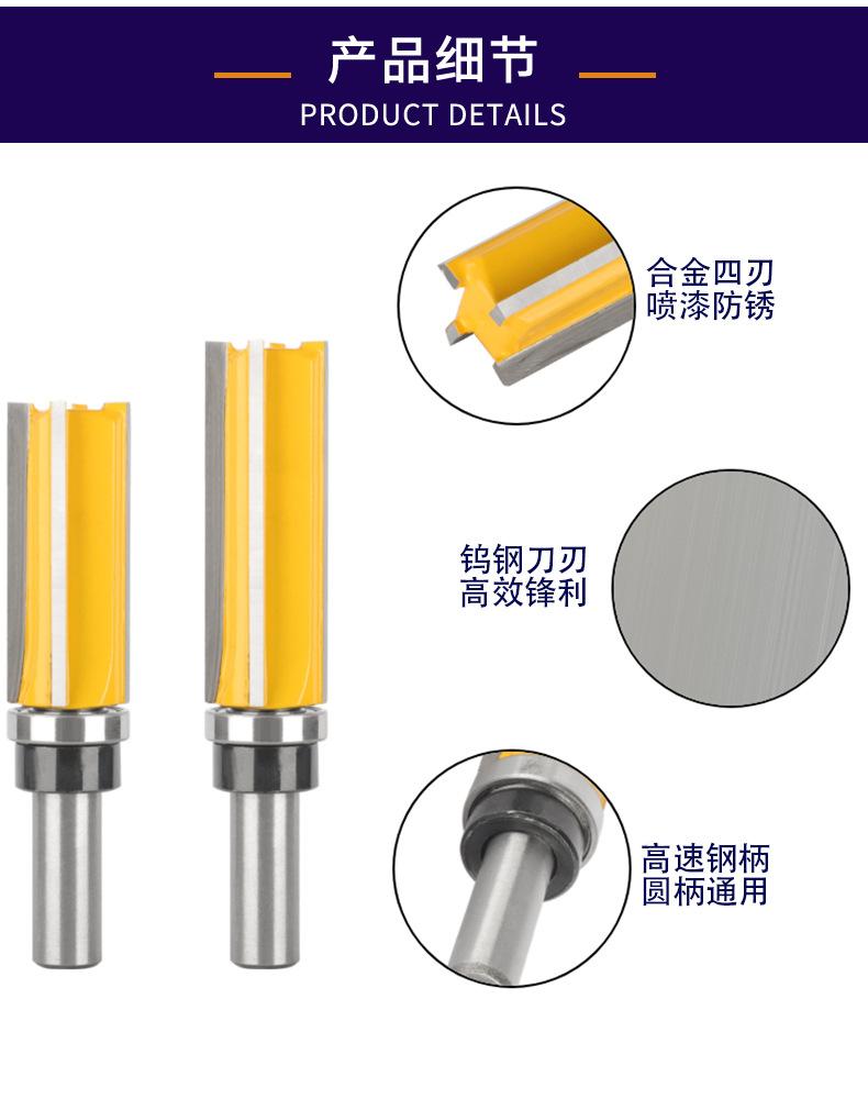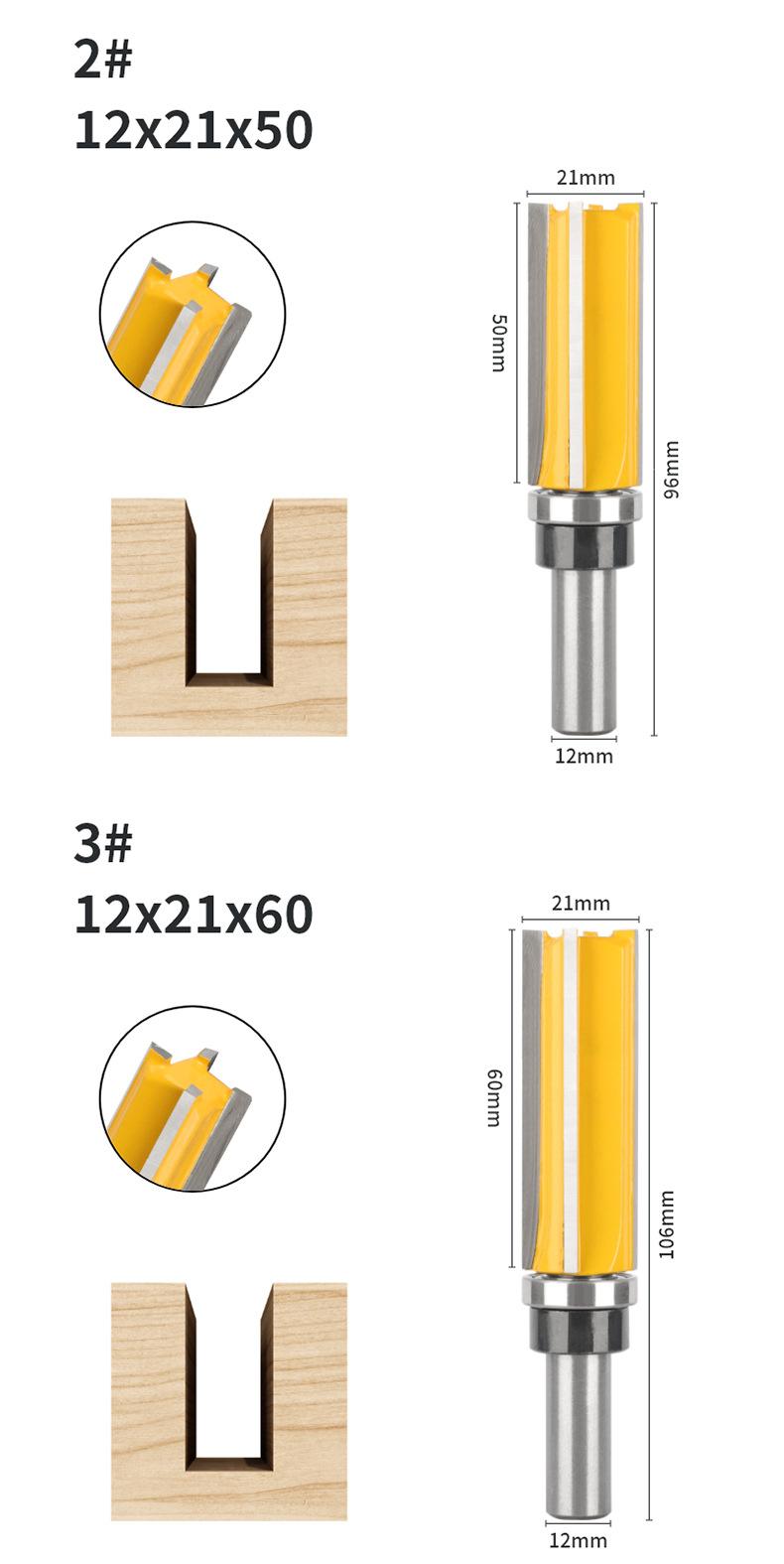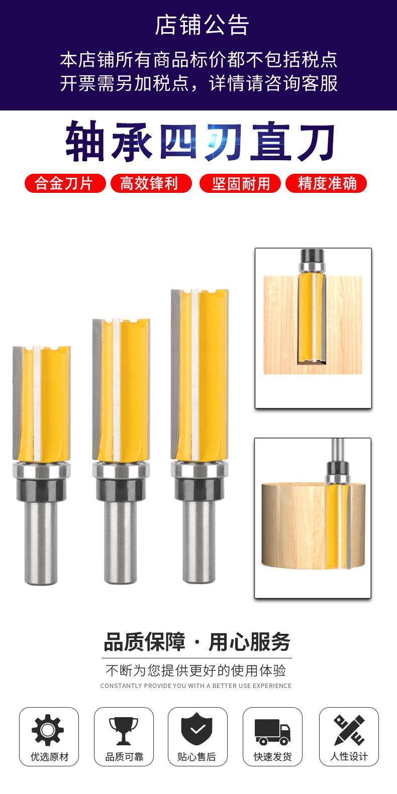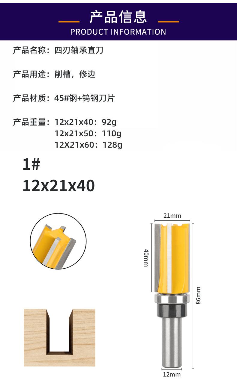 Cuchilla Recta de Rodamiento de Cuatro Cuchillas Carburo Perfilado Recorte Ranurado de 4 Dientes con Rodamiento Juego de Cuchillas de Recorte Recto Fresa para Carpintería