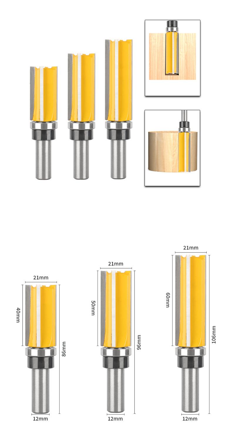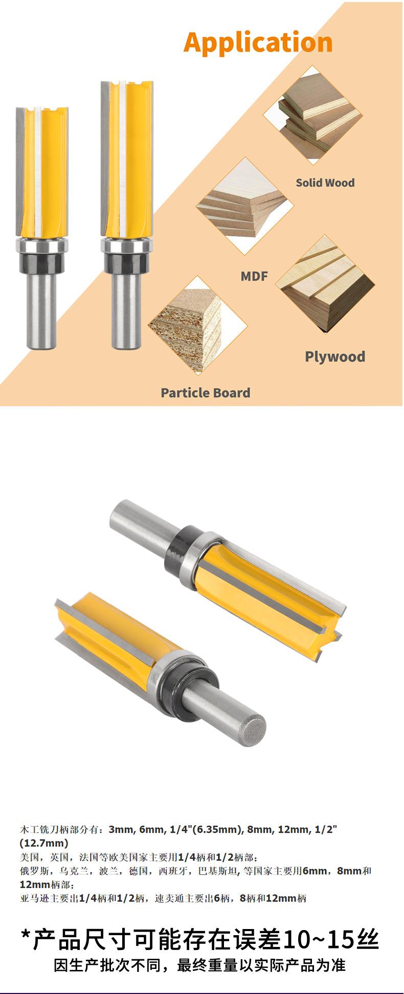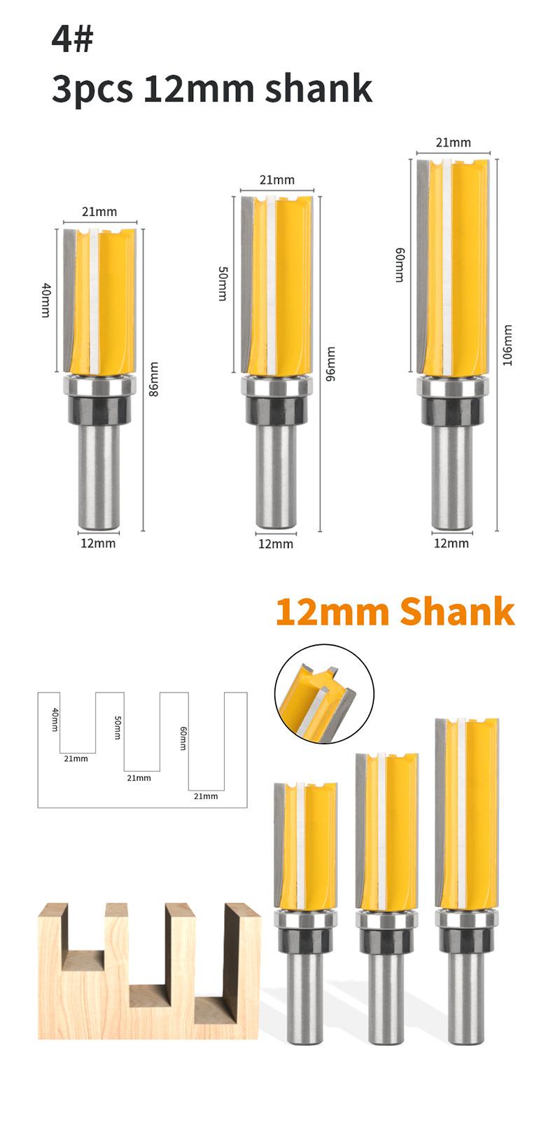 Cuchilla Recta de Rodamiento de Cuatro Cuchillas Carburo Perfilado Recorte Ranurado de 4 Dientes con Rodamiento Juego de Cuchillas de Recorte Recto Fresa para Carpintería