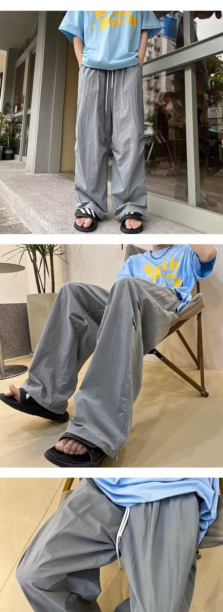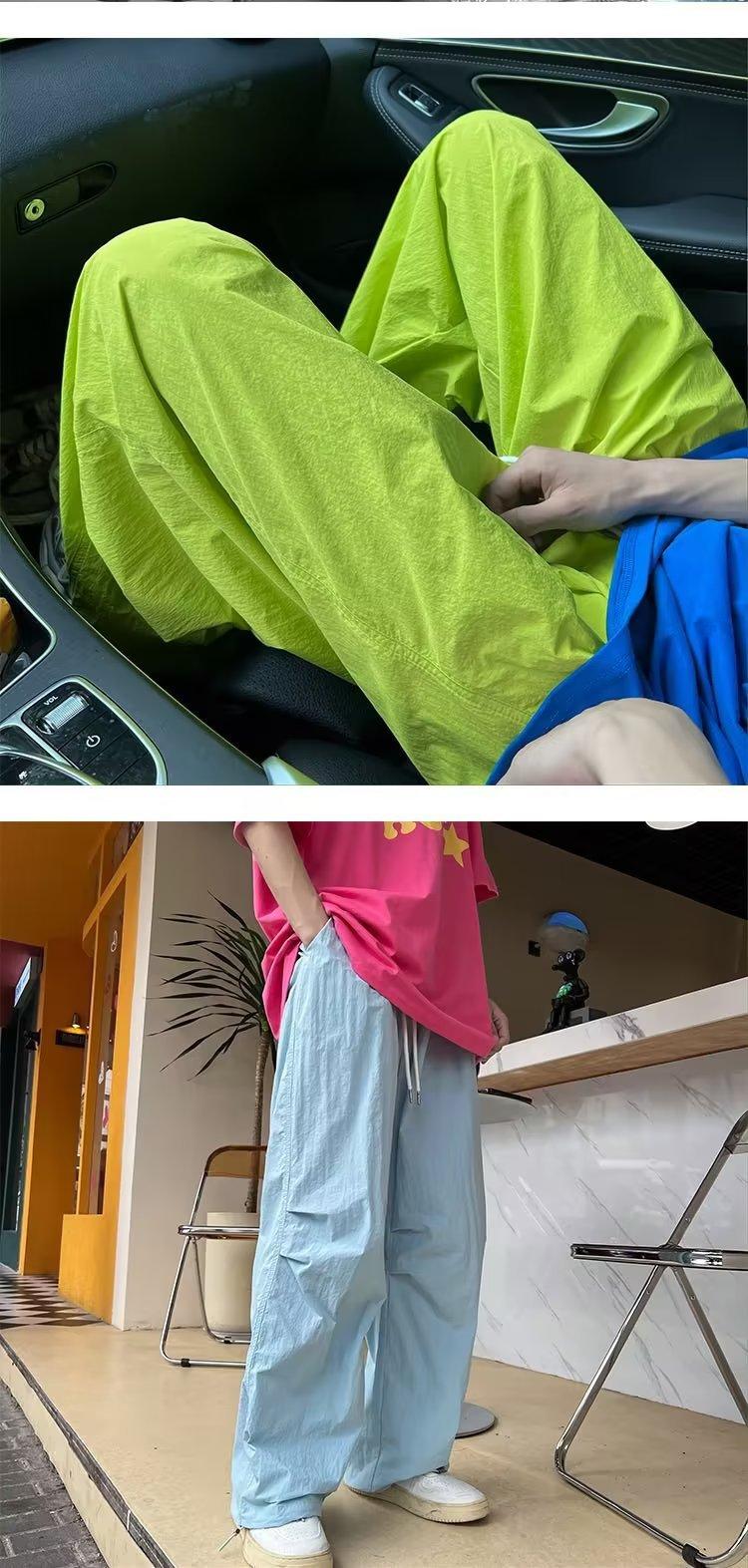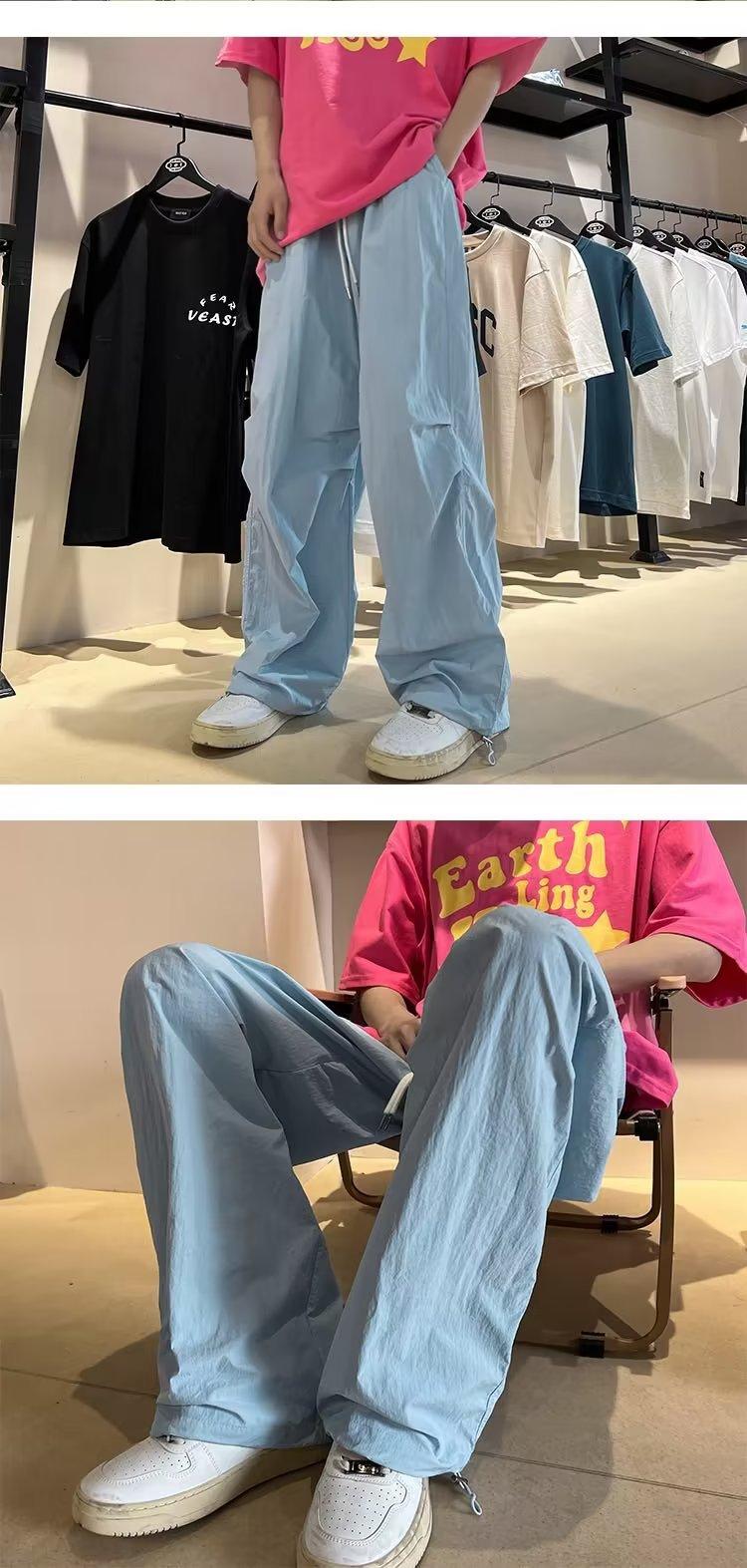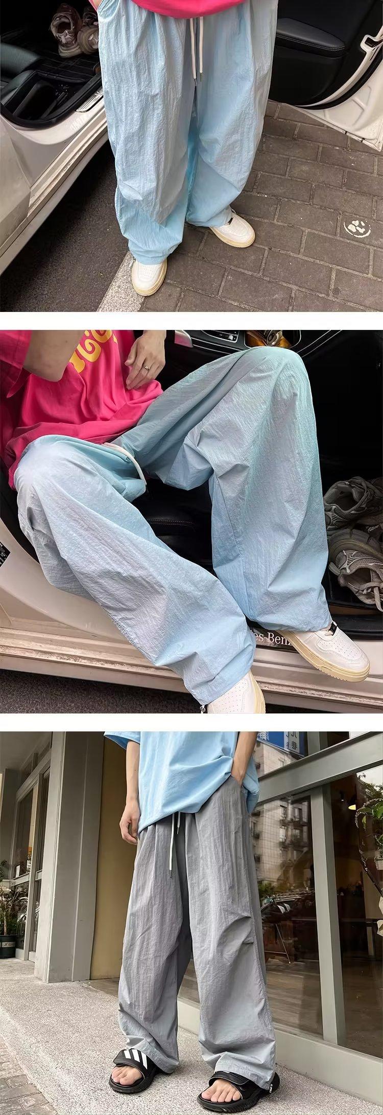 Pantalones holgados versátiles de verano y otoño en azul hielo, ligeros, de secado rápido, estilo paracaídas, para soldado, pantalones rectos casuales para parejas delgadas