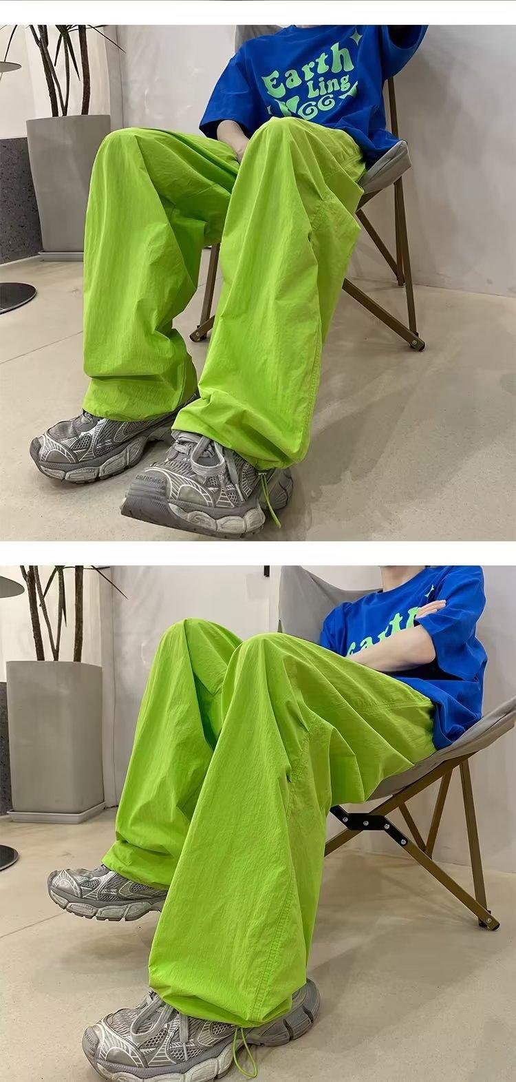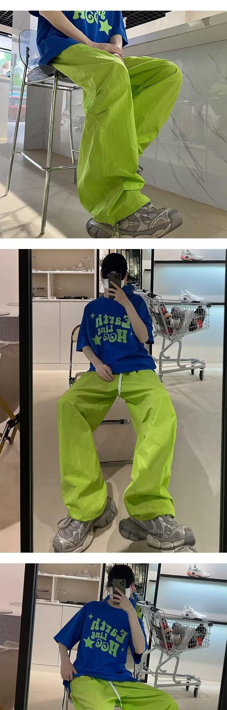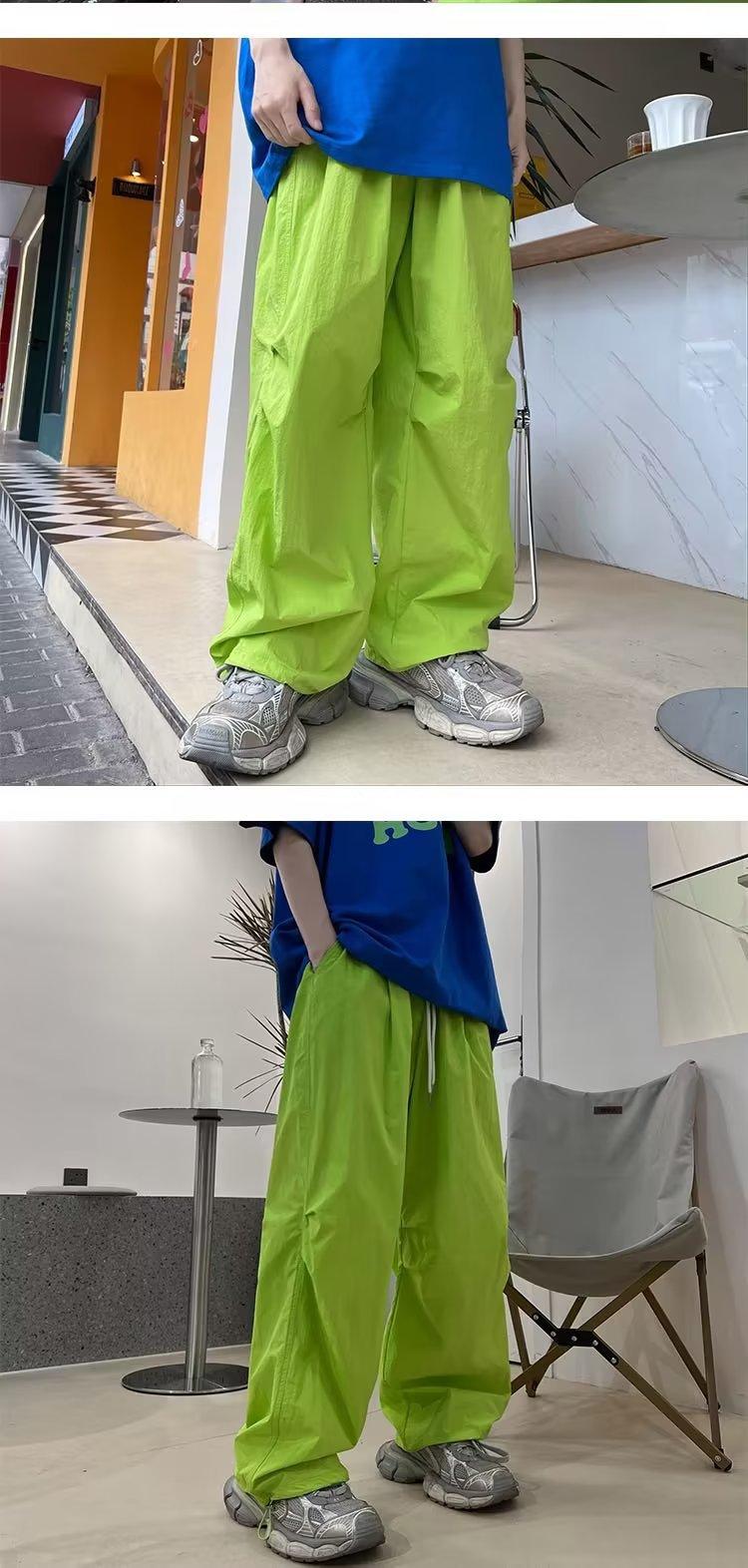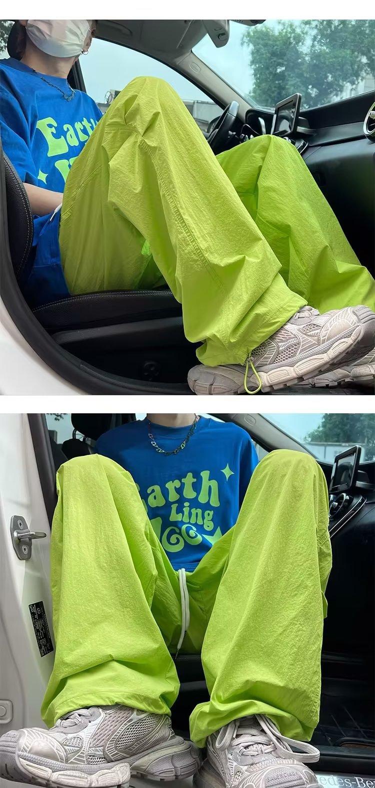 Pantalones holgados versátiles de verano y otoño en azul hielo, ligeros, de secado rápido, estilo paracaídas, para soldado, pantalones rectos casuales para parejas delgadas