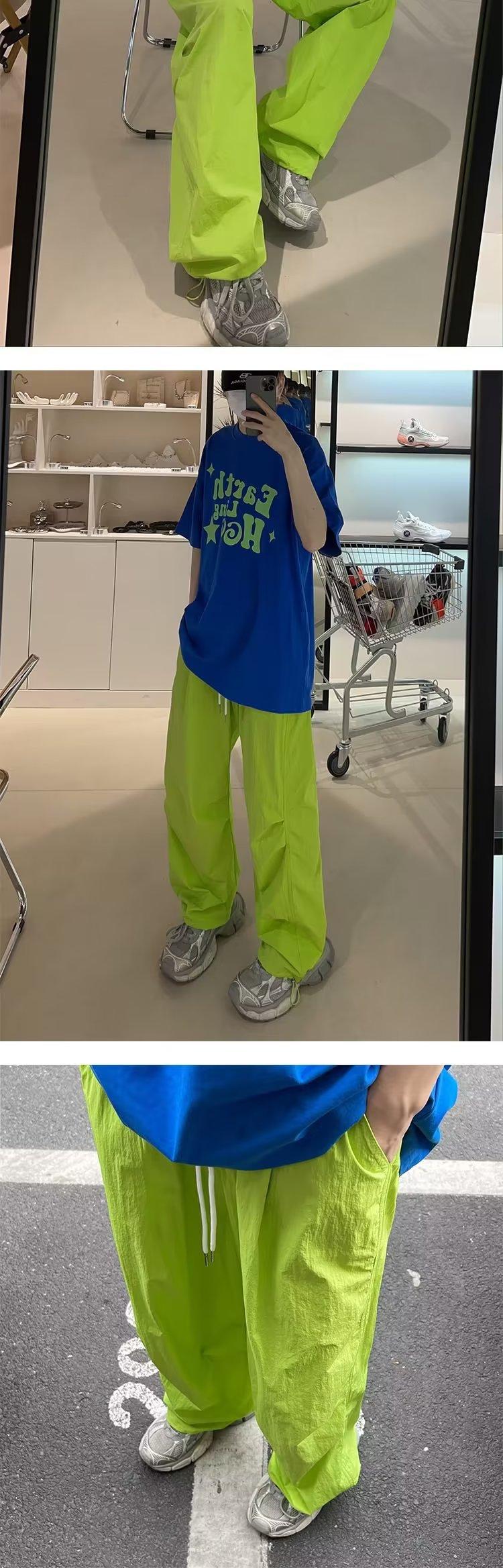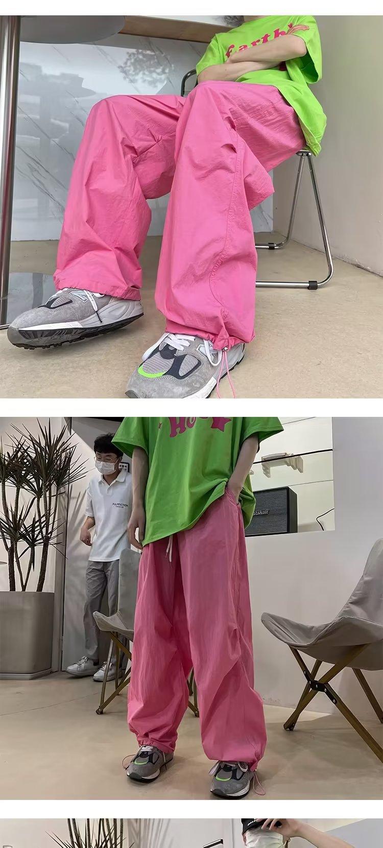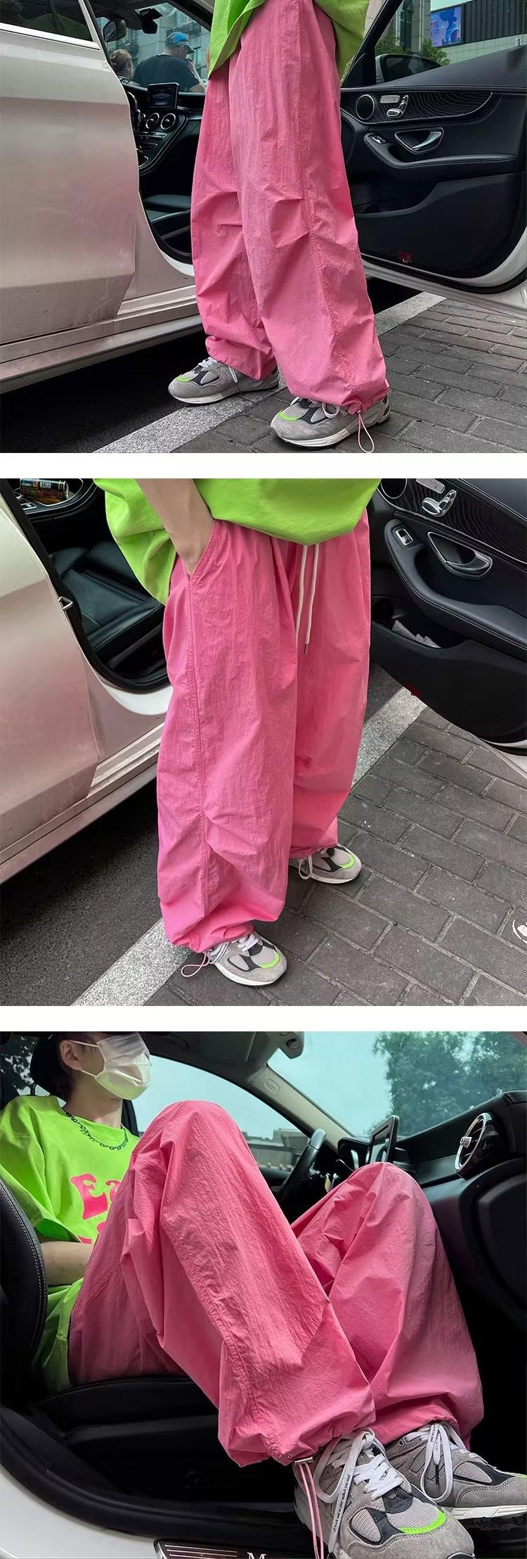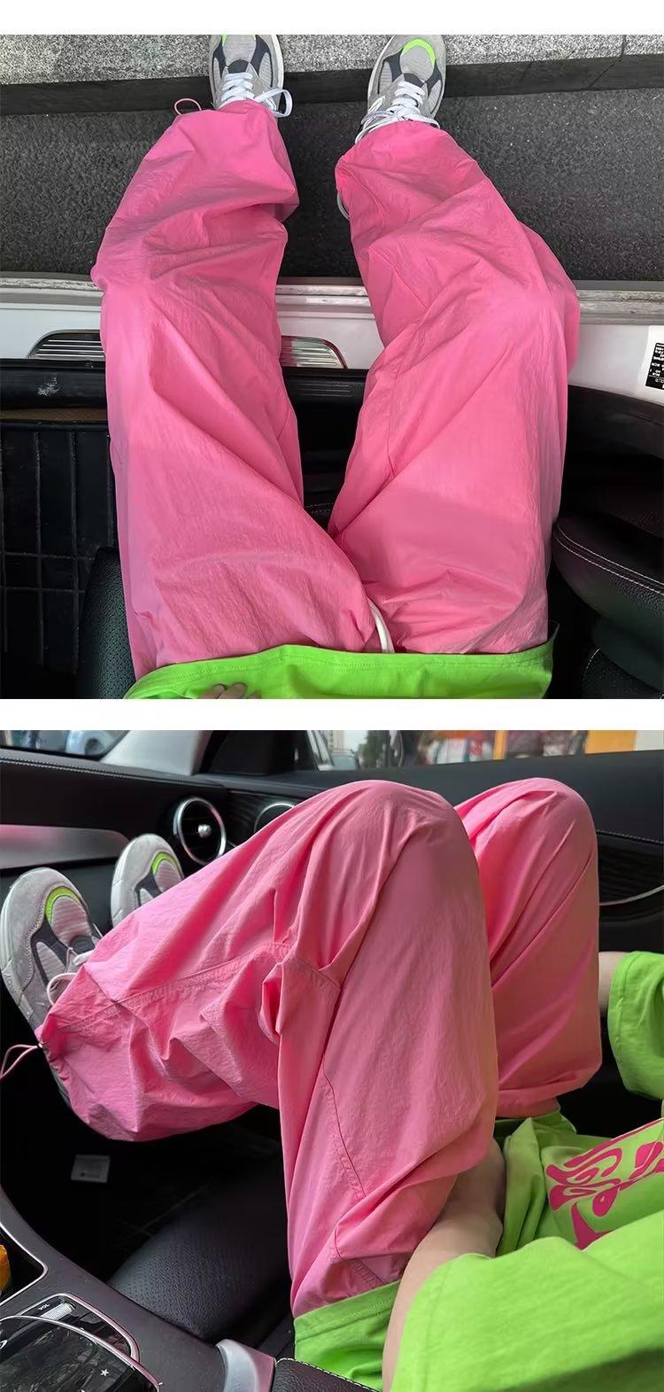 Pantalones holgados versátiles de verano y otoño en azul hielo, ligeros, de secado rápido, estilo paracaídas, para soldado, pantalones rectos casuales para parejas delgadas