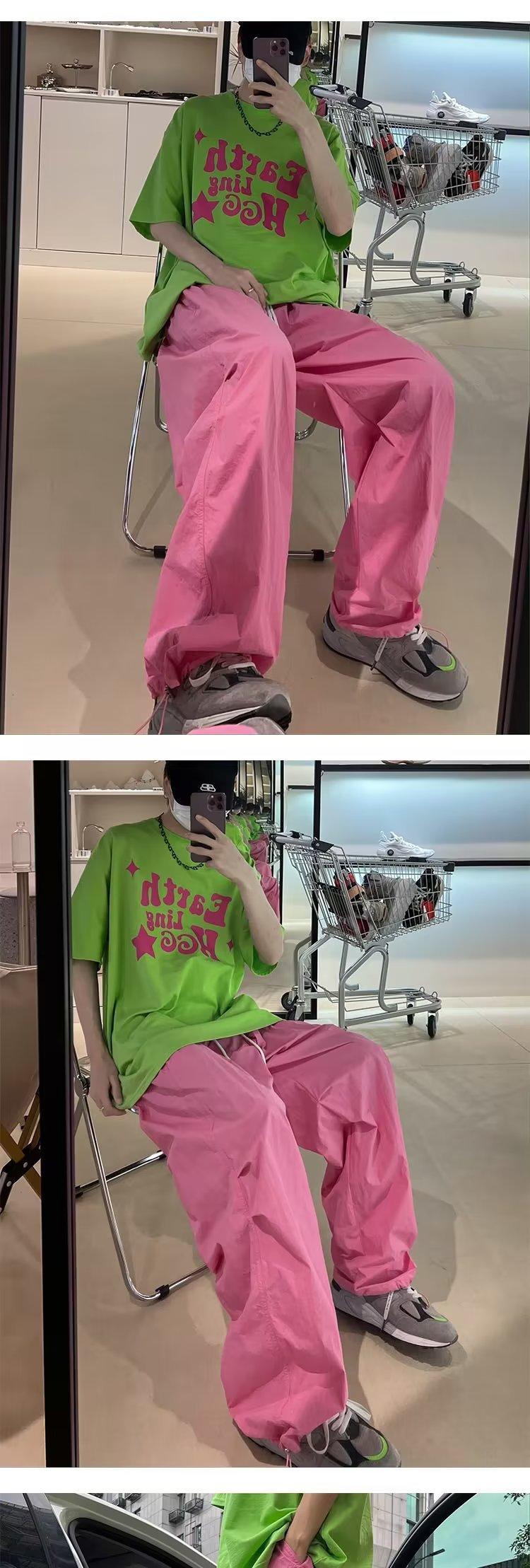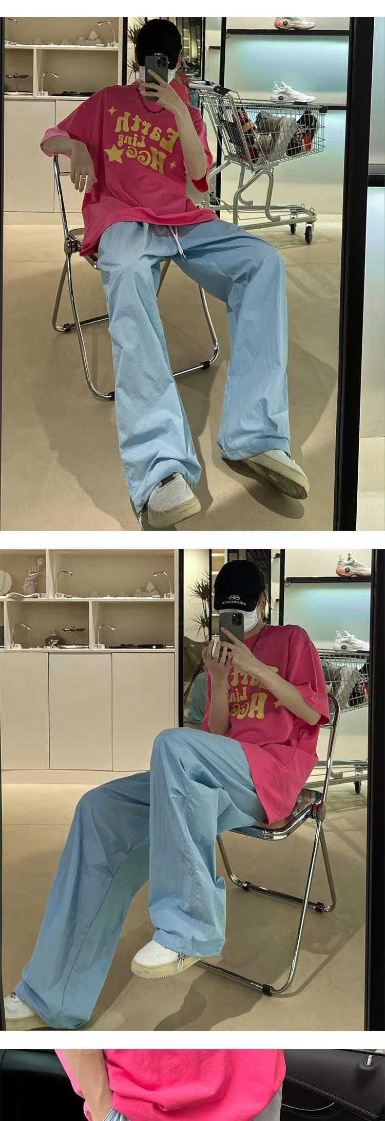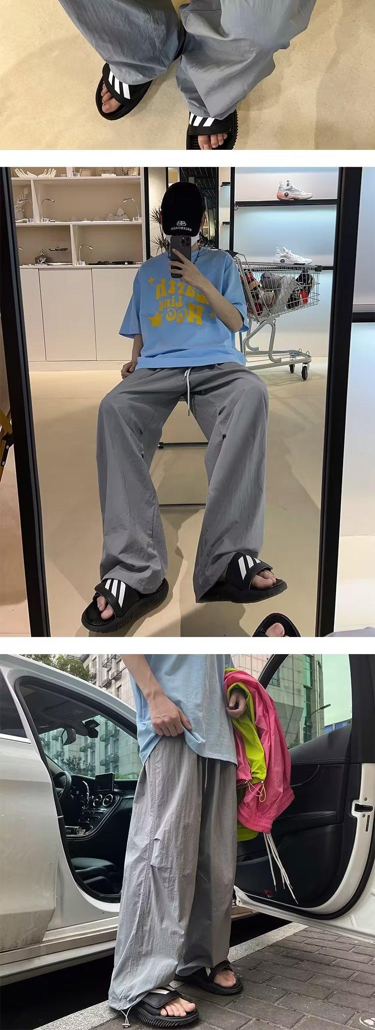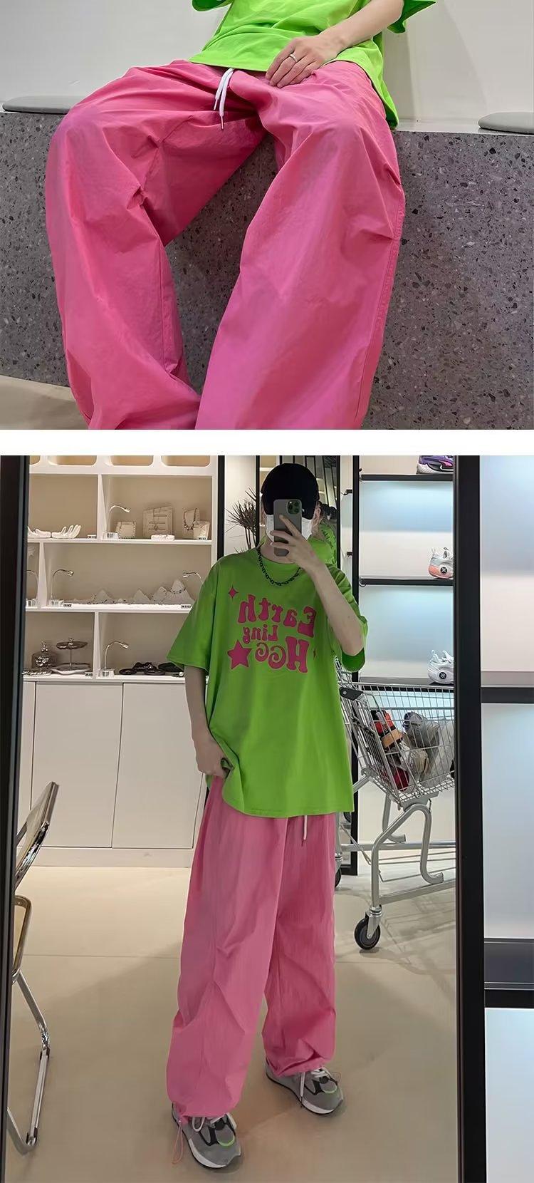 Pantalones holgados versátiles de verano y otoño en azul hielo, ligeros, de secado rápido, estilo paracaídas, para soldado, pantalones rectos casuales para parejas delgadas