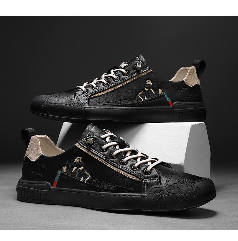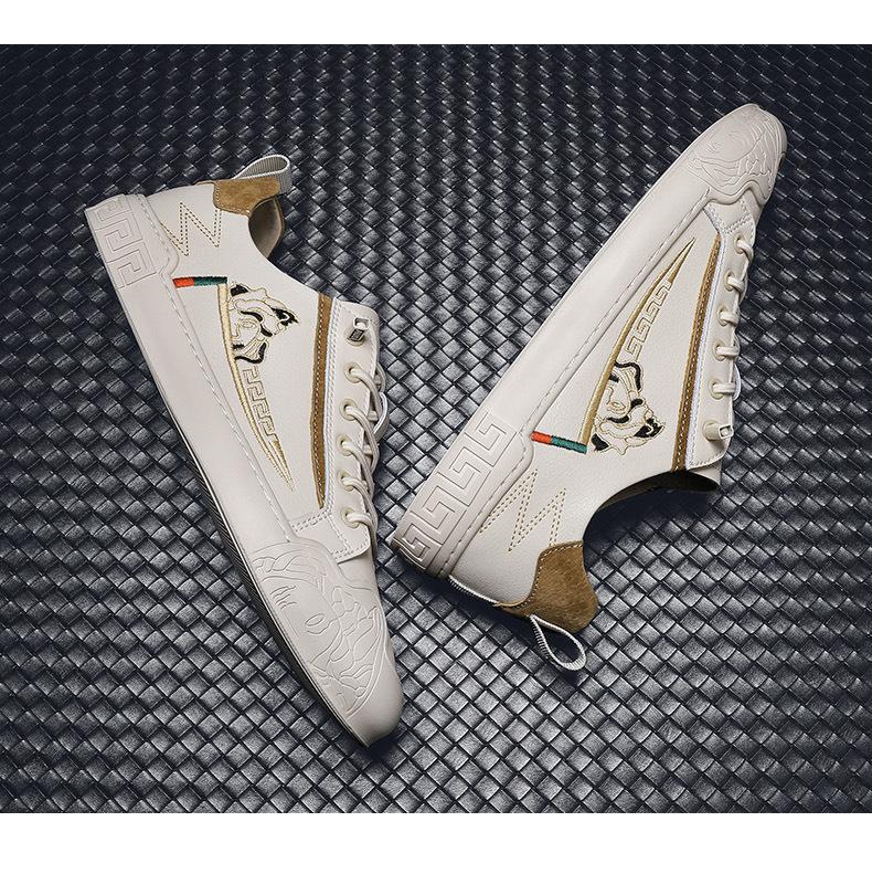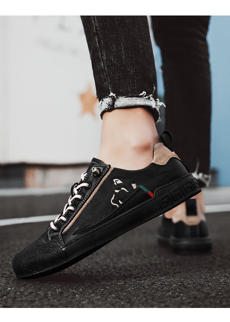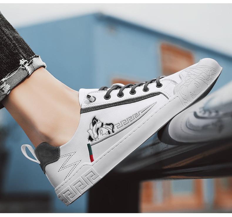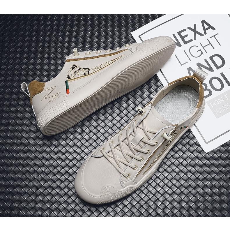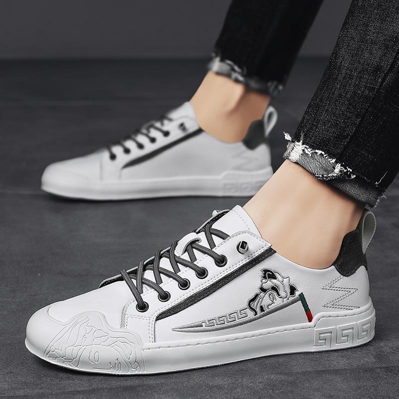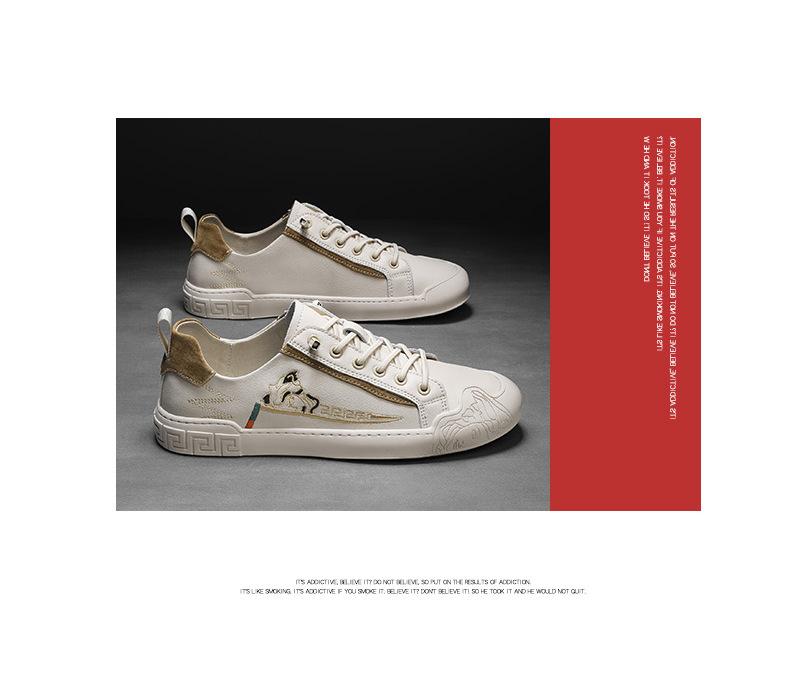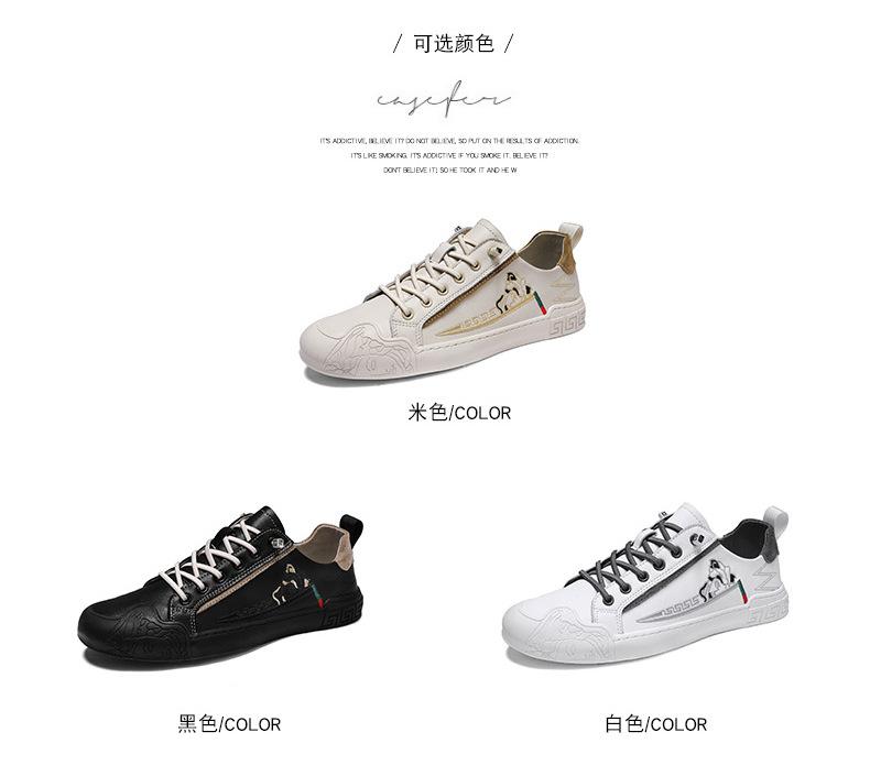 Zapatos casuales de moda para hombre, blancos, de cuero, versátiles, transpirables, para jóvenes, para las cuatro estaciones, de cuero genuino, sin cordones.