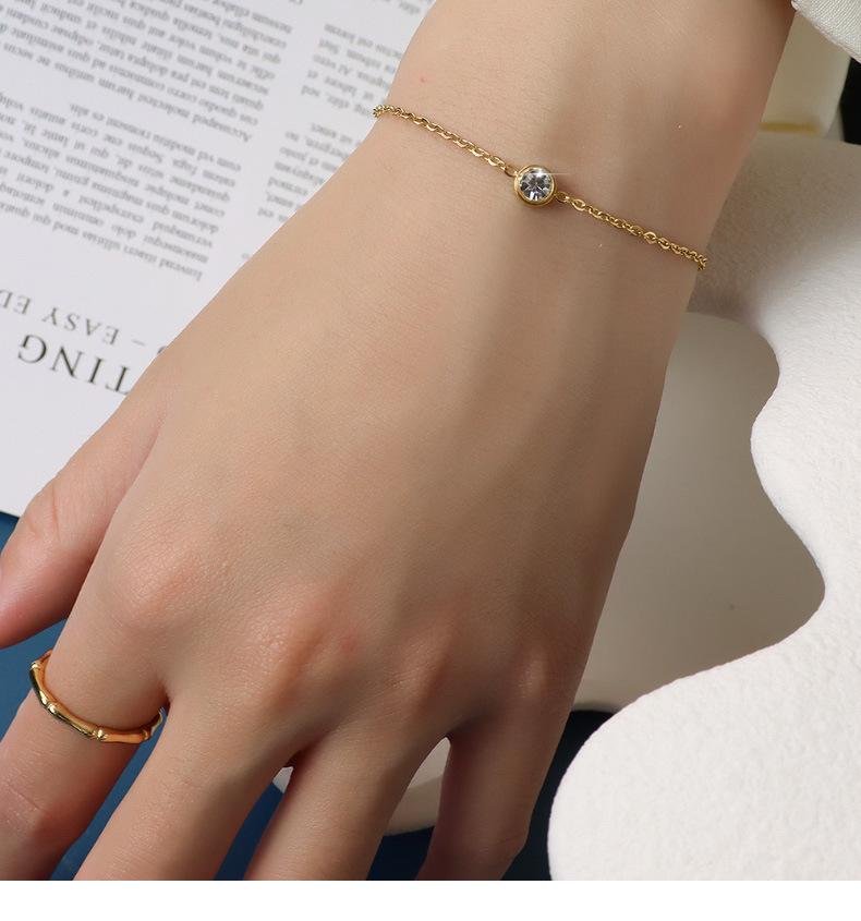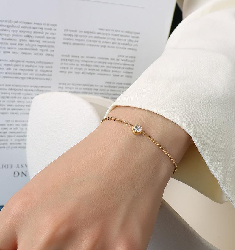 E022 steel color single diamond bracelet 15 5cm