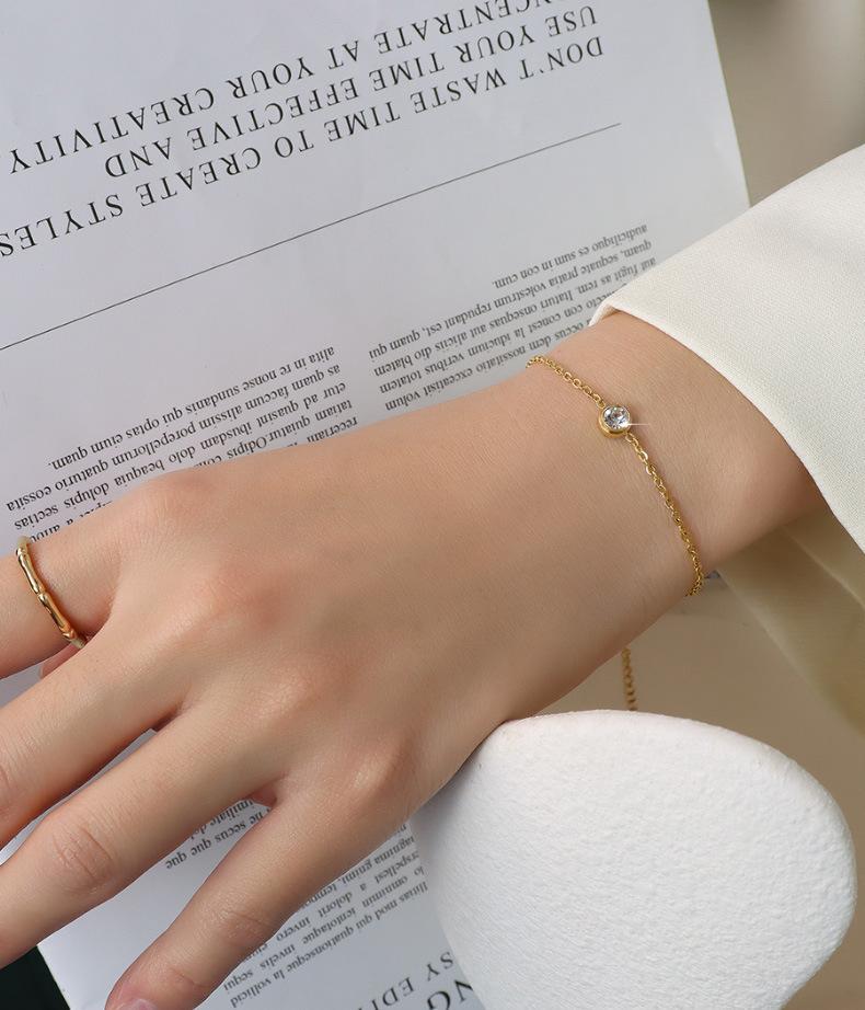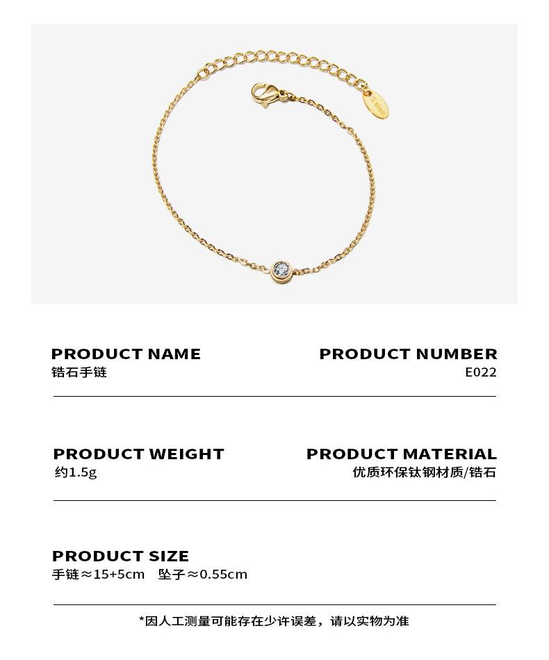E022 rose gold single diamond bracelet 15 5cm, E022 gold single diamond bracelet 15 5cm, E022 steel color sing...