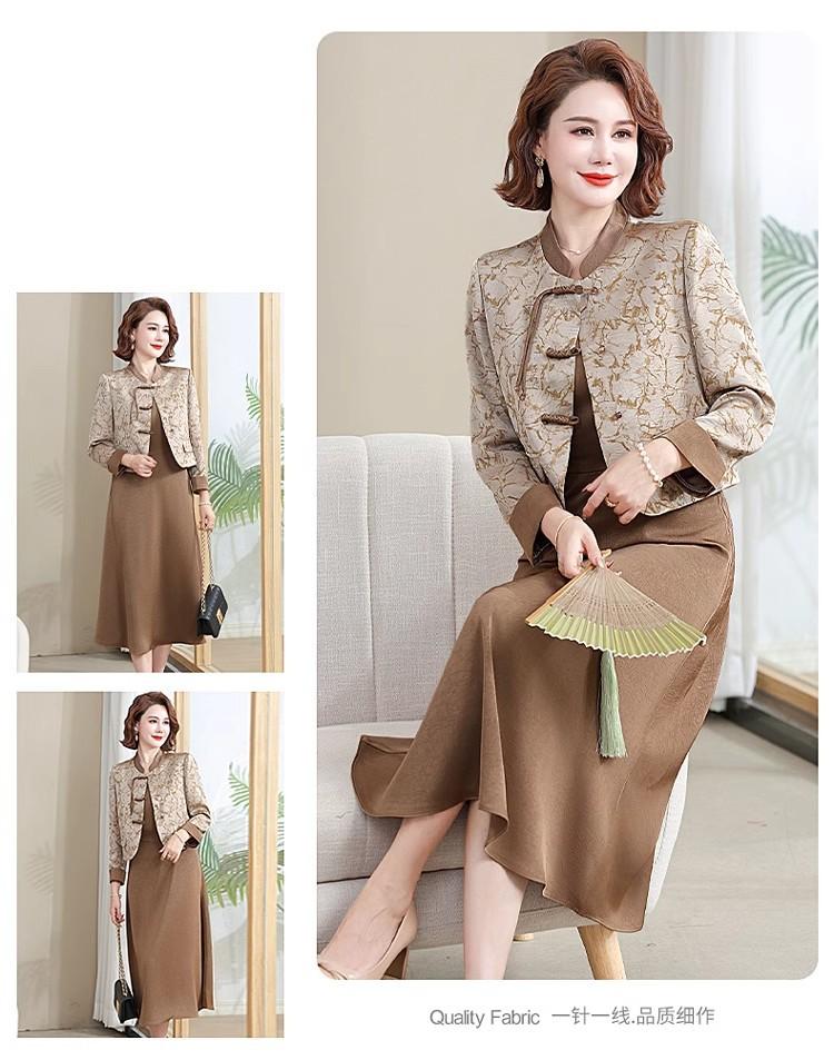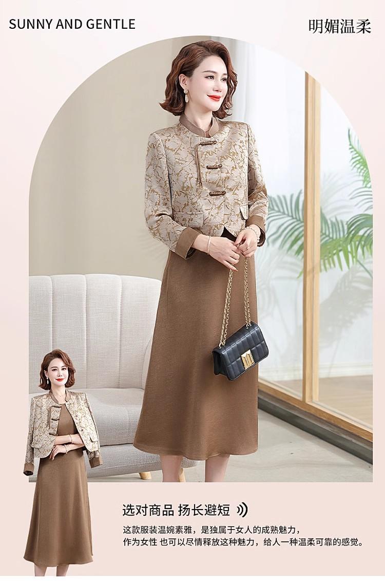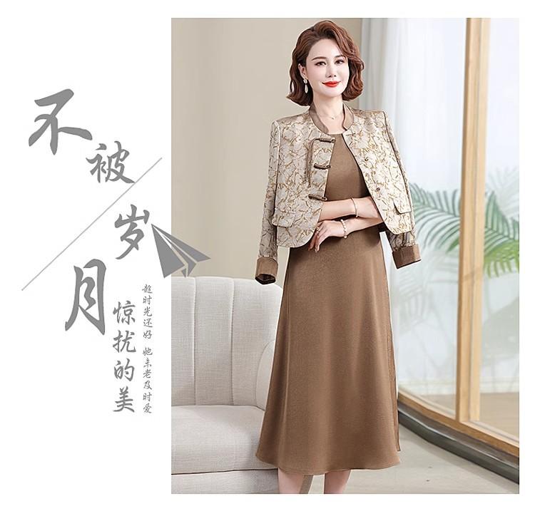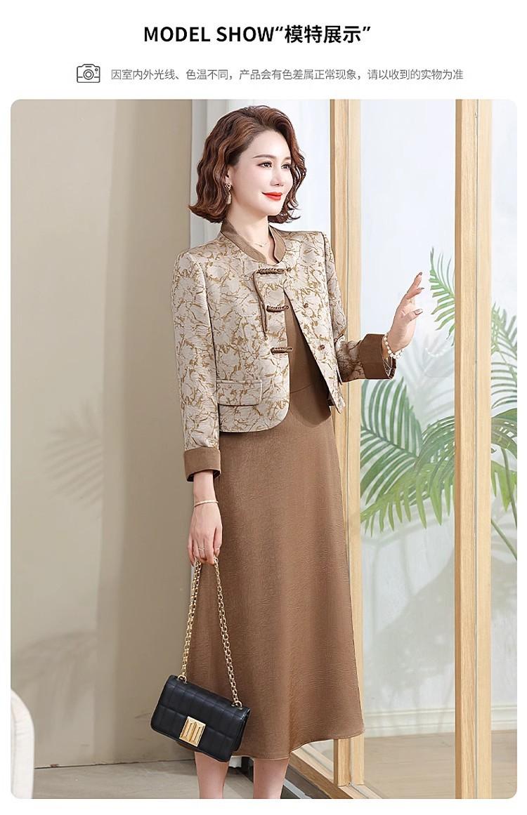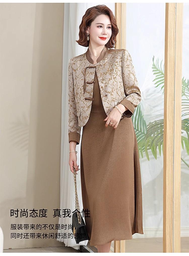 Traje de vestido largo de primavera y verano para madre de temperamento, abrigo corto para mujer de mediana edad, traje de dos piezas de primavera y otoño de mediana edad