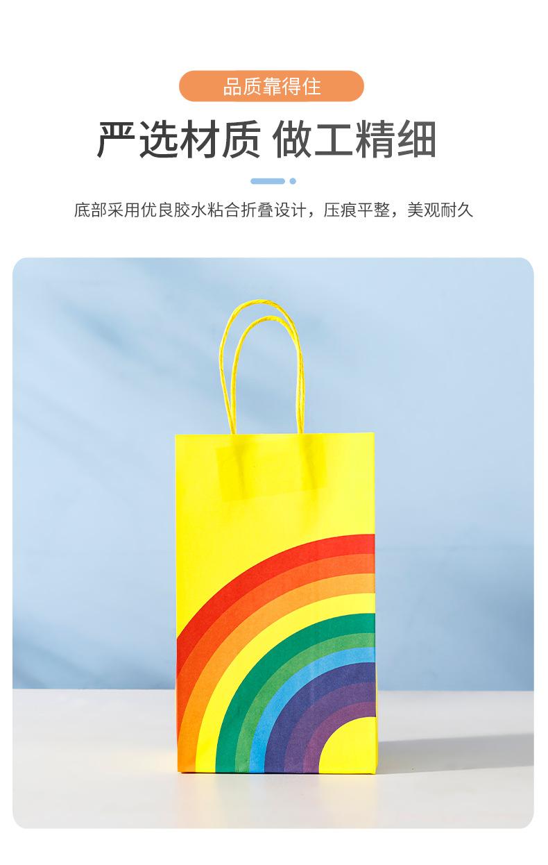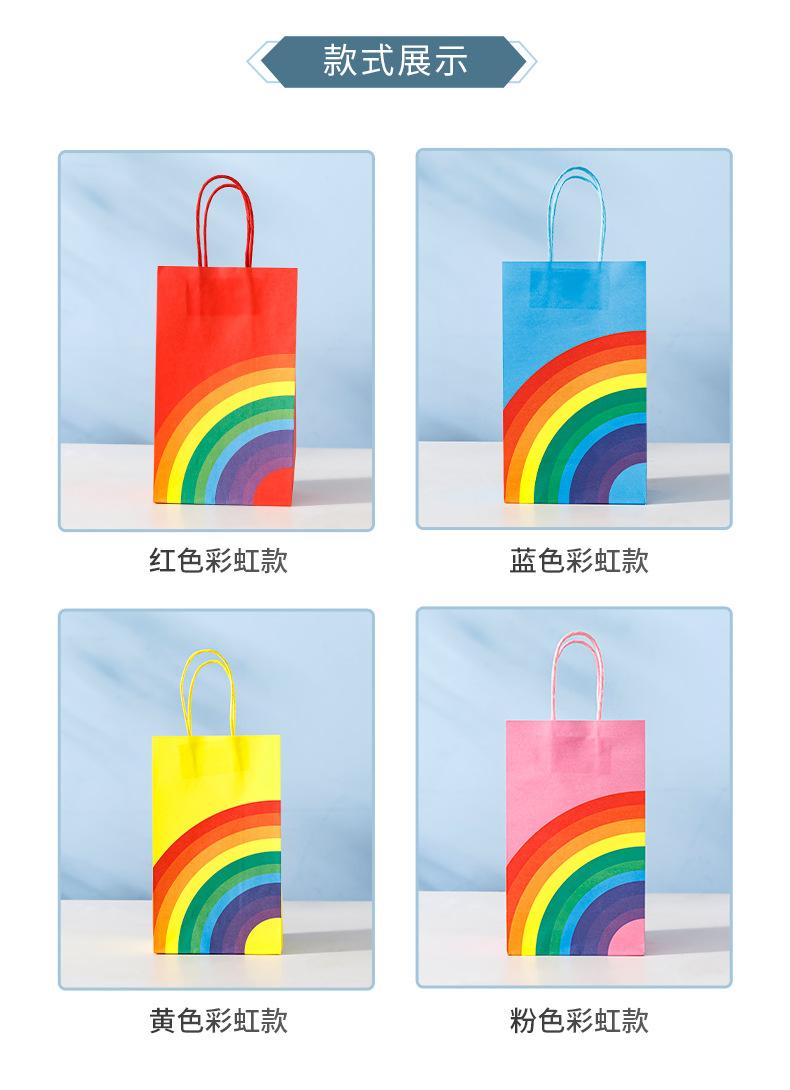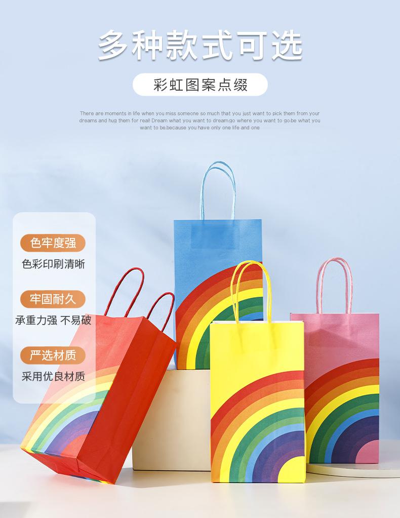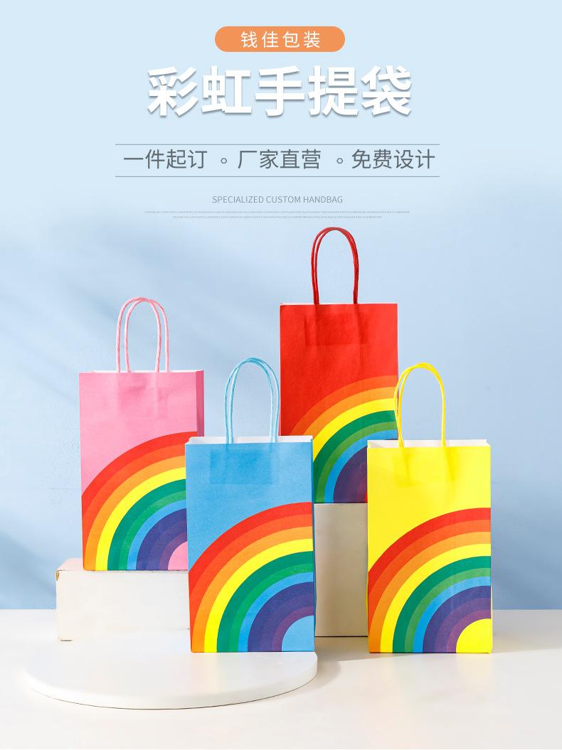 Bolsa de arcoíris portátil Spot, bolsa de papel kraft blanco con fondo cuadrado, bolsa de regalo para regalo de mano, bolsa de embalaje para regalo navideño, se puede imprimir el logotipo