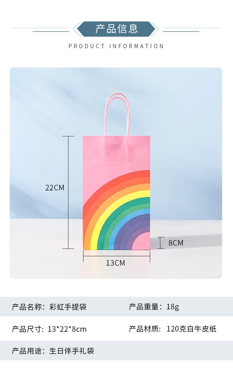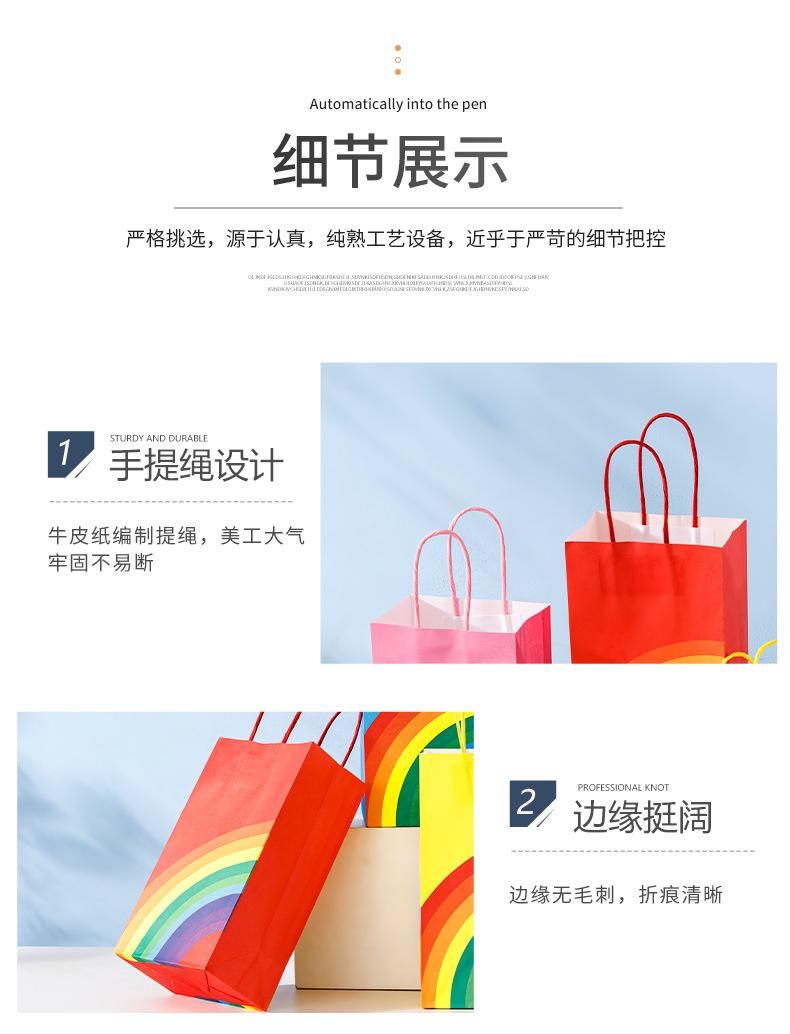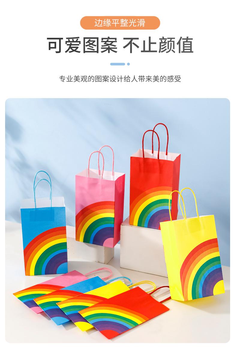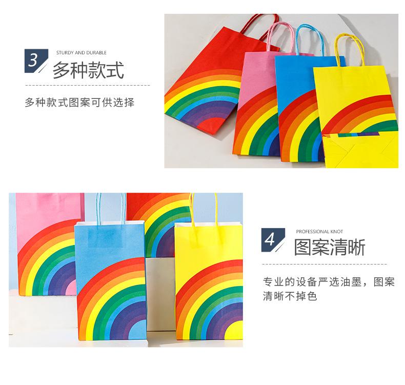 Bolsa de arcoíris portátil Spot, bolsa de papel kraft blanco con fondo cuadrado, bolsa de regalo para regalo de mano, bolsa de embalaje para regalo navideño, se puede imprimir el logotipo