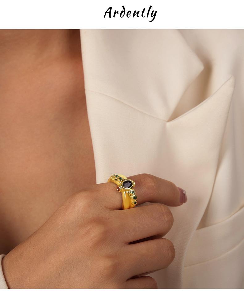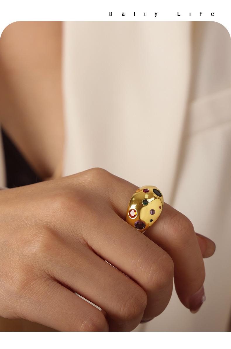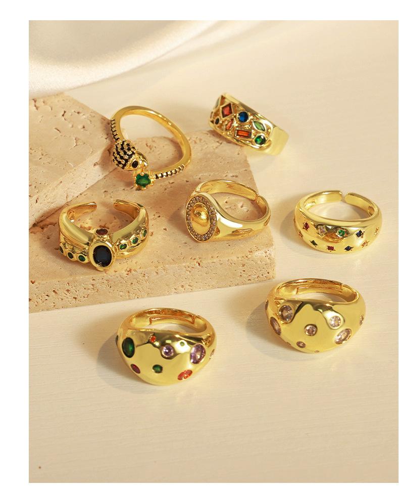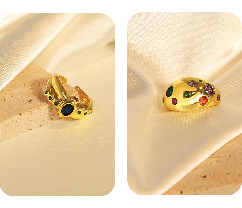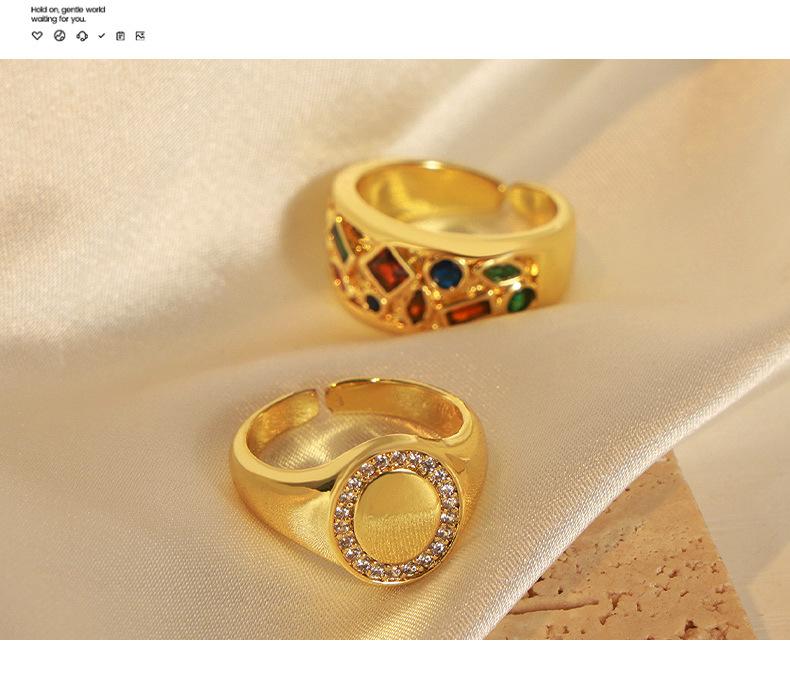 Ins estilo punk simple nicho joyería geométrica incrustada diseño de circón de color multicolor material de cobre anillo abierto