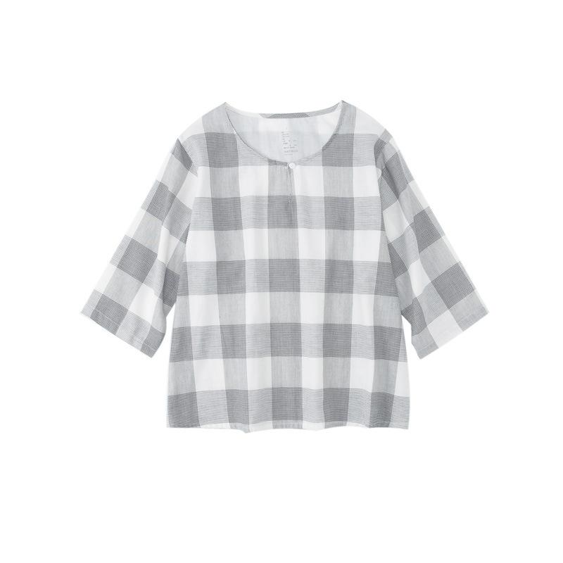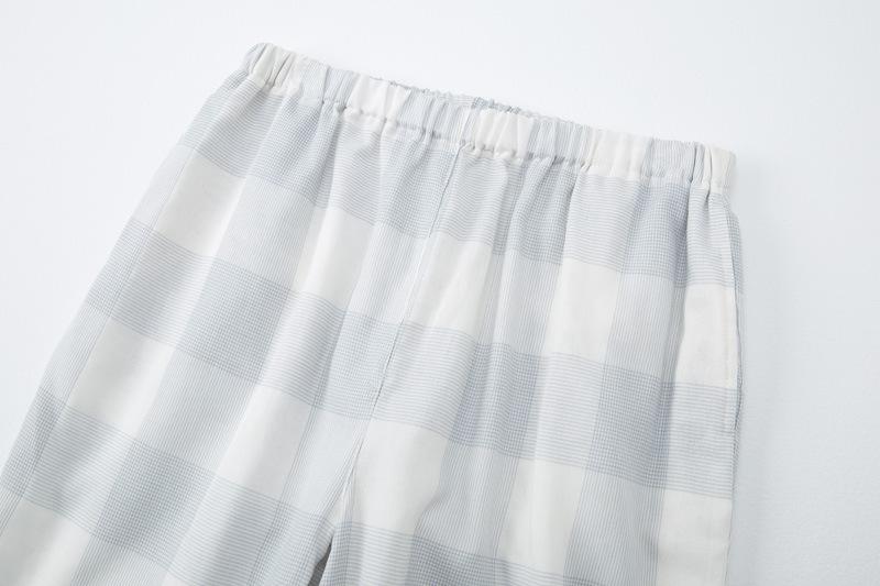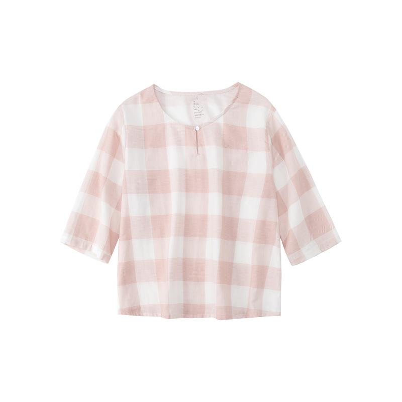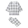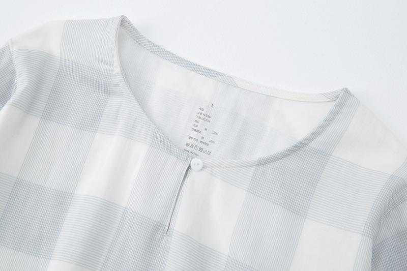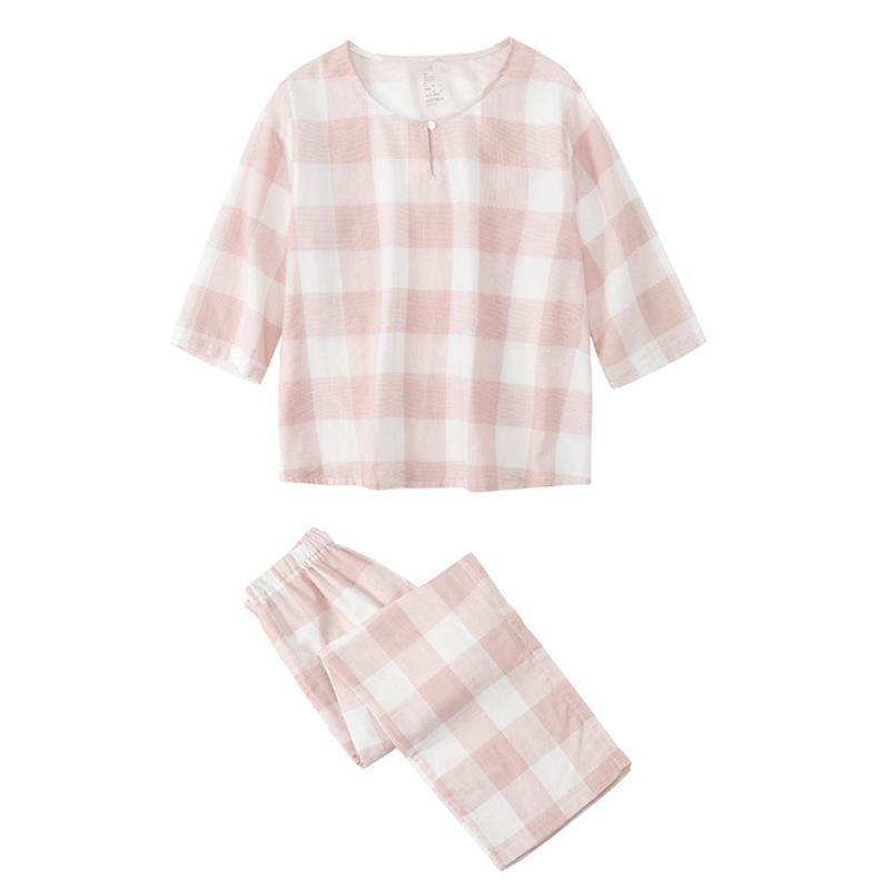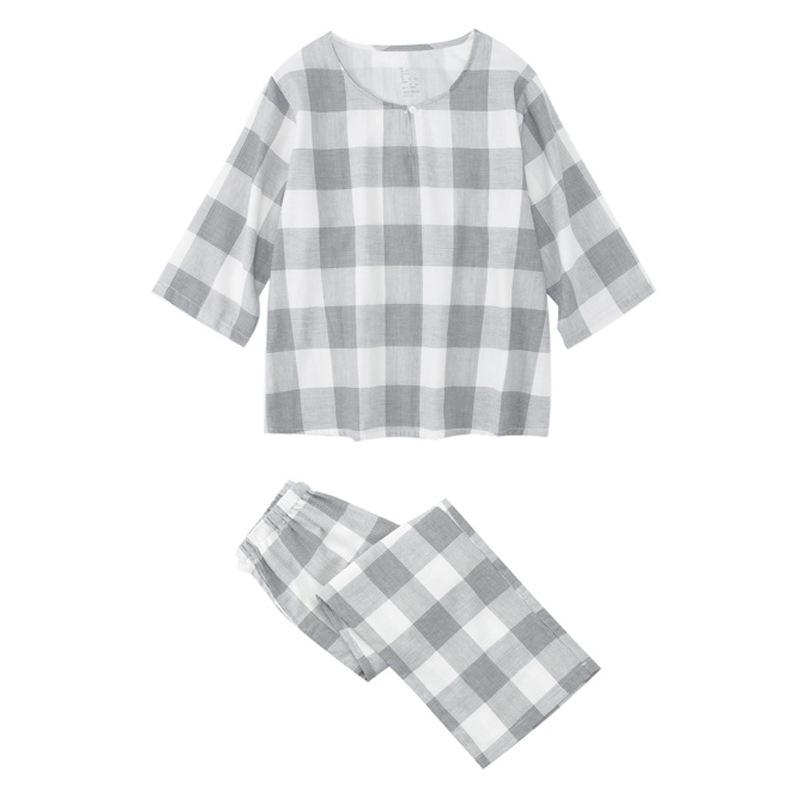 Pijama de algodón a cuadros estilo japonés Muji de doble capa con manga de siete puntos para mujer