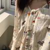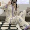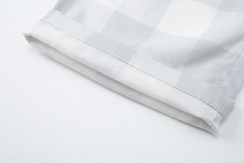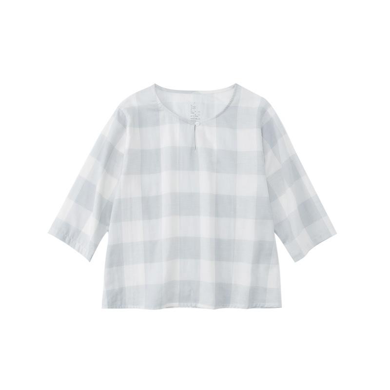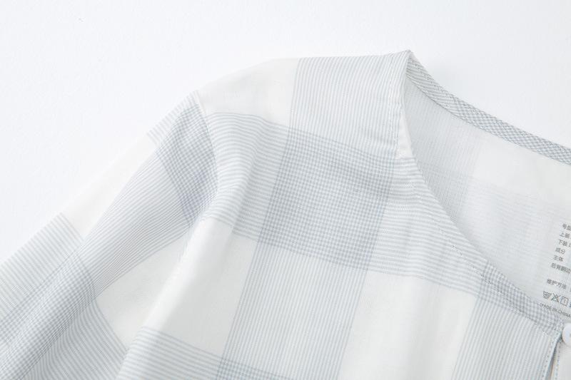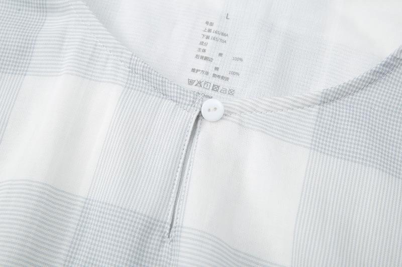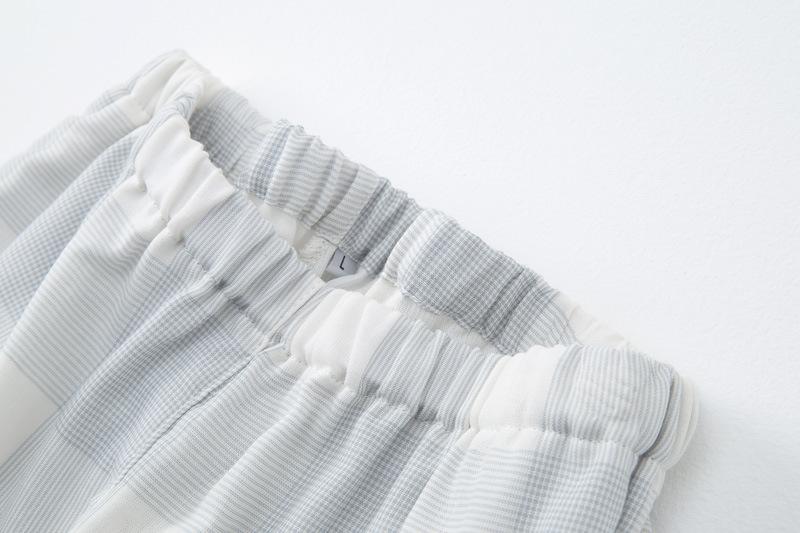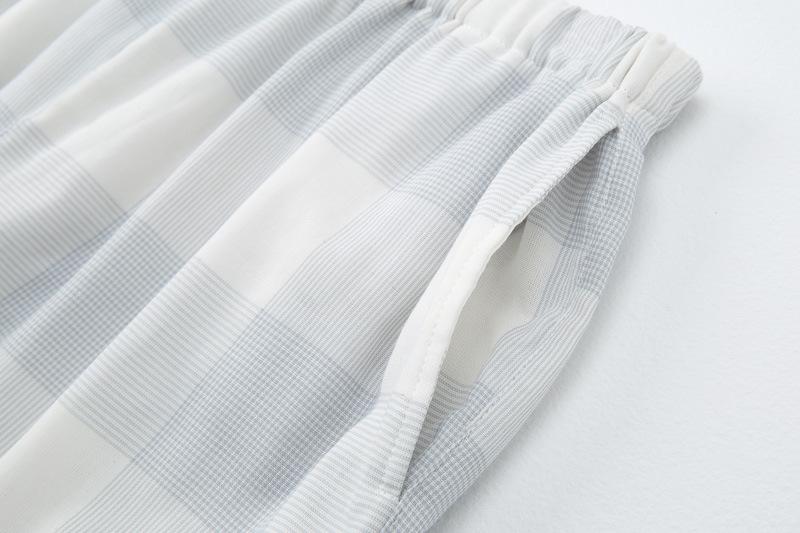 Pijama de algodón a cuadros estilo japonés Muji de doble capa con manga de siete puntos para mujer