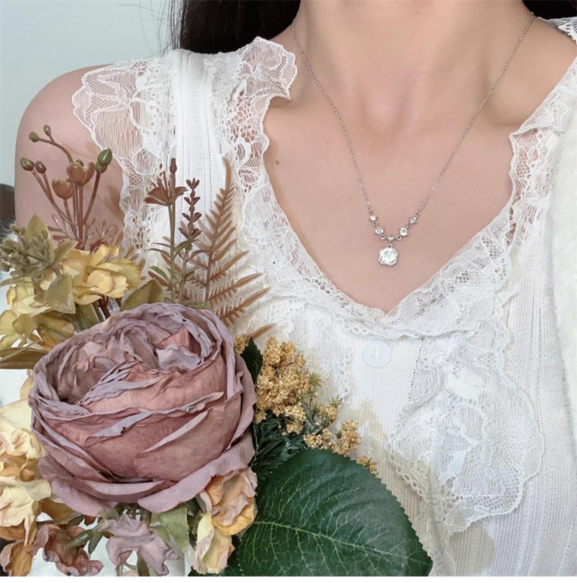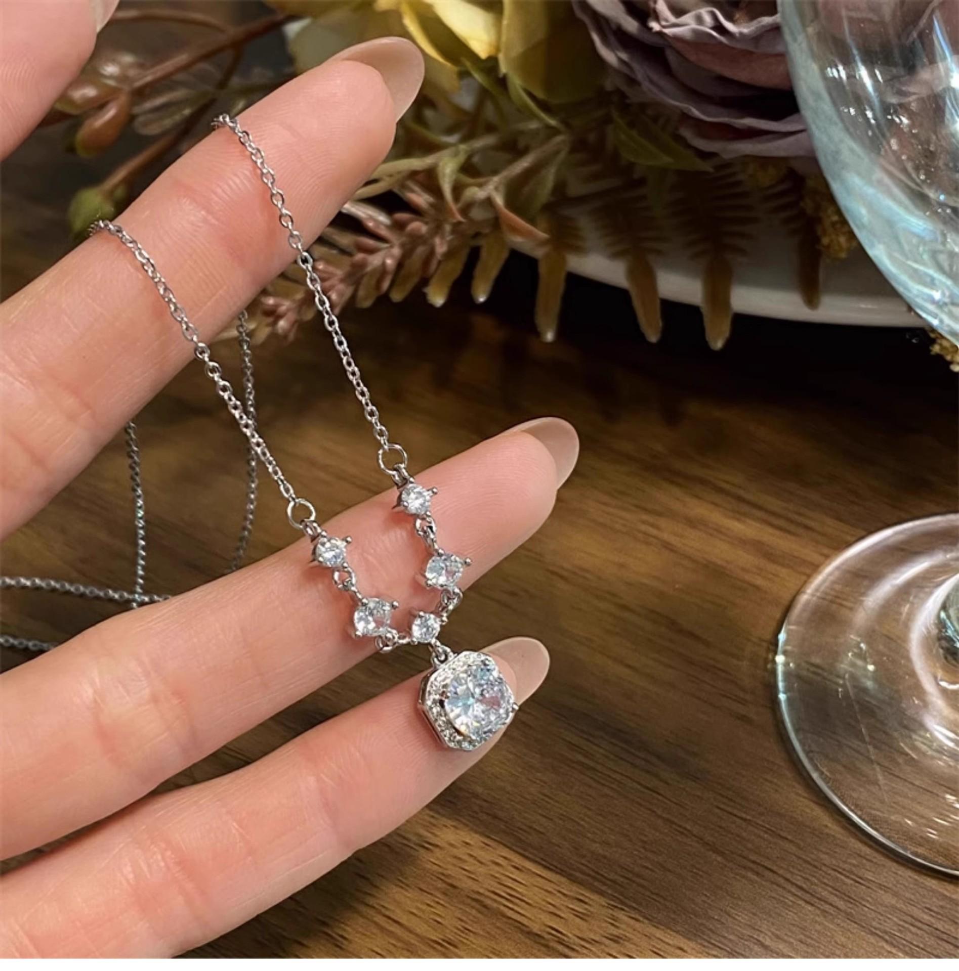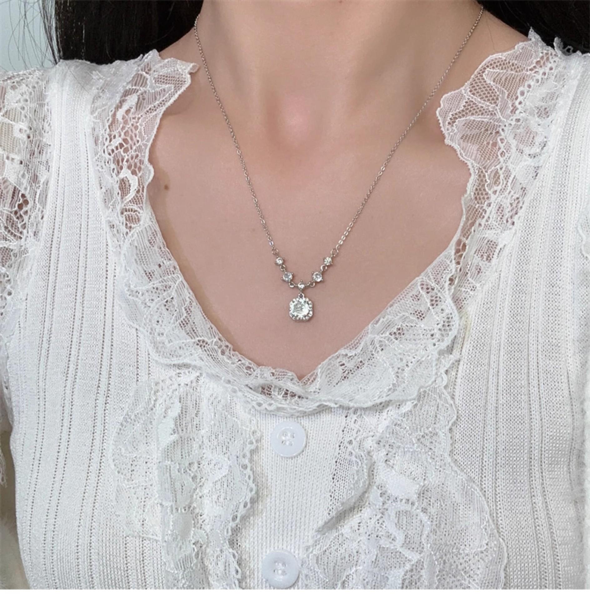 French white square diamond necklace