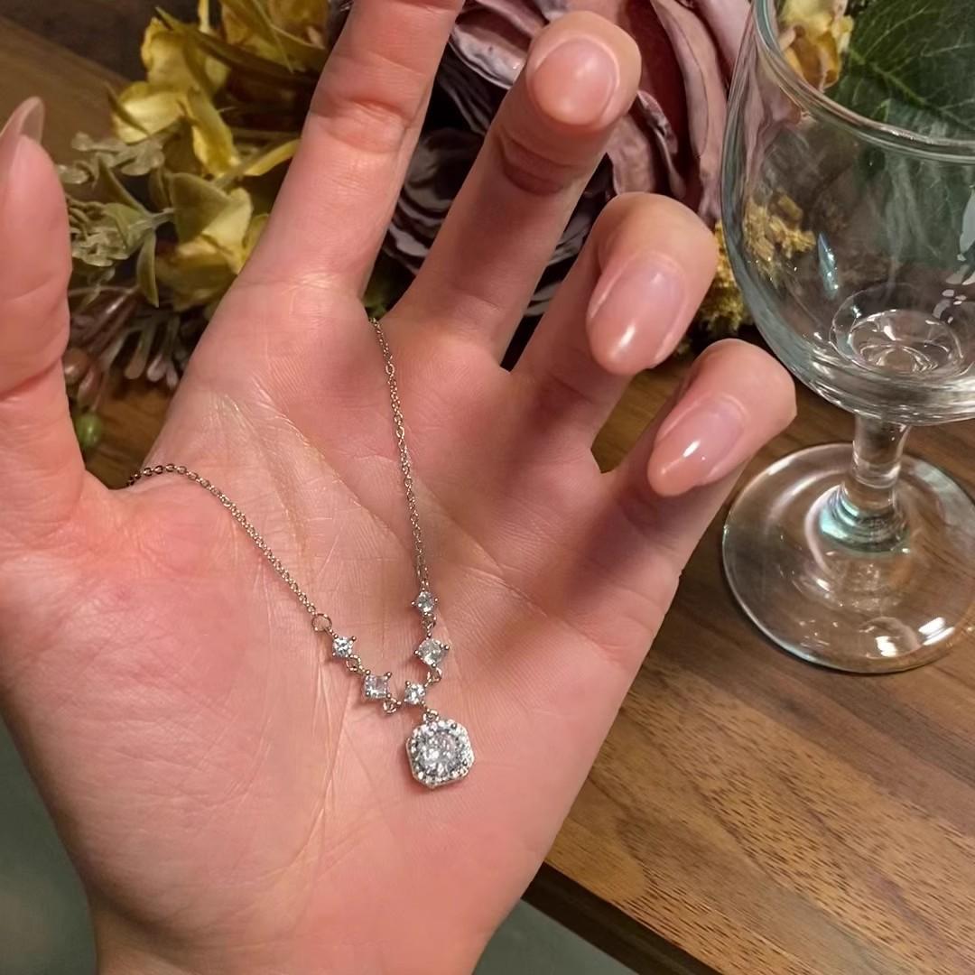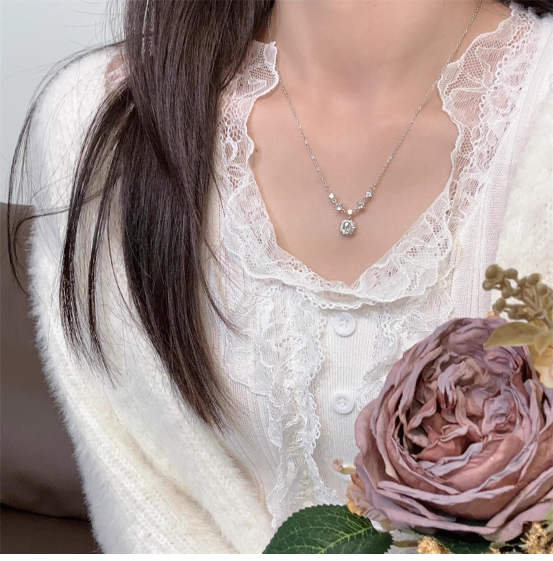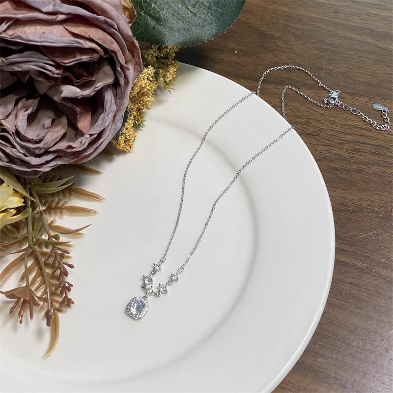 Nuevo collar de diamantes cuadrados con diamantes cuadrados de azúcar en oro blanco, estilo japonés y coreano, combina con todo, fresco, de lujo, ligero, para mujer, temperamento, otoño e invierno, cadena de suéter.