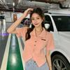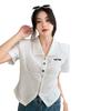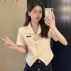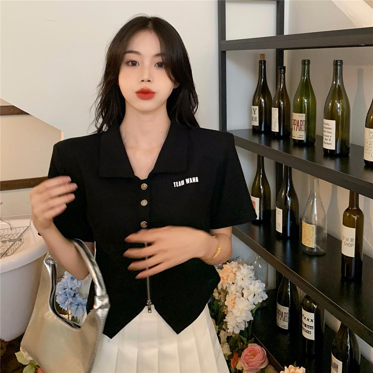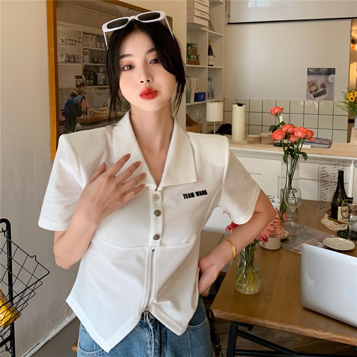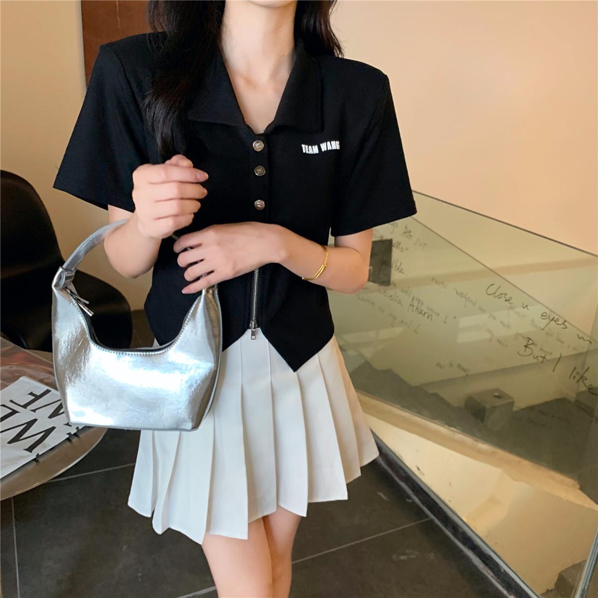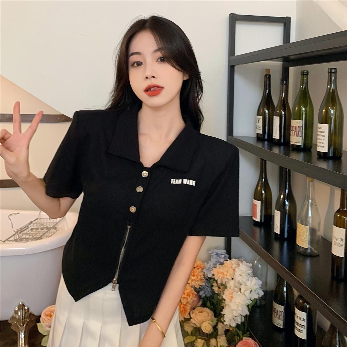 Camiseta de manga corta con cuello polo para mujer, diseño de nicho, irregular, de verano, holgada y adelgazante.