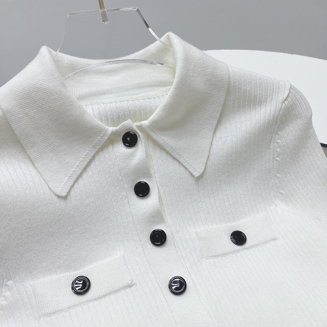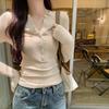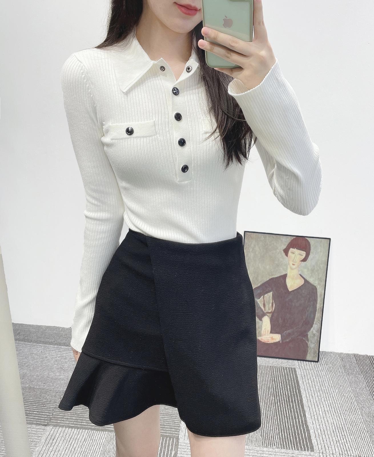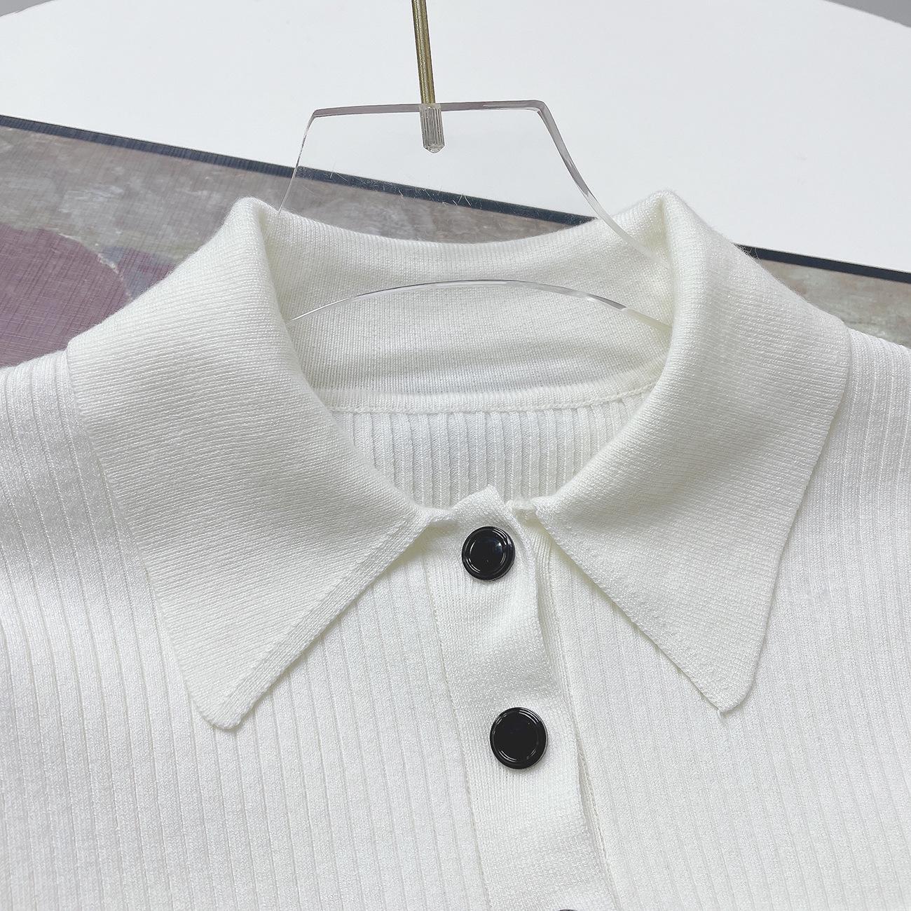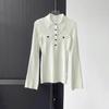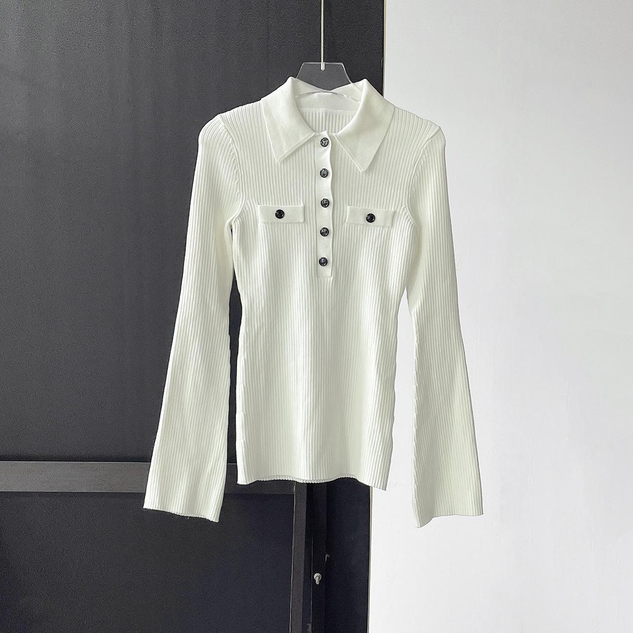 Suéter de Punto de Manga Larga con Botones para Mujer con Cuello Polo Francés y Manga Campana para Invierno 2024