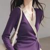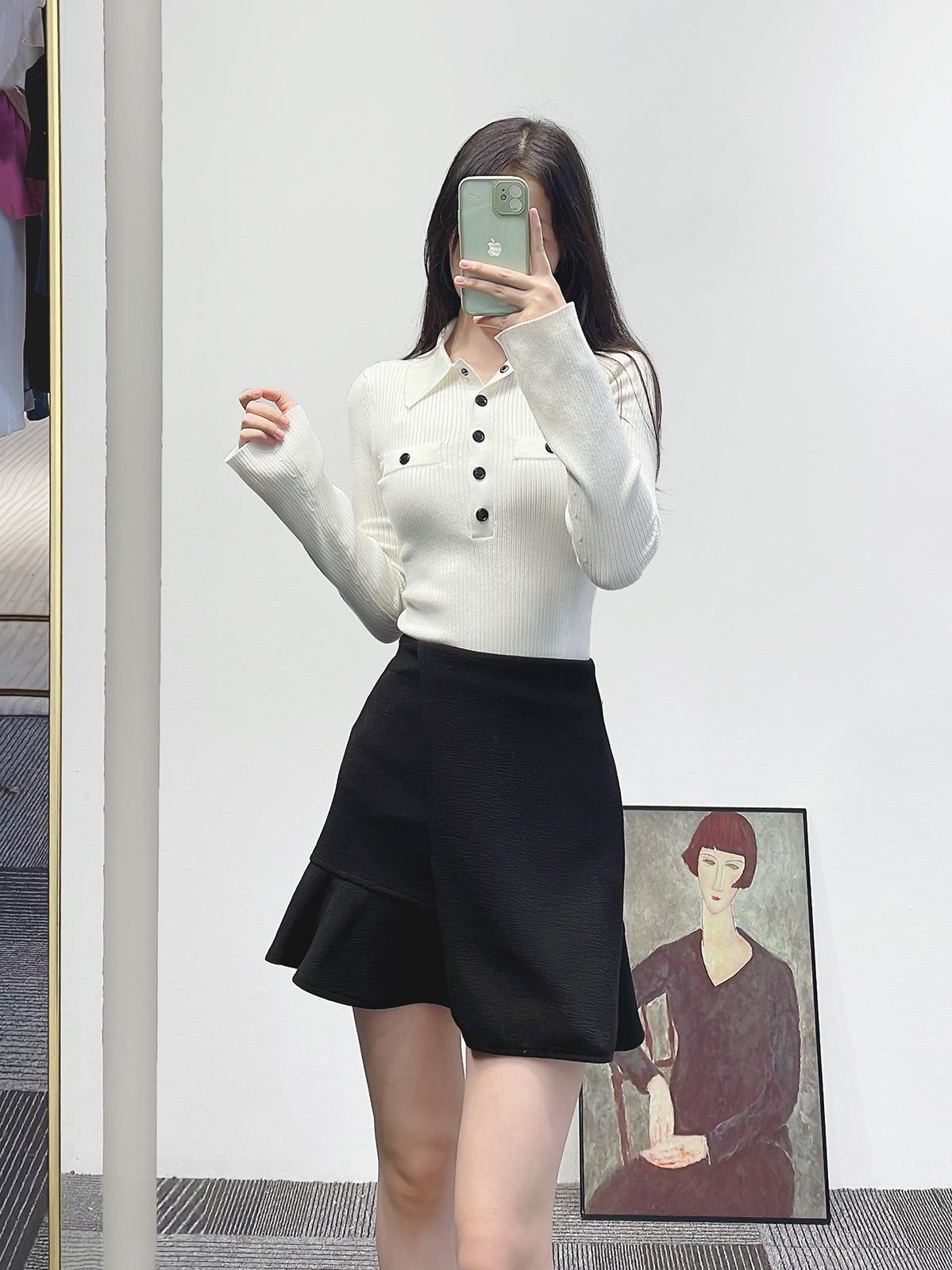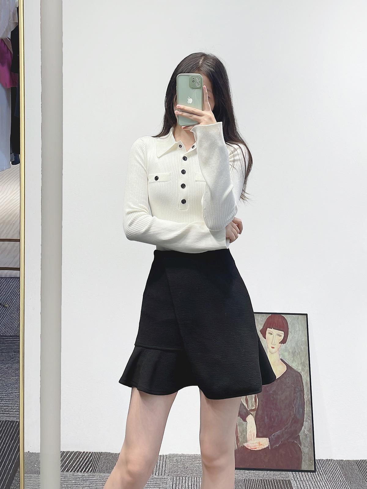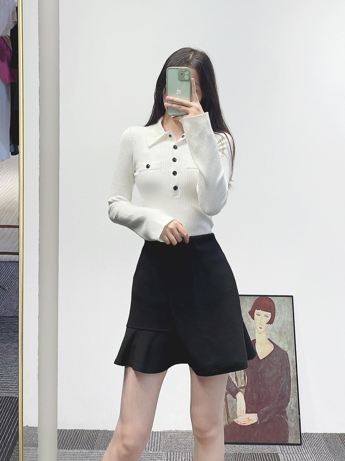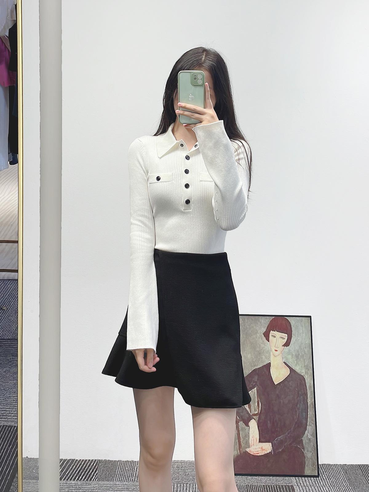 Suéter de Punto de Manga Larga con Botones para Mujer con Cuello Polo Francés y Manga Campana para Invierno 2024