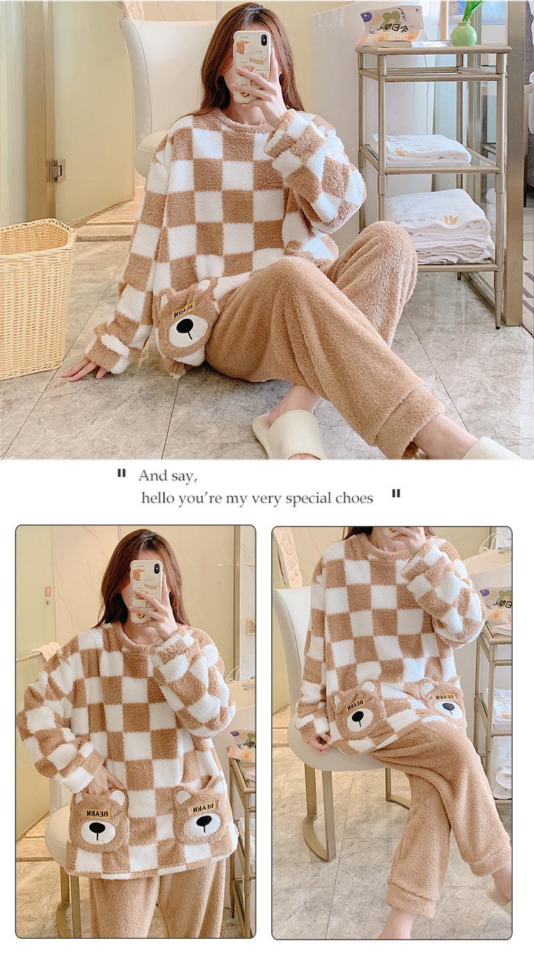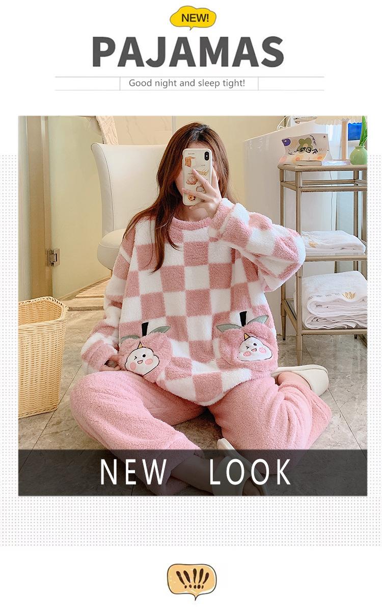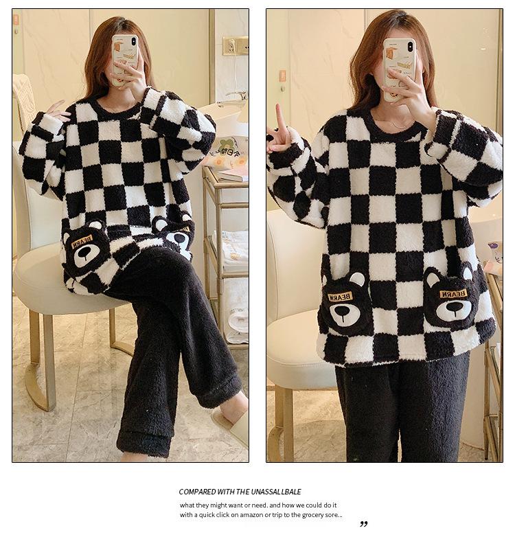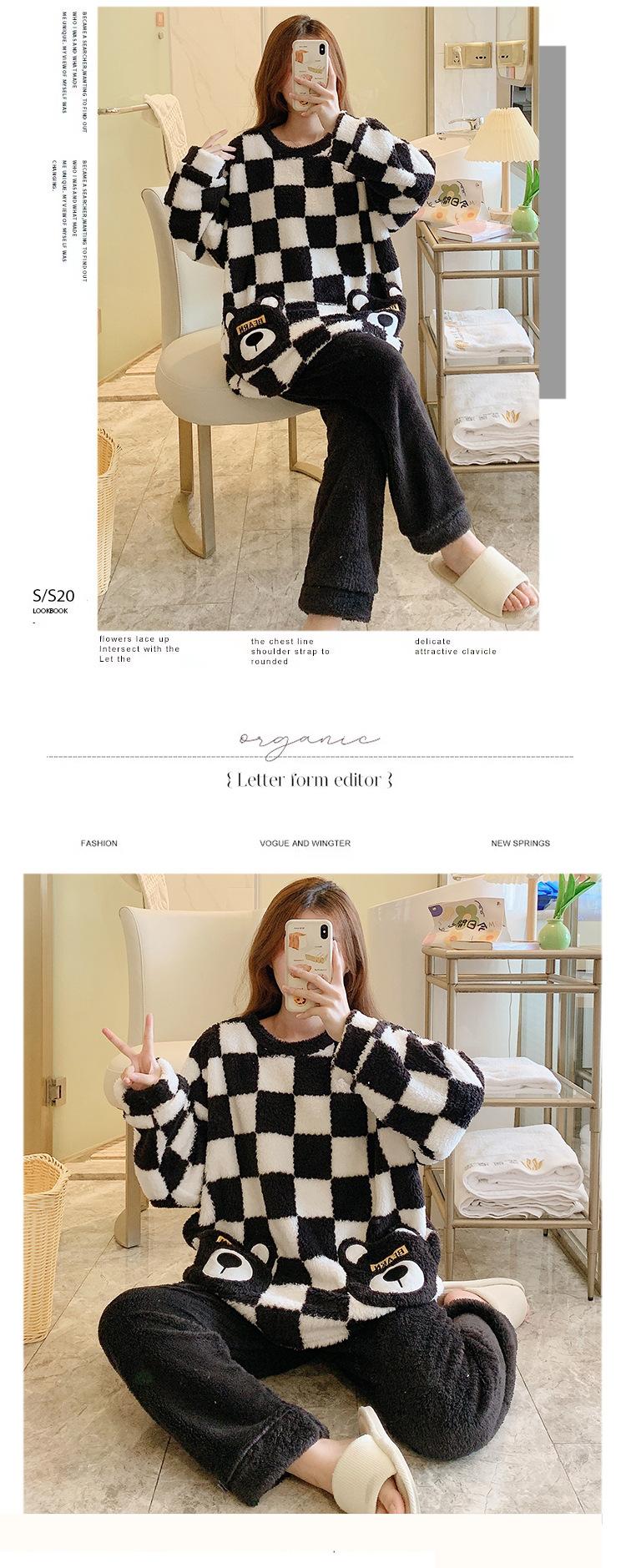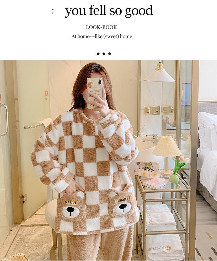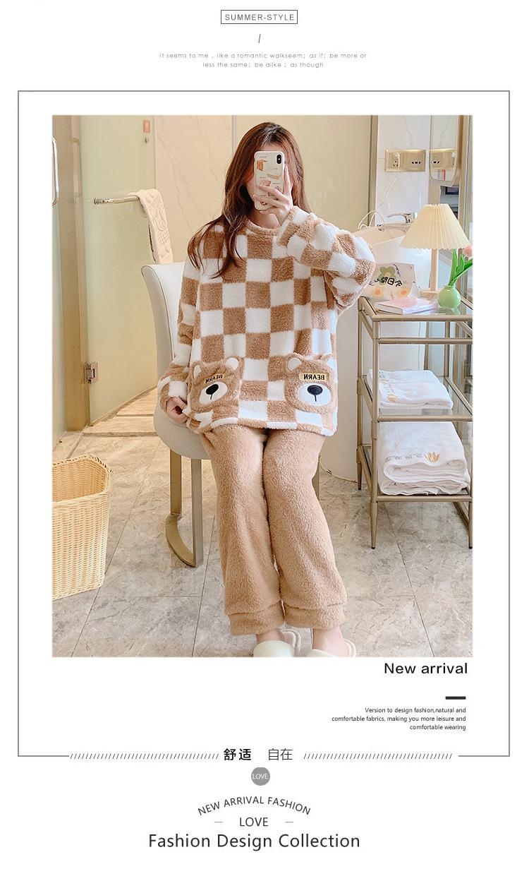Pijama de felpa de Otoño e Invierno para mujer, dulce estilo Chanel, forro polar coral, talla grande, talla grande, para chica gordita, ropa de casa