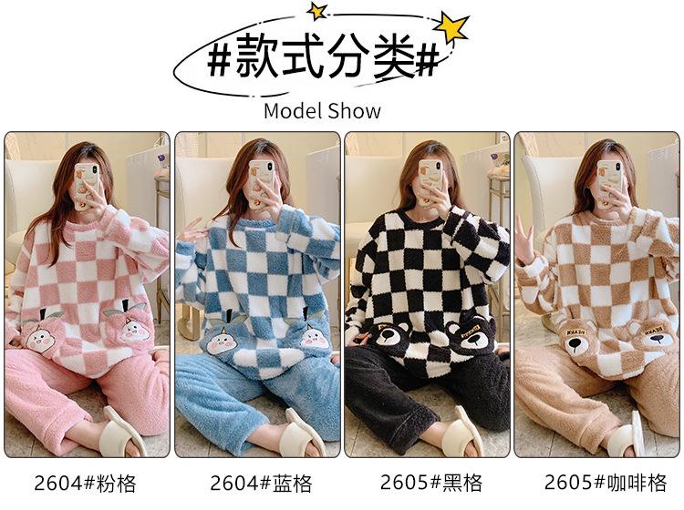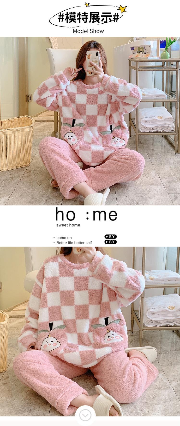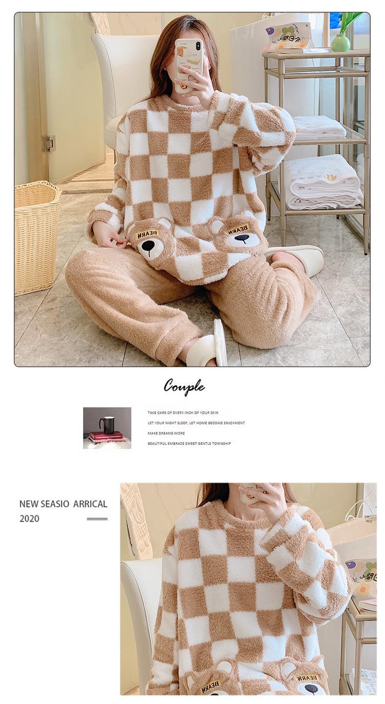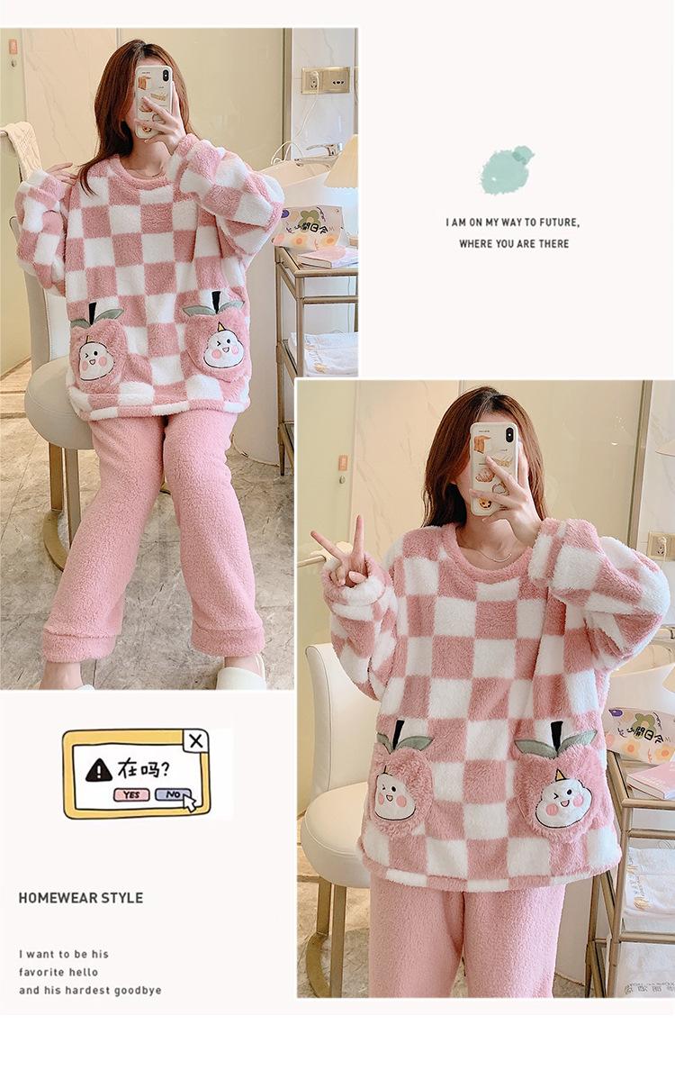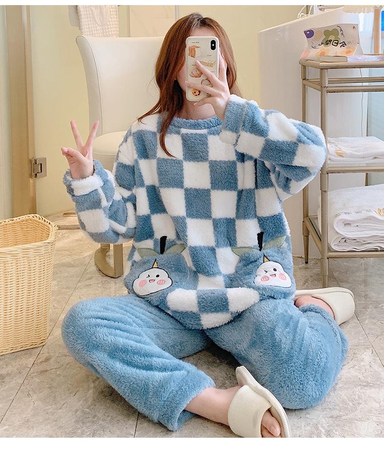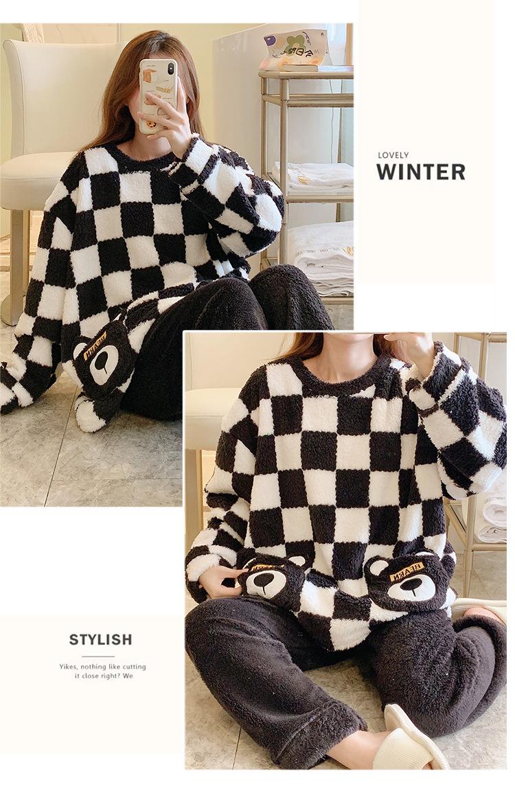 Pijama de felpa de Otoño e Invierno para mujer, dulce estilo Chanel, forro polar coral, talla grande, talla grande, para chica gordita, ropa de casa