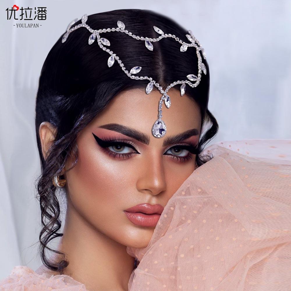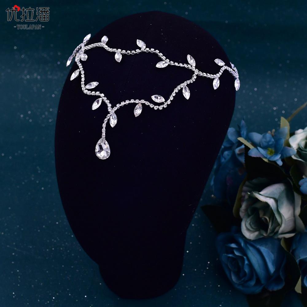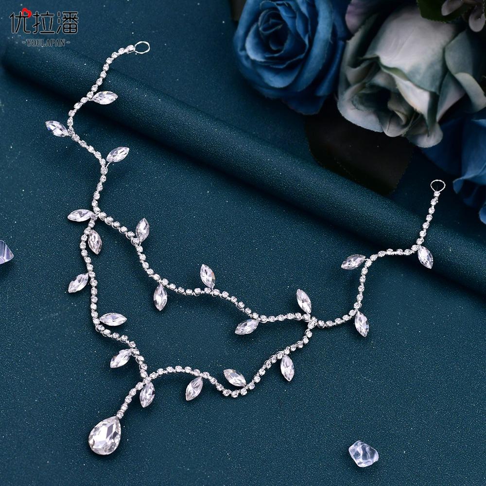 Accesorios para vestidos de novia Youlapan europeos y americanos, tocado flexible de diamantes de imitación plateados y brillantes, accesorios para el cabello en la frente HP495