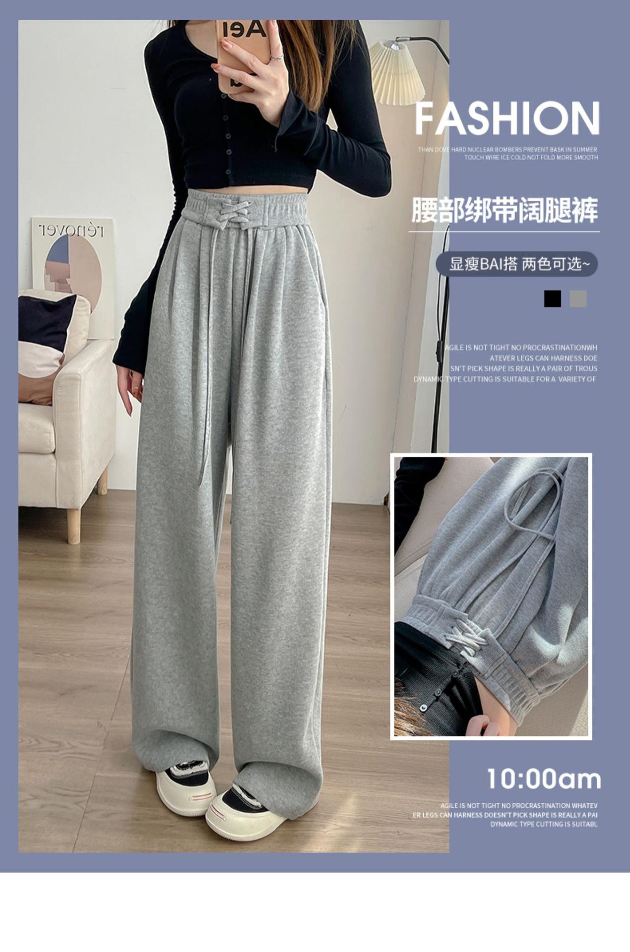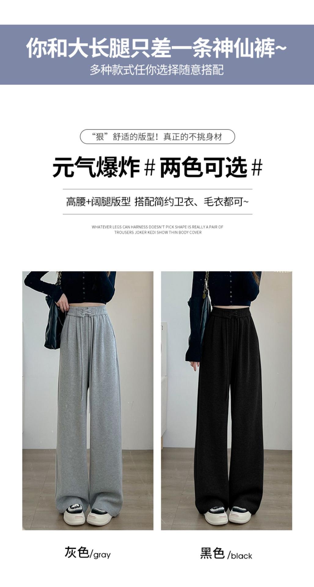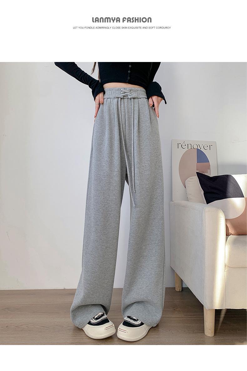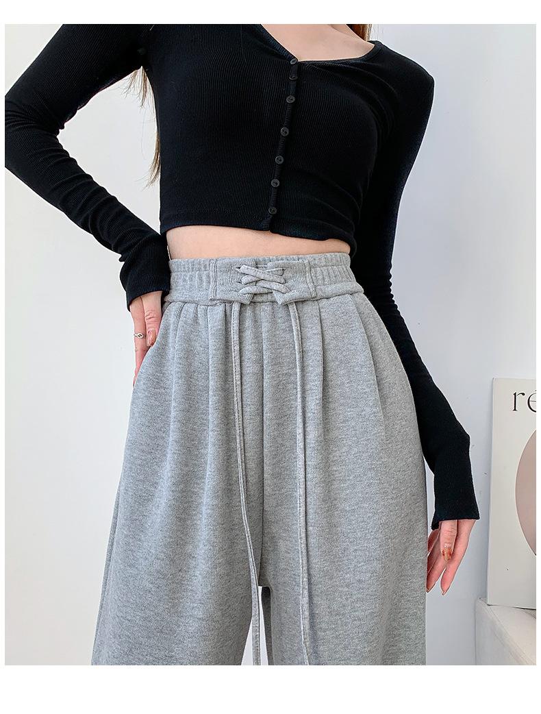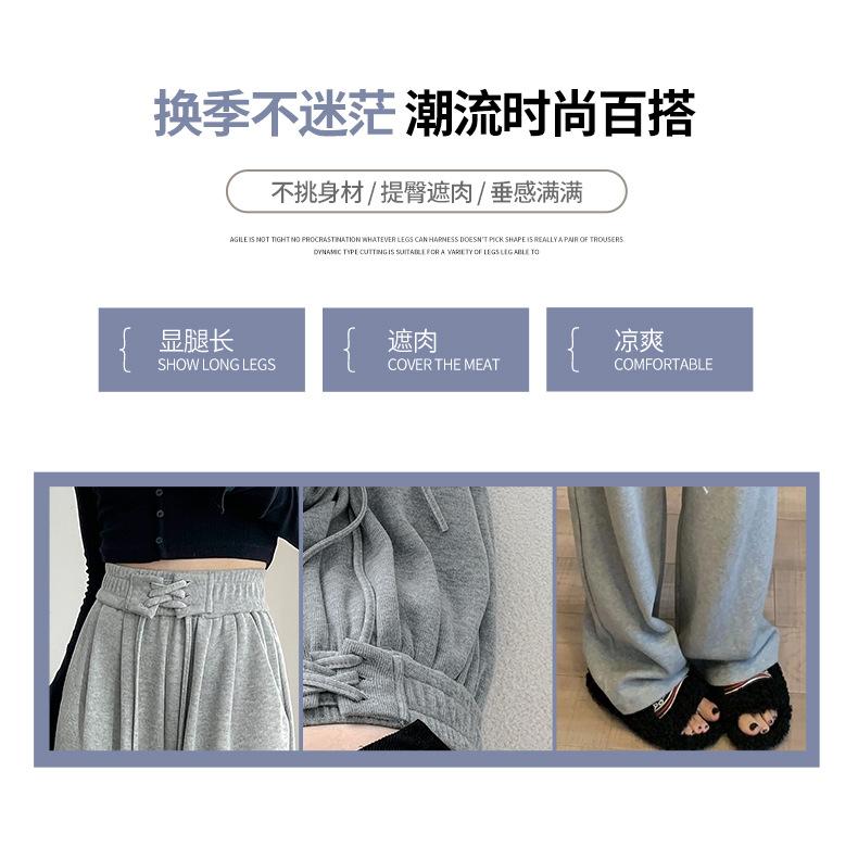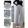 Pantalones anchos de cintura alta para mujer, pantalones deportivos grises Joker de primavera y verano, pantalones rectos holgados e informales, ropa al por mayor