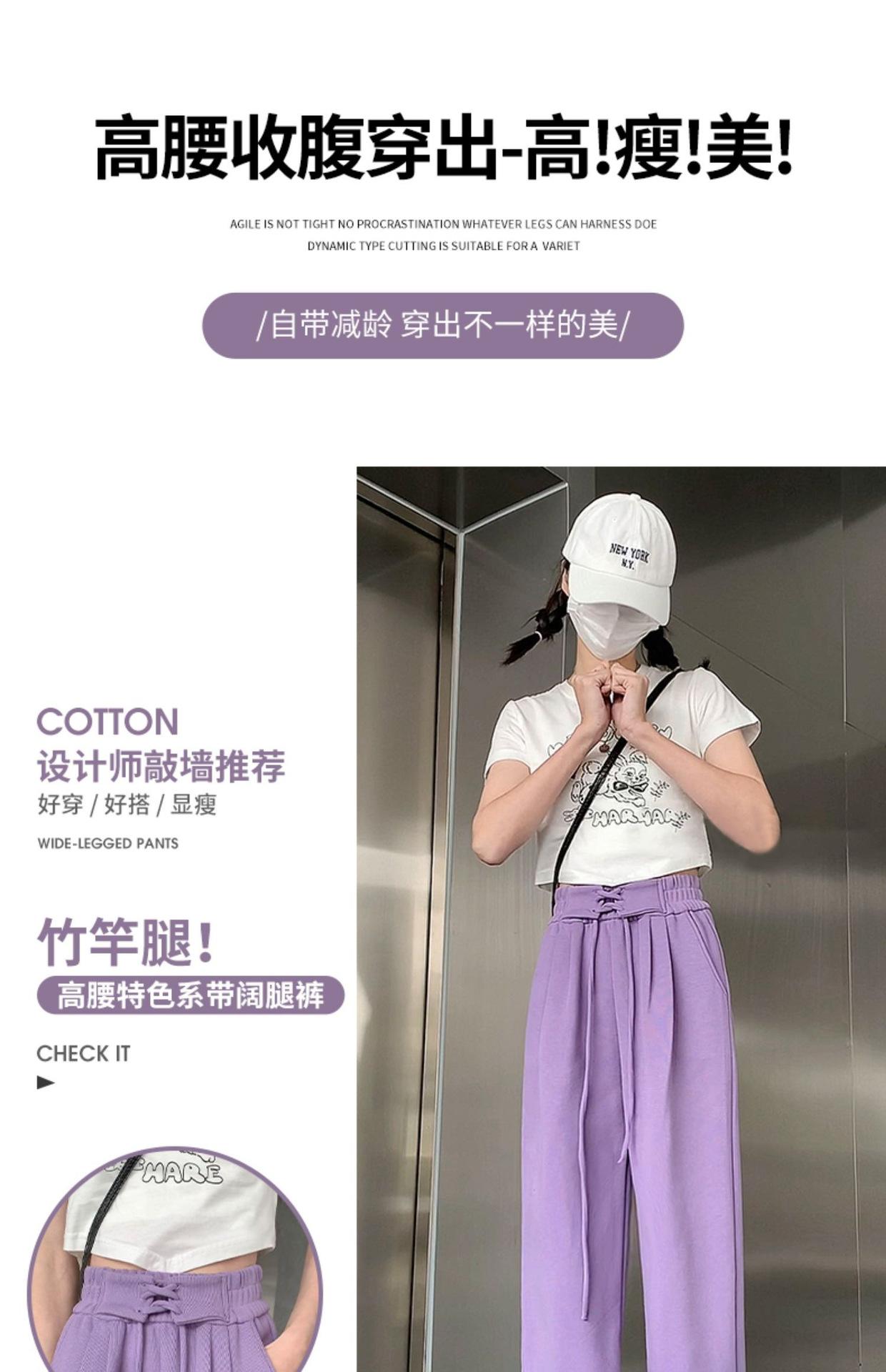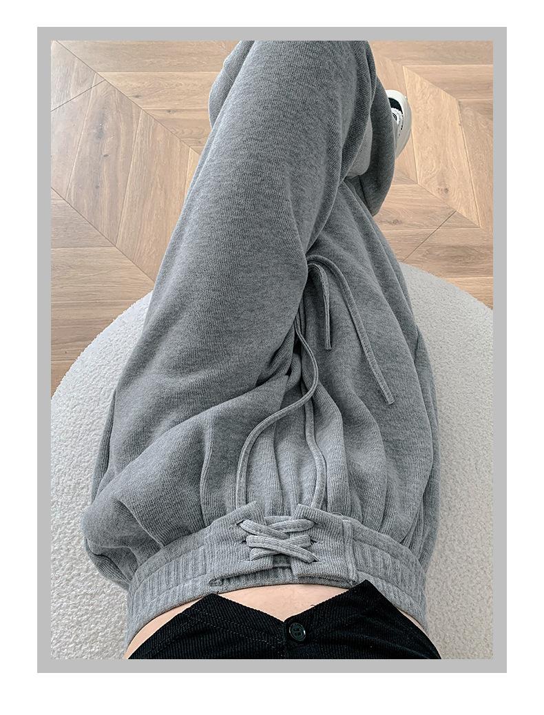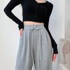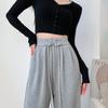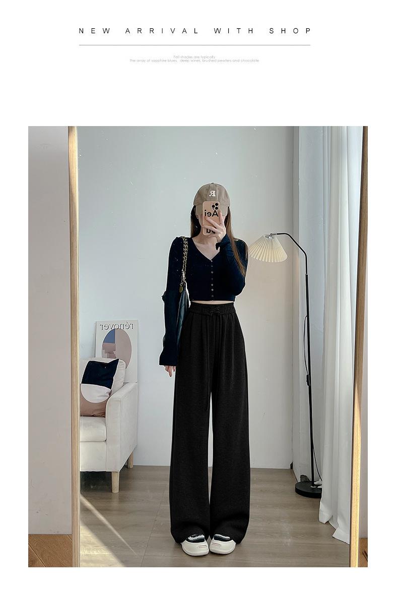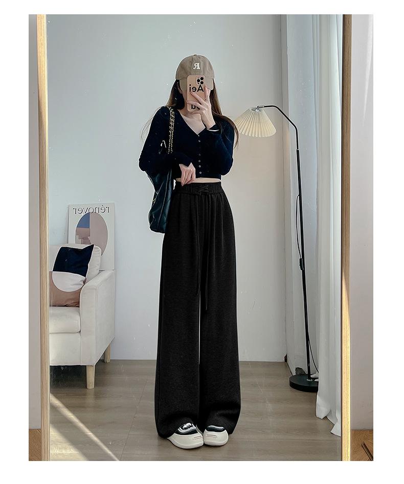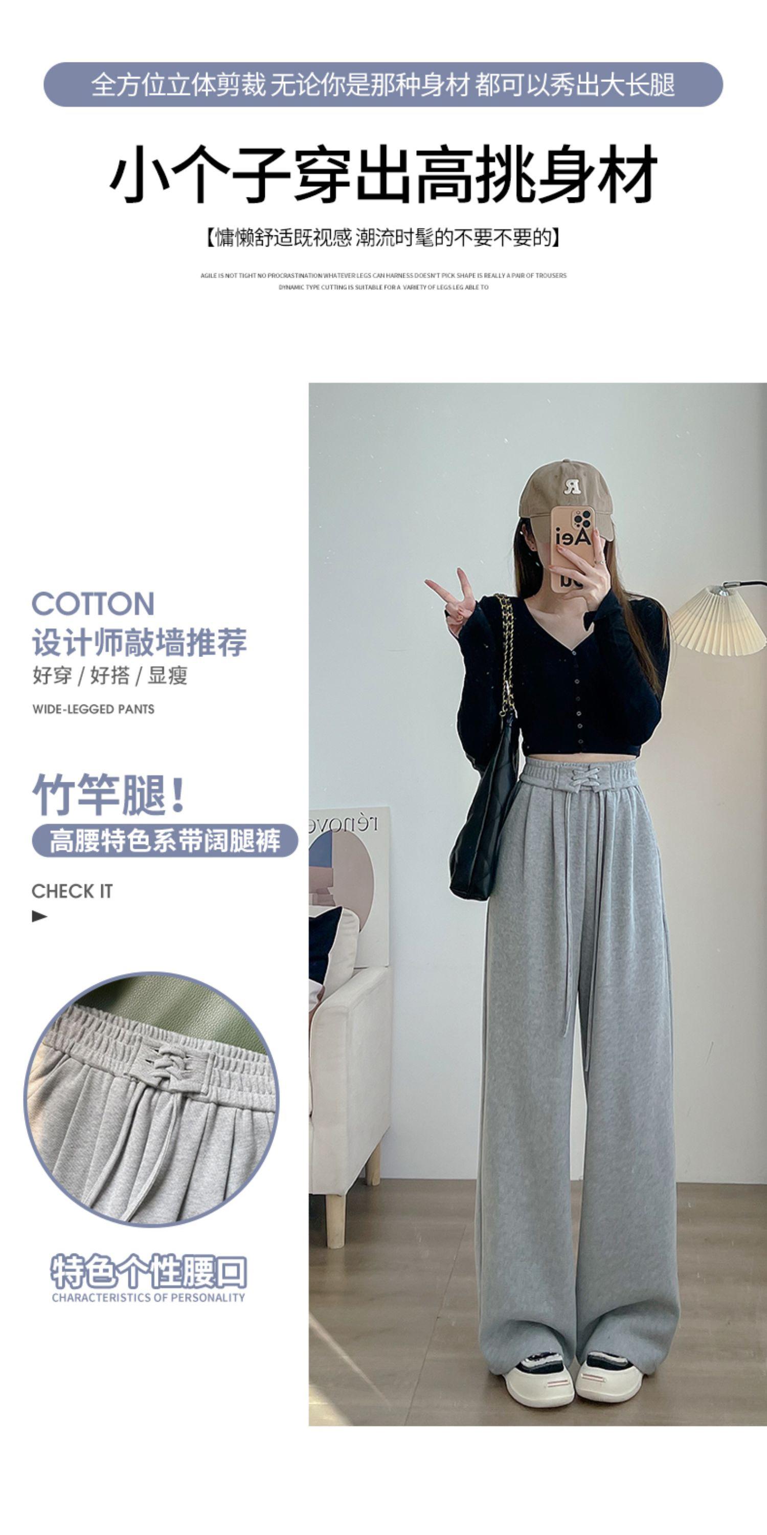 Pantalones anchos de cintura alta para mujer, pantalones deportivos grises Joker de primavera y verano, pantalones rectos holgados e informales, ropa al por mayor