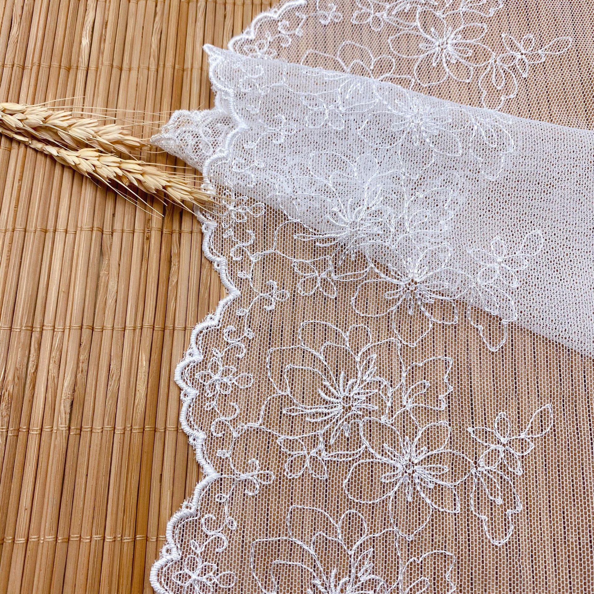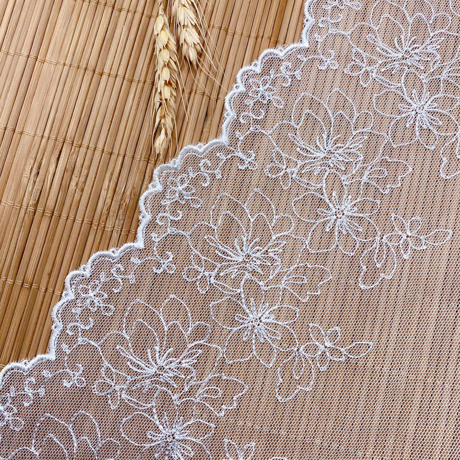 (Una pieza del estilo de encaje blanco mide entre 14,5 y 15 yardas de largo, y una pieza del estilo teñido mide entre 14,5 y 15 yardas de largo. Los cargos se basan en 15 yardas)