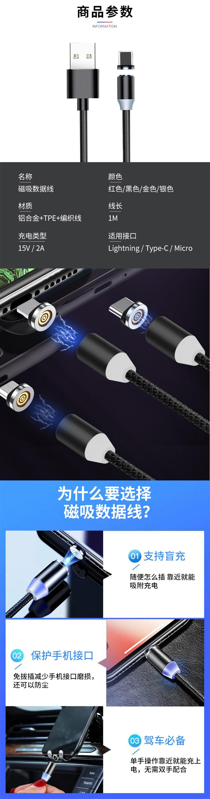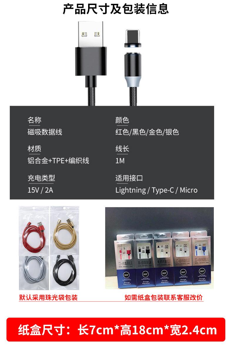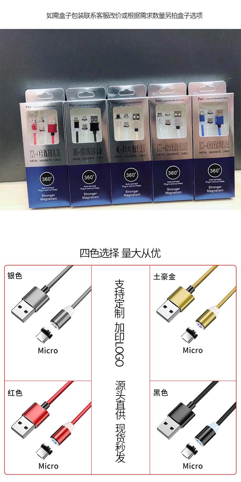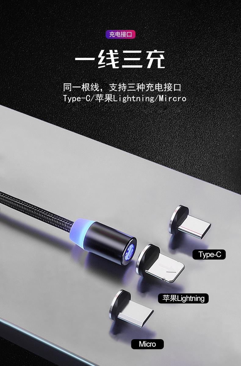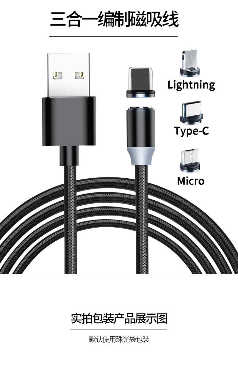Cable de Datos Magnético Trenzado Cable para Teléfono Móvil Adecuado para Apple Android Huawei Cable de Carga con Enchufe Ciego de Cabeza Redonda Carga Rápida Uno a Tres