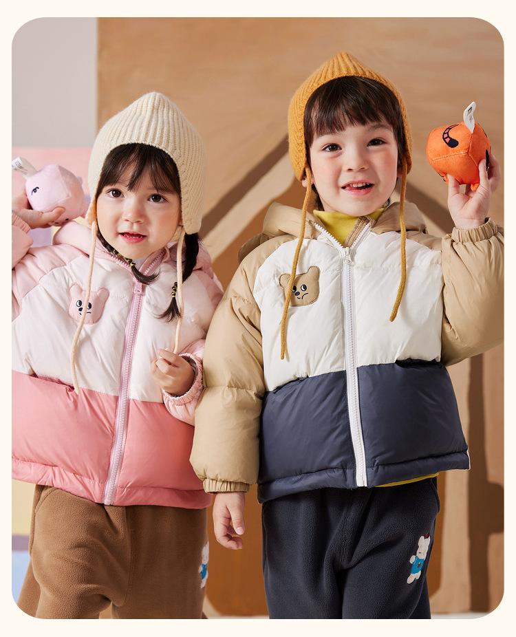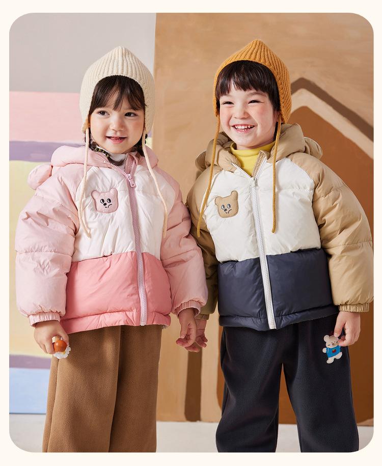 [Nuevo GB] Chaqueta de plumón a prueba de tres para niños Ropa de invierno para niños Plumón de pato Abrigo para niñas Top con capucha para bebé