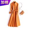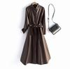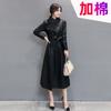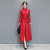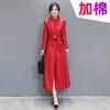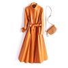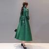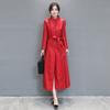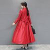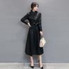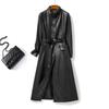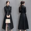 Abrigo de cuero para mujer, otoño 2024, largo y ajustado, con cuello vertical, estilo coreano, 6701