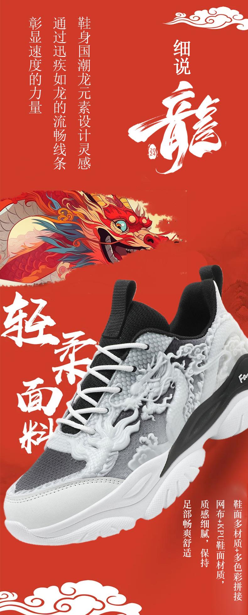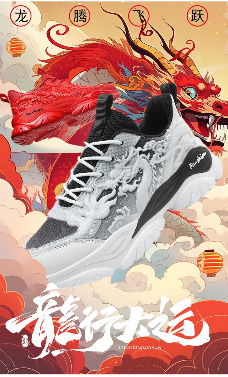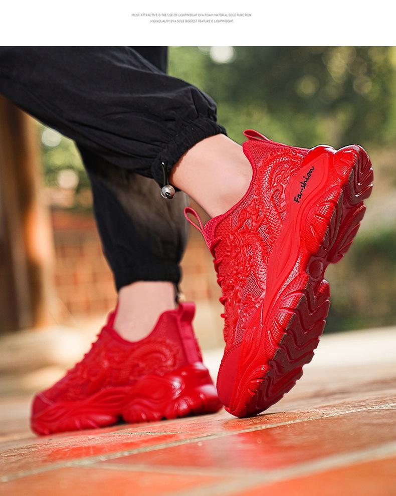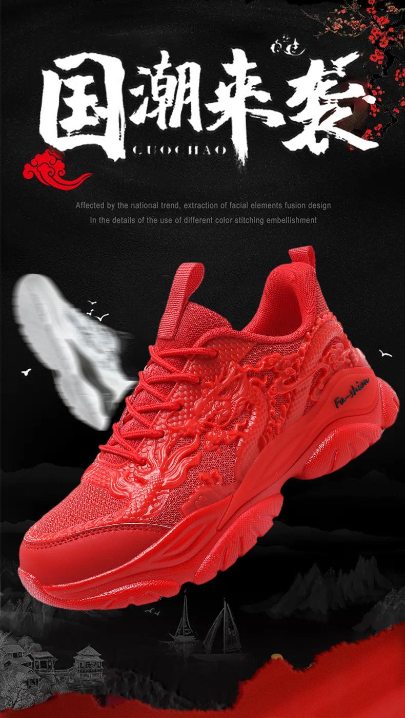 Tenis de malla Marea Nacional Roja Limitada Año del Dragón Luminosos Zapatos Torre Suela Gruesa Casual para Hombre Zapatos de Baloncesto