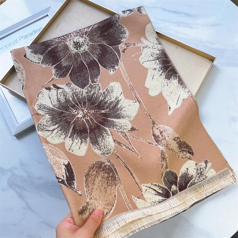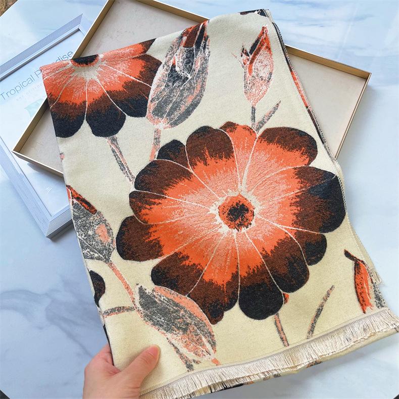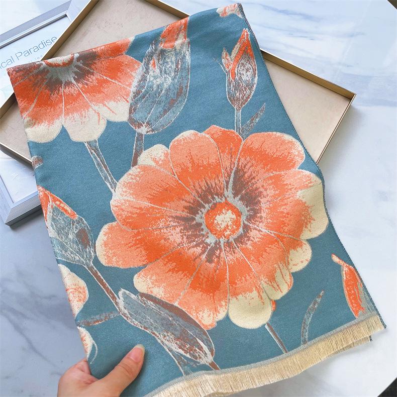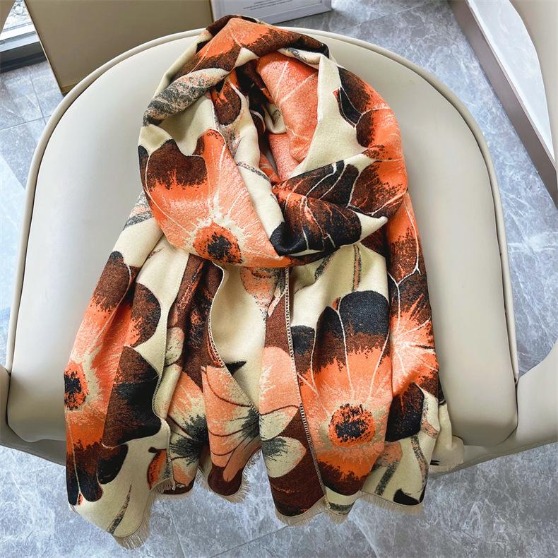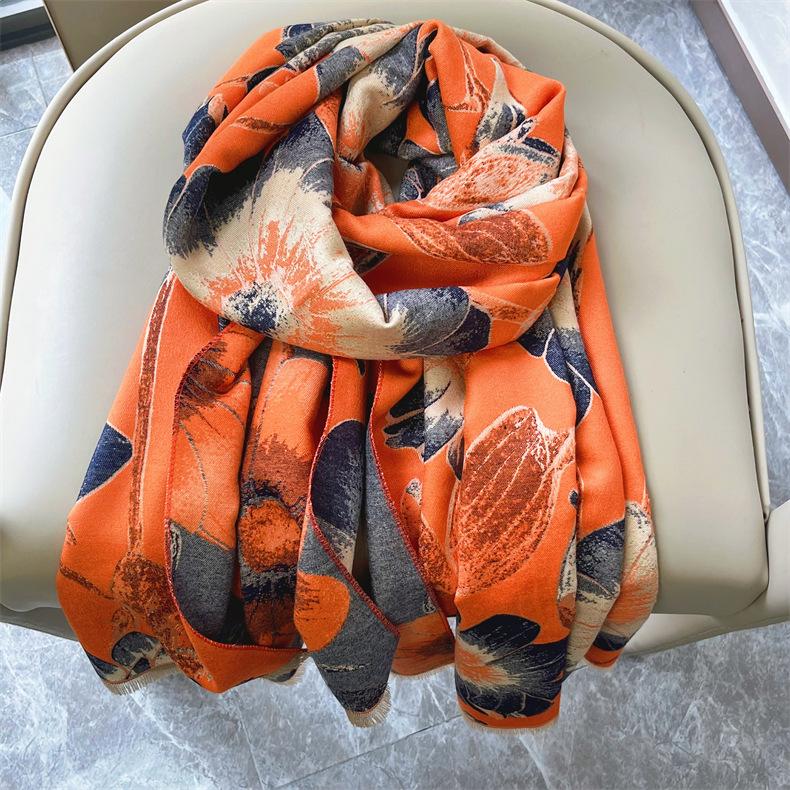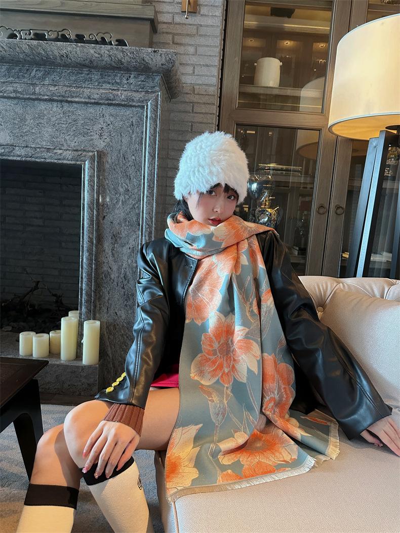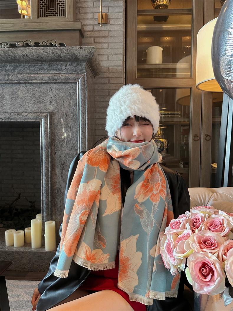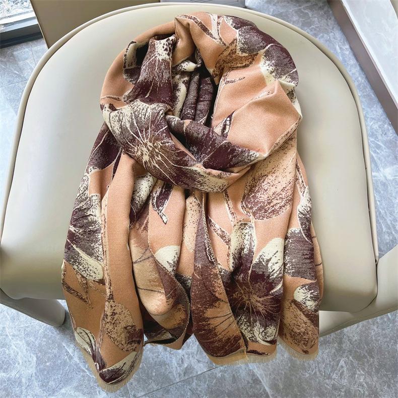 Bufanda elegante de cachemira tipo loto para madre de Otoño e Invierno, bufanda cálida gruesa para mujer, a prueba de viento para ciclismo, regalo navideño