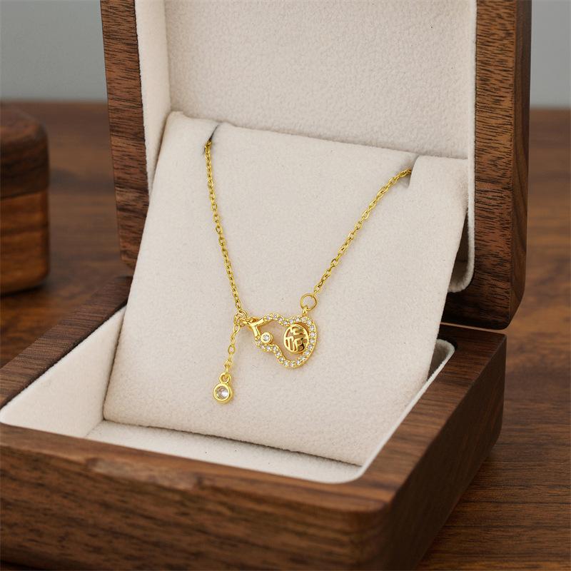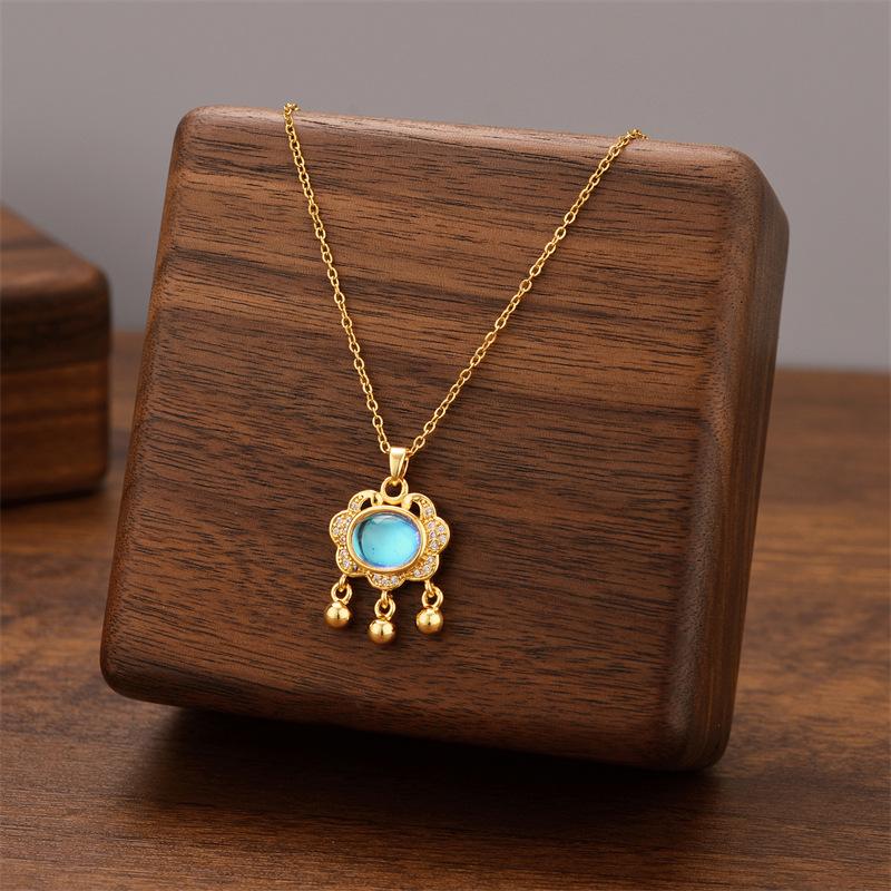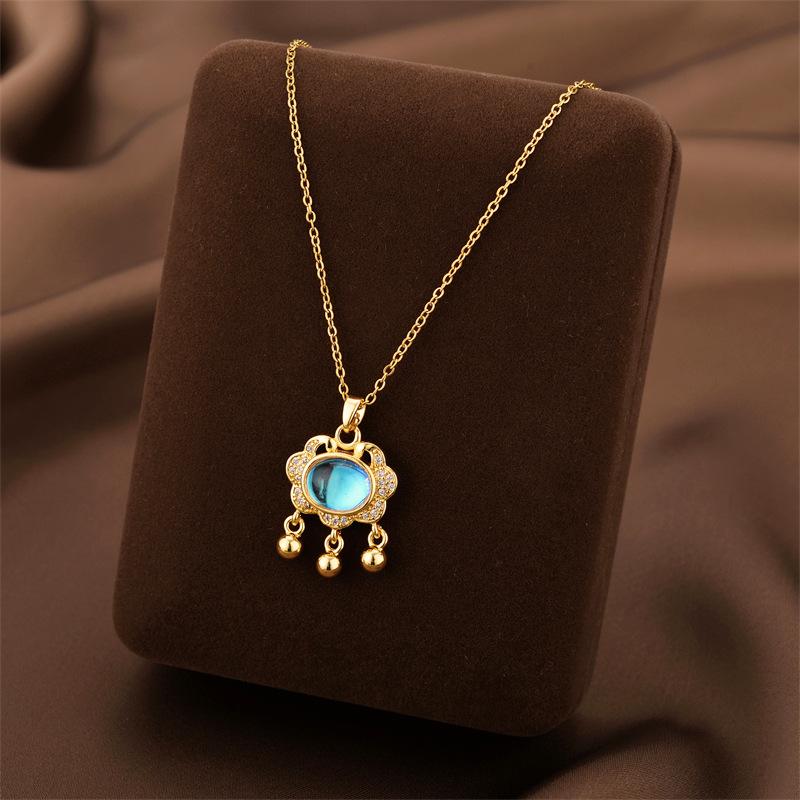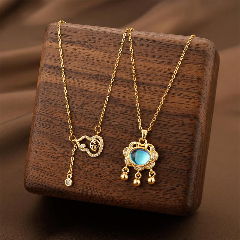 Collar de acero de titanio con cierre de seguridad y colgante de calabaza con borla de estilo coreano para mujer, cadena de clavícula ligera, de lujo, con diseño de nicho simple y resistente a la decoloración.